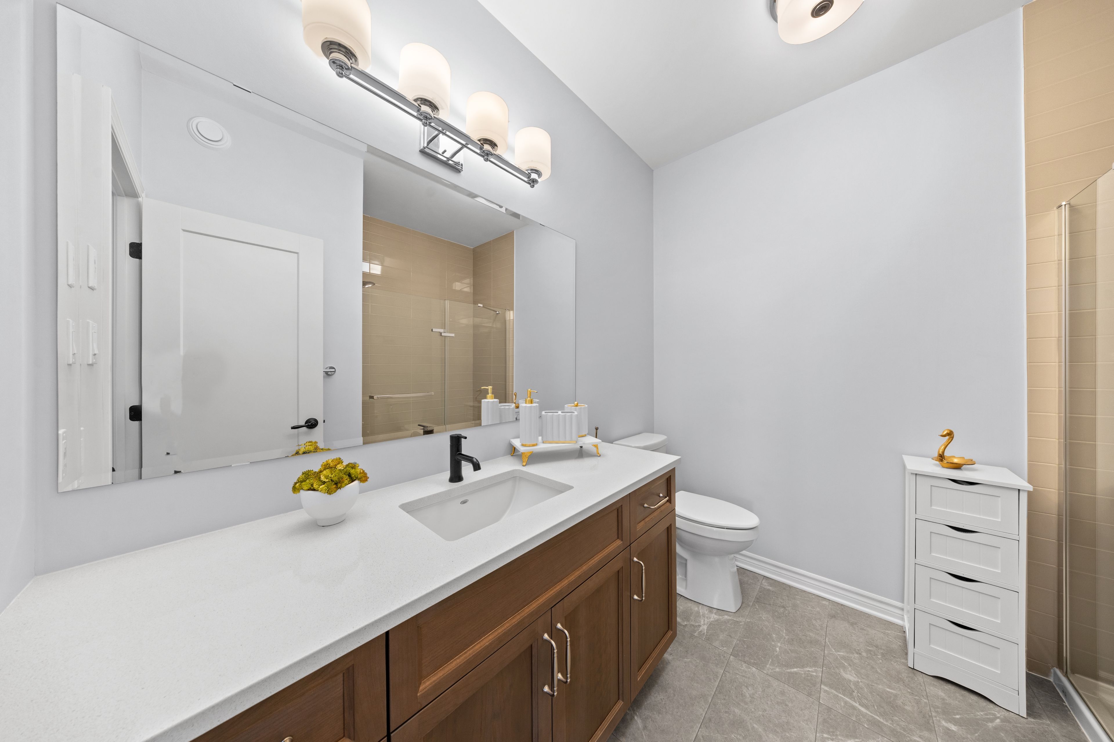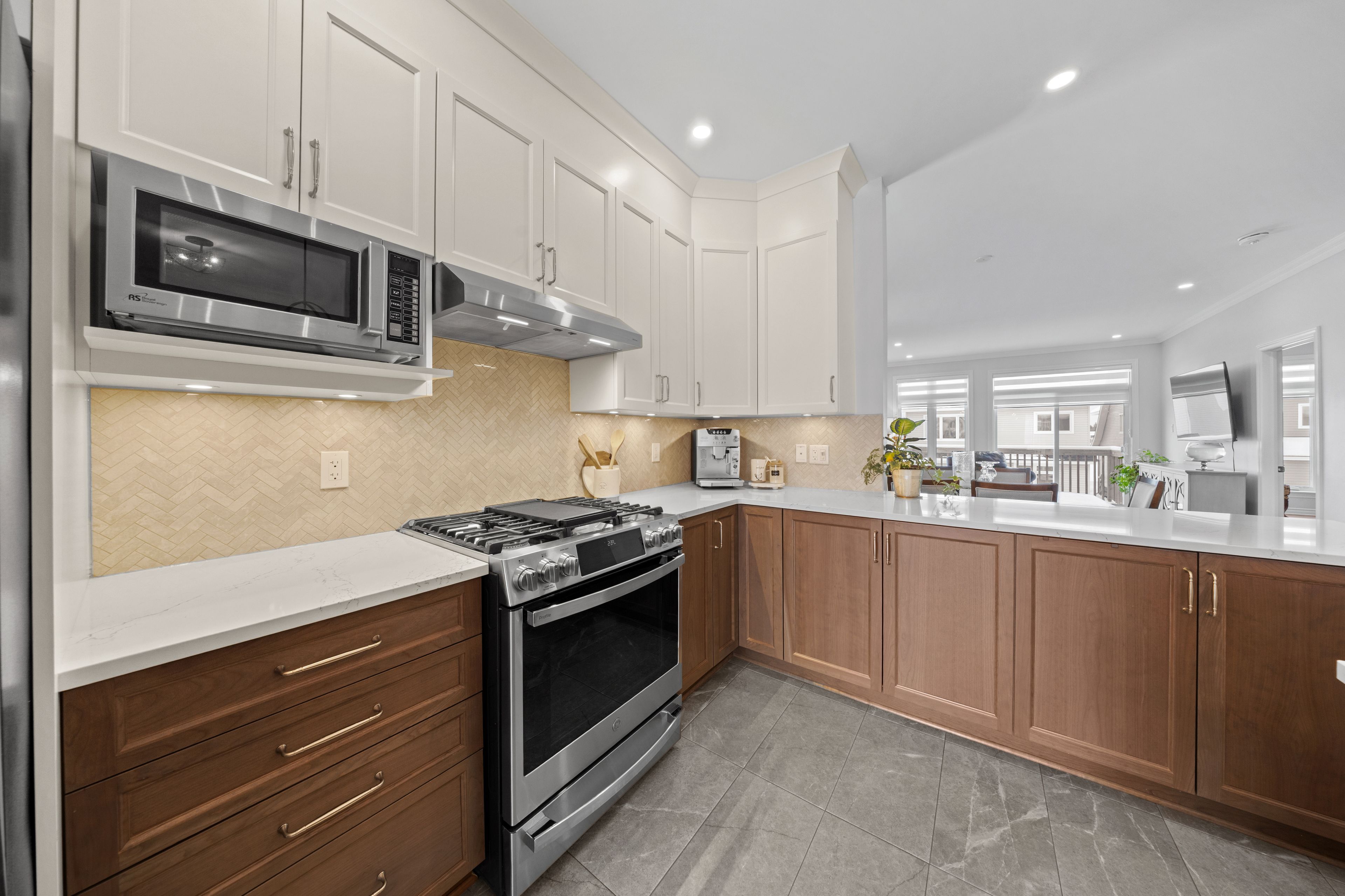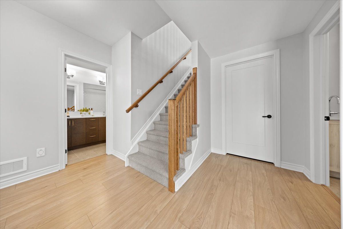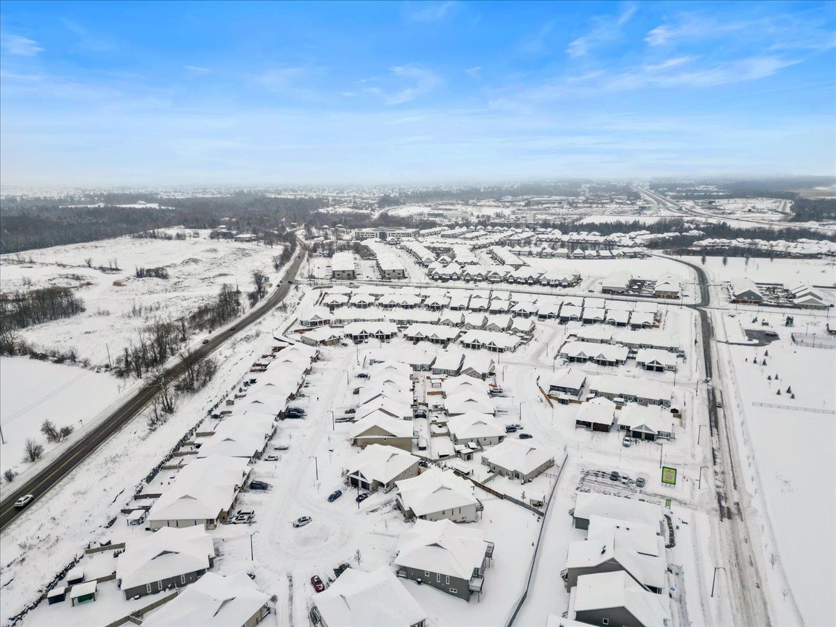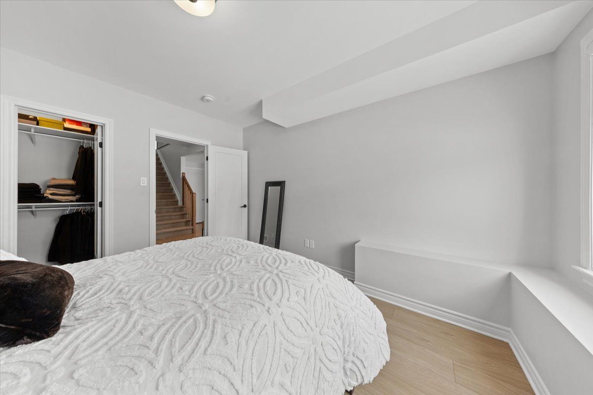 Welcome to cardinal creek village in orléans, a sought-after community by tamarack homes known for its scenic walking trails, rolling landscapes, and nearby water views. Located on a quiet court, this extensively upgraded semi-detached walkout bungalow offers exceptional design, functionality, and true move-in-ready living. Interlock walkway and extended driveway lead to a welcoming front veranda. The main level features full tile flooring throughout, including bedrooms, with flat ceilings, pot lights, crown moulding, and large windows creating a bright open-concept living and dining space. Patio doors from the living room lead to an elevated deck, ideal for enjoying evening sunsets. The upgraded kitchen offers ceiling-height cabinetry with two-tone finishes, custom fridge cabinetry, quartz countertops, extended island with breakfast bar, undermount sink, upgraded faucet, herringbone tile backsplash, gas stove, and detailed lighting. The primary bedroom includes a walk-in closet and upgraded 3-pc ensuite with quartz counters and double shower. Main level also features a 2-pc bath, walk-in pantry or optional laundry, and inside access to an oversized single-car garage. The finished walkout basement with high ceilings includes a second bedroom with walk-in closet, 5-pc bath with double sinks and quartz counters, separate laundry room, and rec room with french doors and wall-mounted fireplace. Patio doors lead to a private interlock patio. Plenty of storage. Enjoy access to community amenities including a clubhouse, tennis courts, parks, and scenic walking trails. Additional features include gas line for bbq, tankless hot water heater, air exchanger, extra kitchen outlets, dimmable pot lights, modern interior doors with matte black hardware, and oak staircase railing. A rare opportunity to own a premium, thoughtfully upgraded walkout bungalow in one of orléans' most desirable communities.