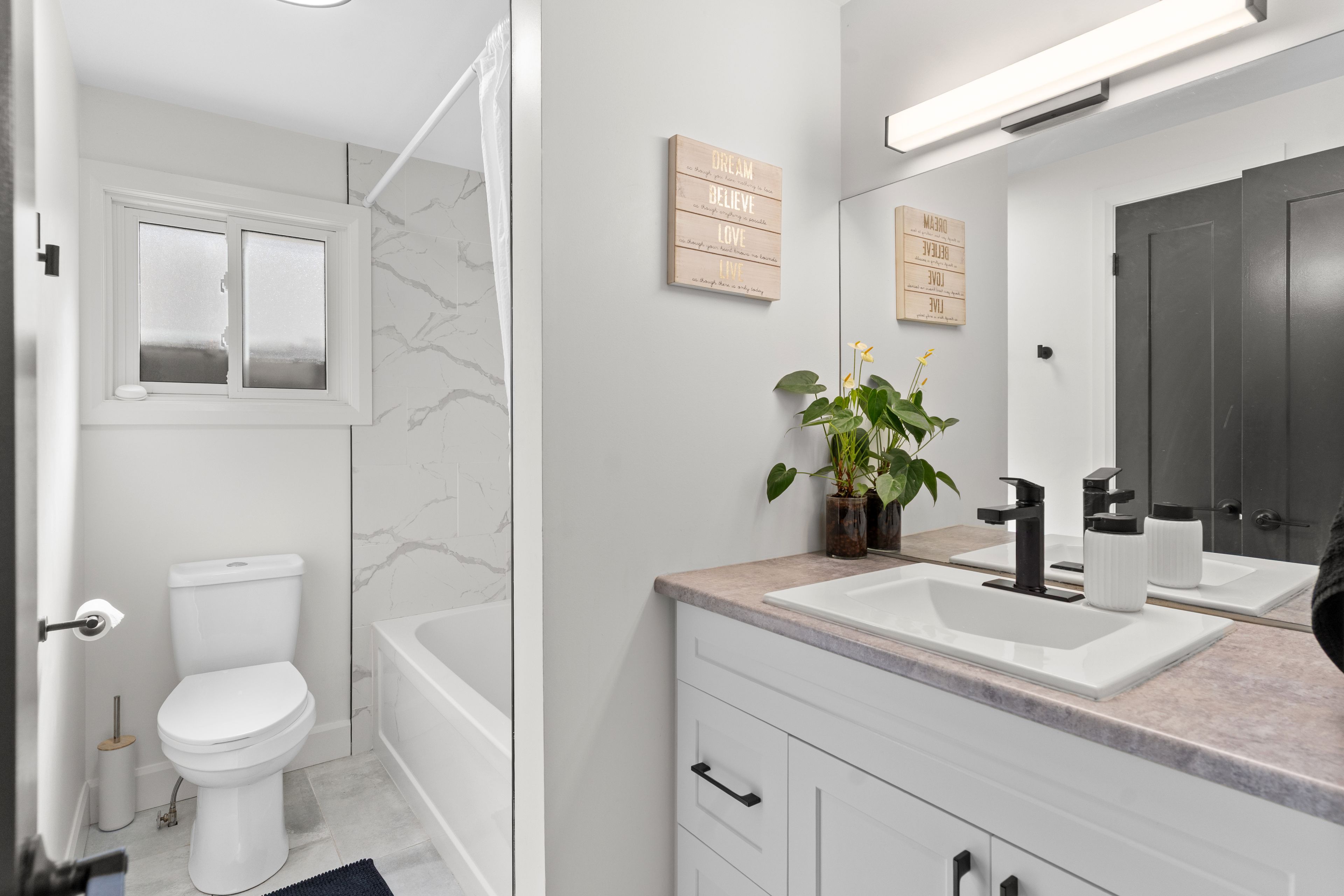Welcome to 779 monsarrat avenue, a fully renovated 3 bedroom, 2 bath, four level back split in sought after north carling. This home blends modern design with everyday functionality. The open concept kitchen features a large quartz island, sleek black fixtures, and new stainless steel appliances. Luxury vinyl plank flooring runs throughout, and both bathrooms showcase stylish tile and bold black finishes. The lower level offers a bright family room perfect for movie nights, while the basement includes a finished flex area and private office ideal for working from home or a home gym. A side walk up provides potential for an in law or income suite. Outside, enjoy a covered composite deck, landscaped yard, and two sheds for storage. Parking for two on the asphalt driveway. Close to fanshawe college, schools, parks, and community amenities, this home is move in ready and designed for modern living.