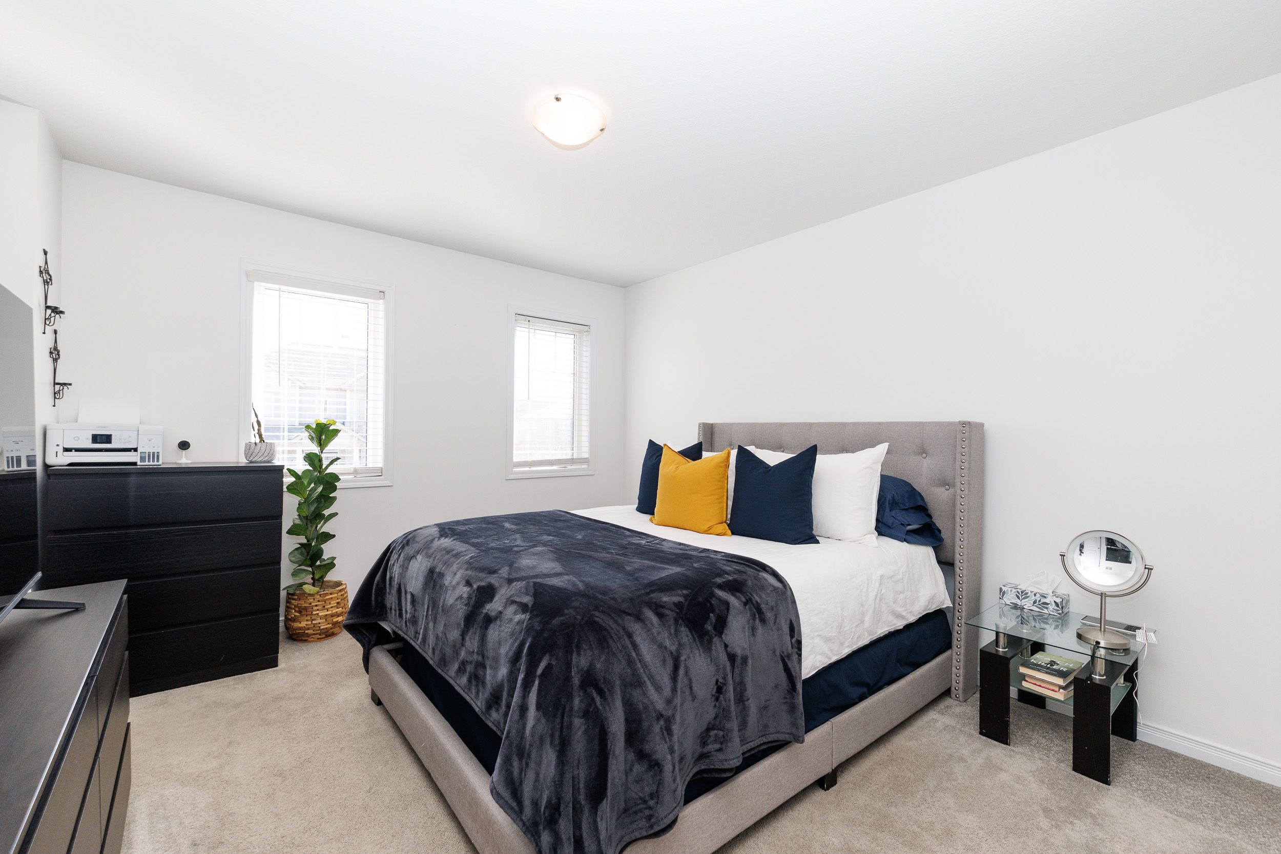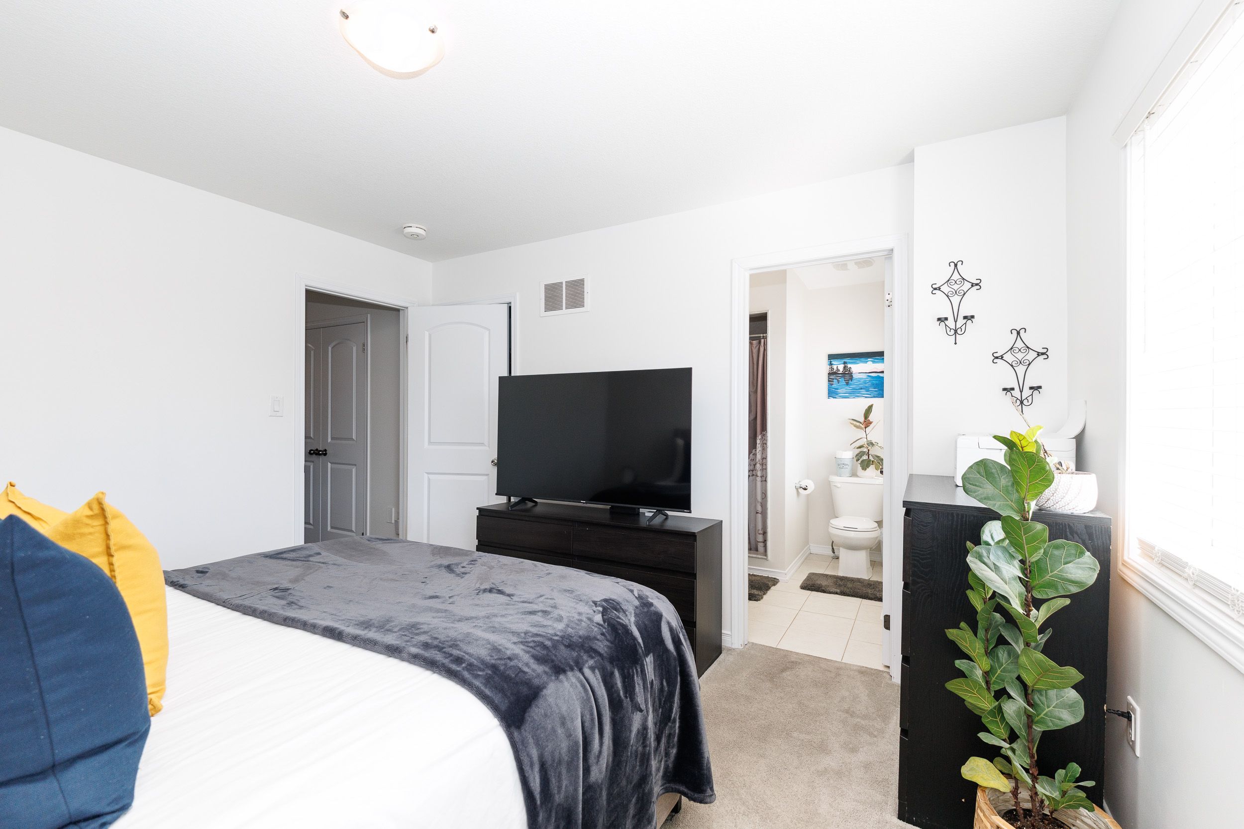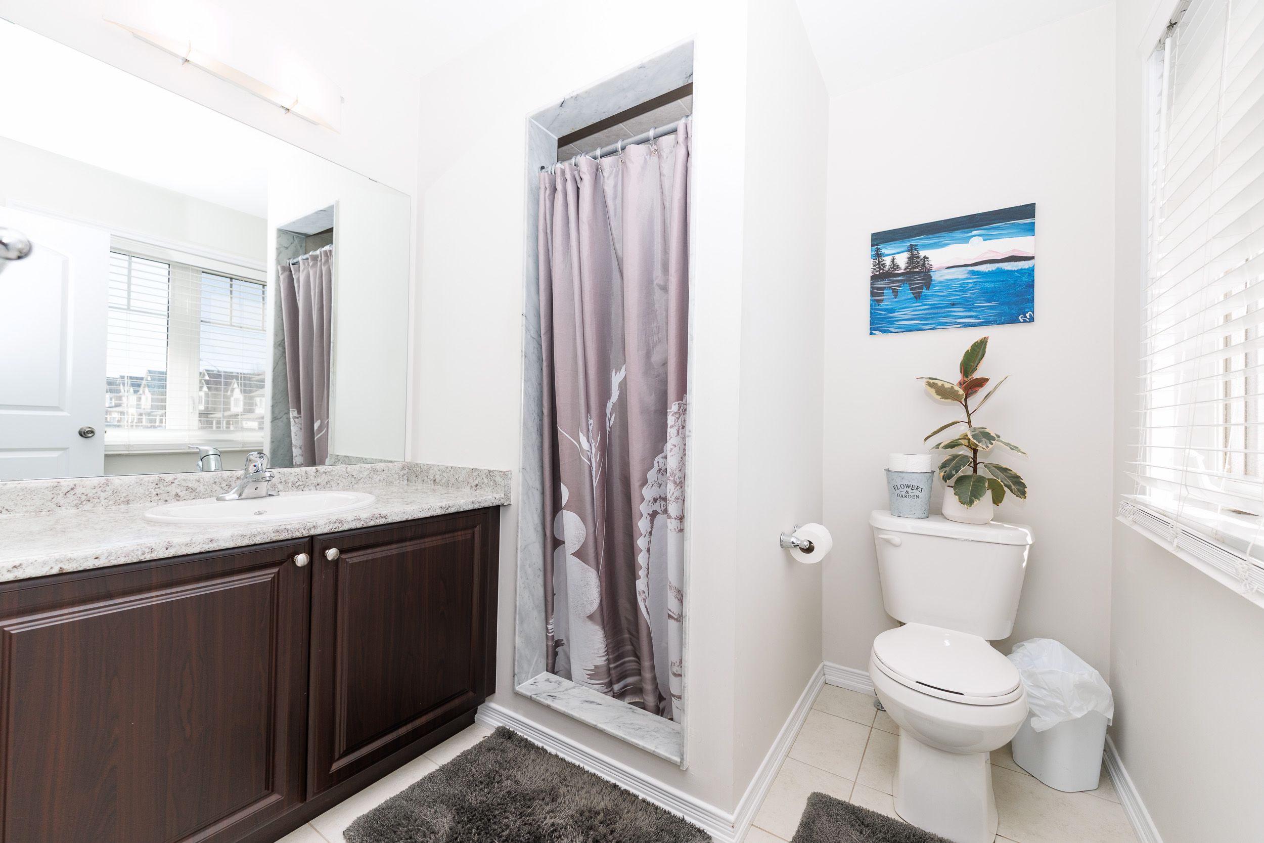 Well-maintained and move-in ready freehold townhouse! This spacious 2-storey townhome features 3+1 bedrooms and 3. 5 bathrooms, ideally located close to all amenities including shopping plazas, costco, schools, community centres, and easy highway access. The modern main floor layout features a bright open concept design with a large kitchen island, convenient powder room, and patio doors leading to the rear yard. The second floor offers 3 generously sized bedrooms, including a large primary bedroom with a full ensuite bathroom and walk-in closet. The finished basement includes an additional bedroom with ensuite bathroom, offering private and flexible space for guests, a home office, or extended family. Perfect for families or investors, this spacious townhouse offers comfort, convenience, and great value in a desirable location.