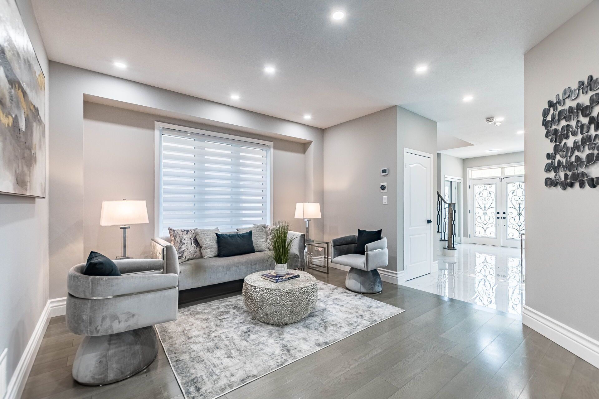• Bright foyer with double door entry and brand new hardwood flooring.
