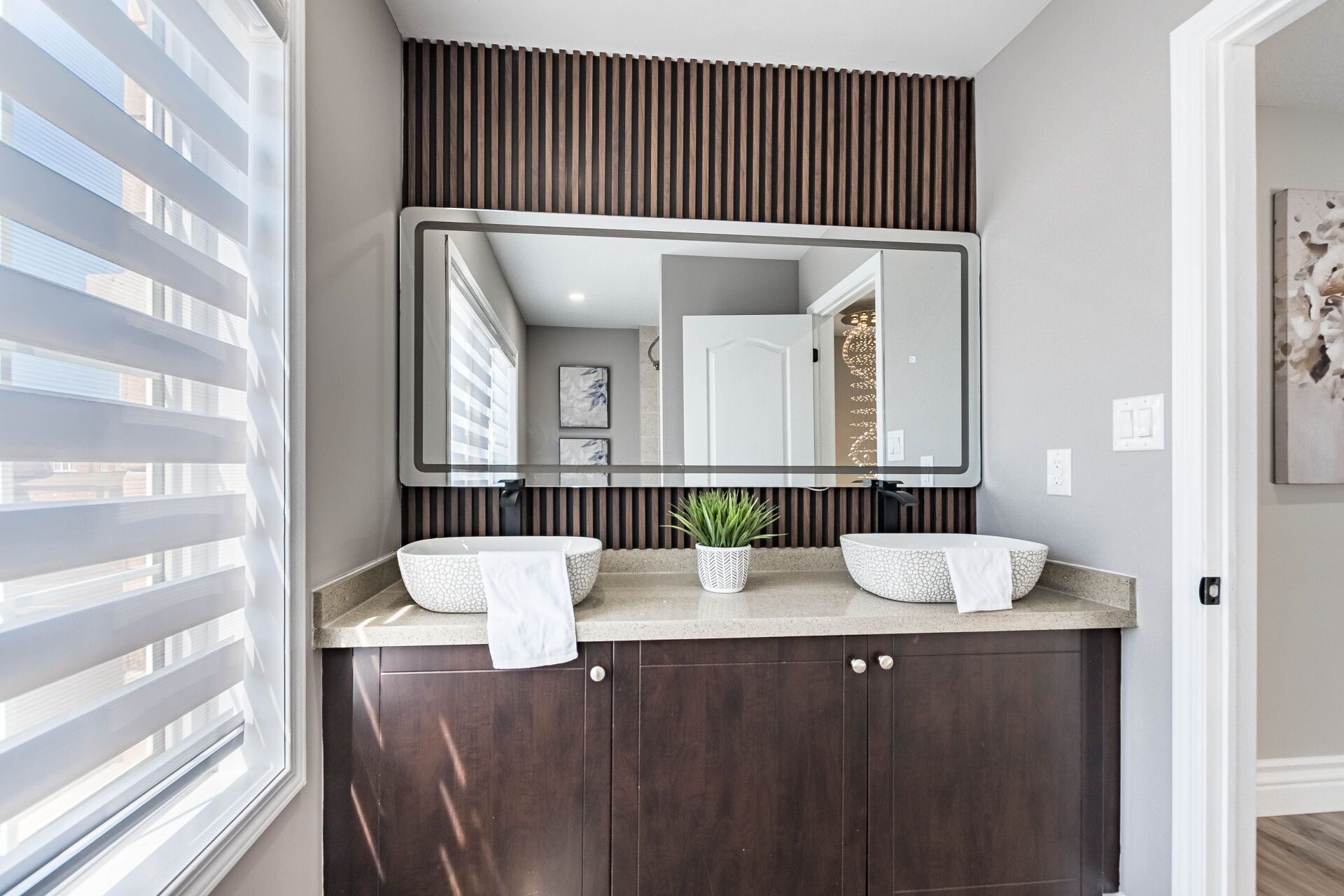 • Versatile legal basement with a separate entrance, suitable for an office or guest room.