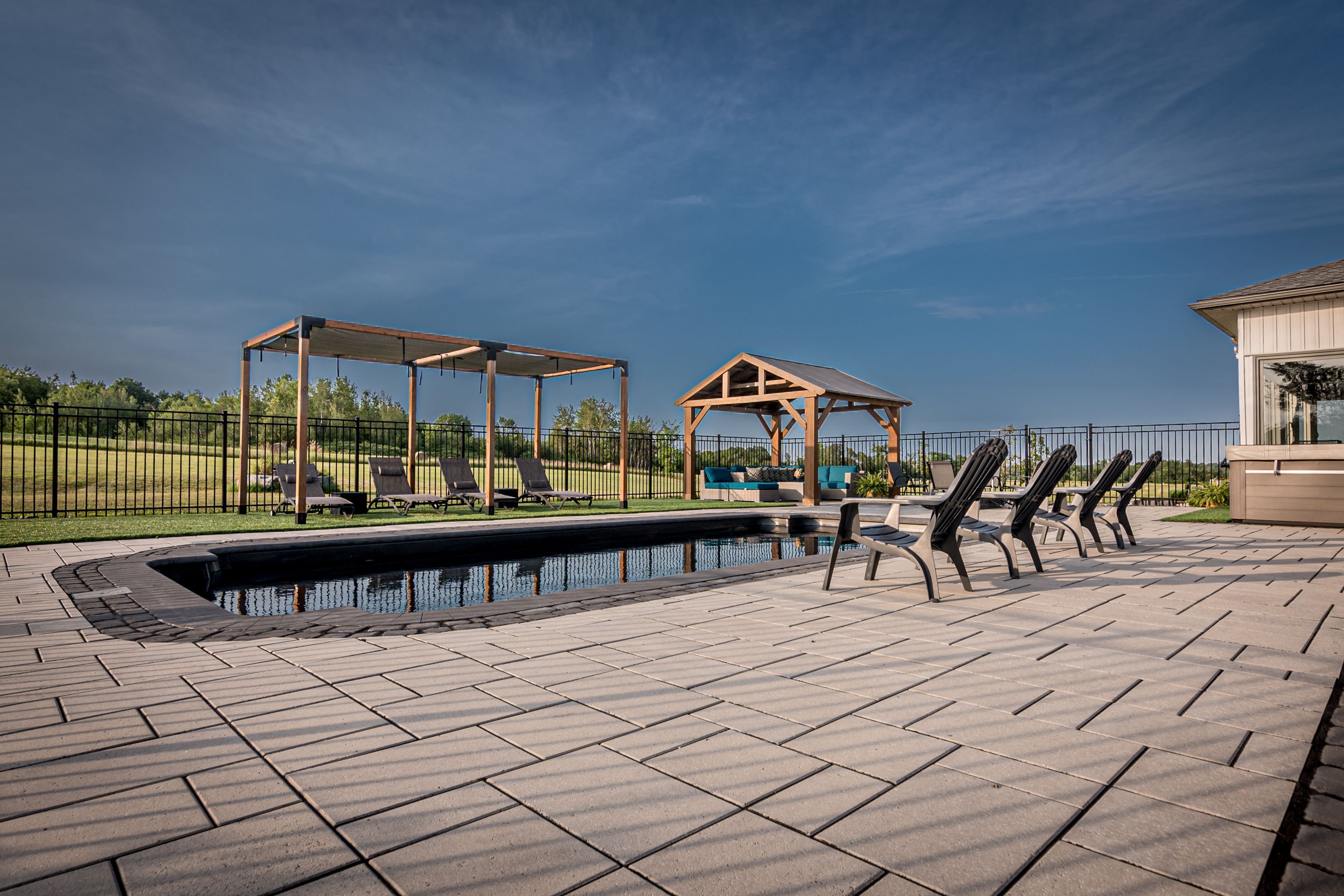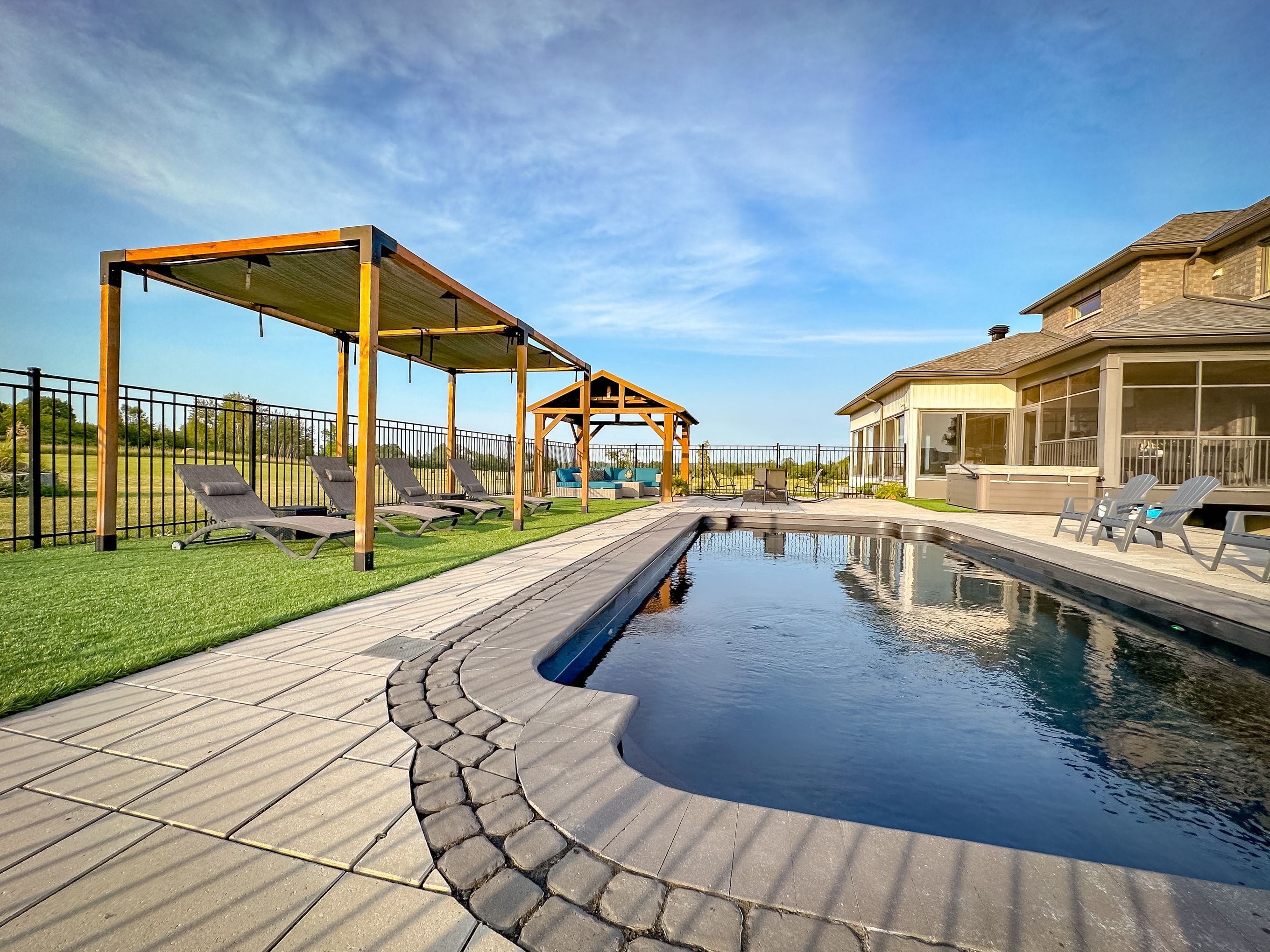 • Outdoor paradise featuring a pool, hot tub, and fire pit.