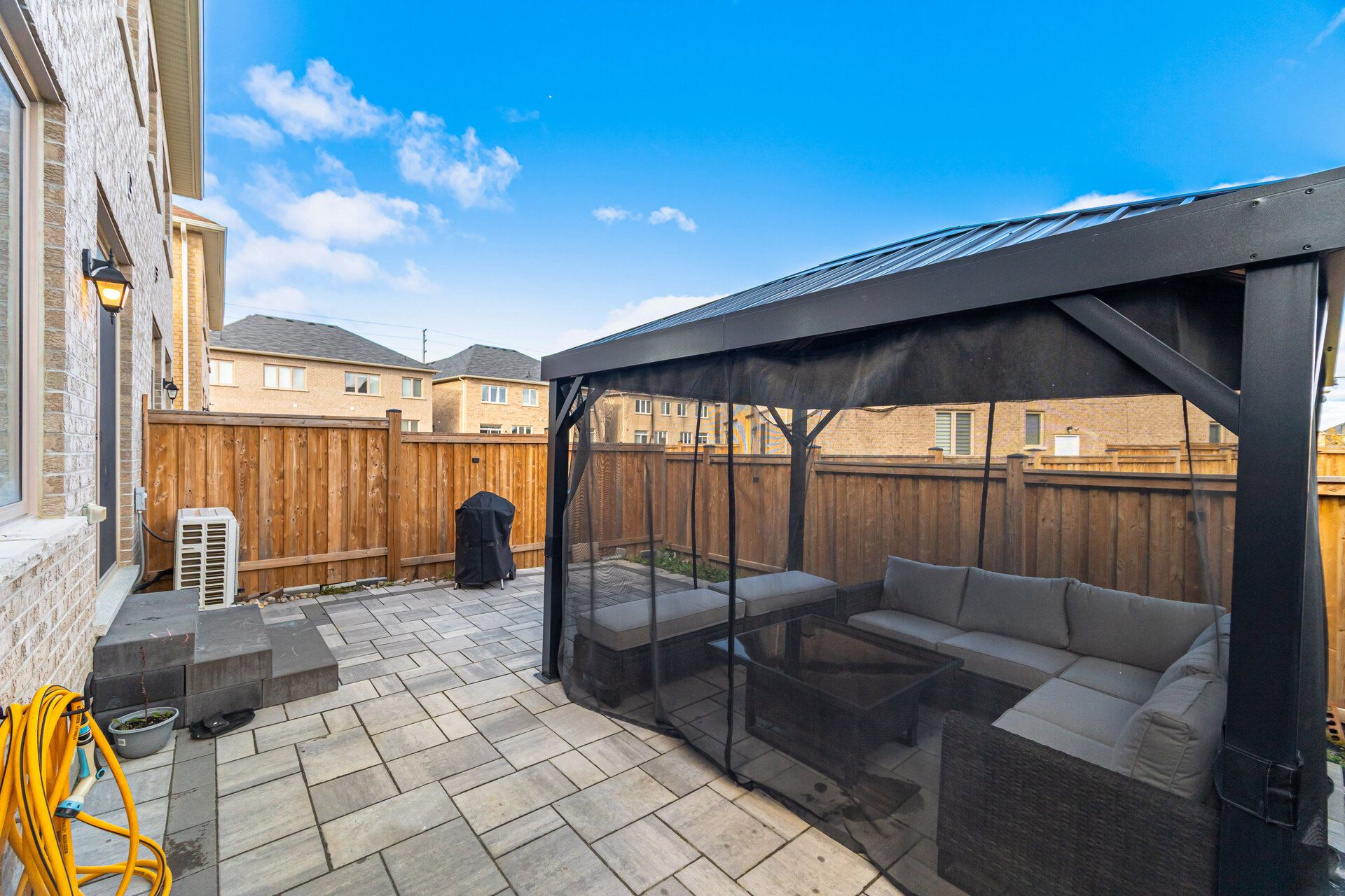 Welcome to this bright and spacious 3-bedroom semi-detached home in highly sought-after northwest brampton, showcasing over $45,000 in premium upgrades (see attached list). Featuring no sidewalk and an extended driveway, this property offers exceptional curb appeal and convenience. A builder-installed separate entrance to the basement and 9 ft ceilings on both the main and second floors (a rare feature for semis) add tremendous value and versatility. The main floor impresses with gleaming hardwood, a striking black-and-white custom wooden staircase, smooth 9 ft ceilings, and an upgraded powder room. The open-concept family room provides the perfect space to relax or entertain, complete with a modern electric fireplace. The beautifully upgraded kitchen and dining area feature a wall-mounted range hood, quartz countertops with a breakfast bar, stylish marble backsplash, and a water filtration system, with a walkout to the spacious, fenced backyard. Enjoy summer gatherings on the large patio with gazebo, ideal for outdoor living. Upstairs, the second floor also offers 9 ft ceilings and a generous layout. The expansive primary bedroom includes a luxurious upgraded 5-piece ensuite and a newly customized, fully shelved walk-in closet. Two additional well-sized bedrooms, a modern 4-piece bathroom, and a convenient laundry room complete the upper level. The unfinished basement, featuring a bathroom rough-in and a separate entrance, is ready for you to design your ideal space or create a potential income-generating basement apartment. Located close to hwy 410, parks, trails, public transit, schools, libraries, and recreation centers, this home combines comfort, convenience, and future potential. Don't miss this opportunity & show with confidence!