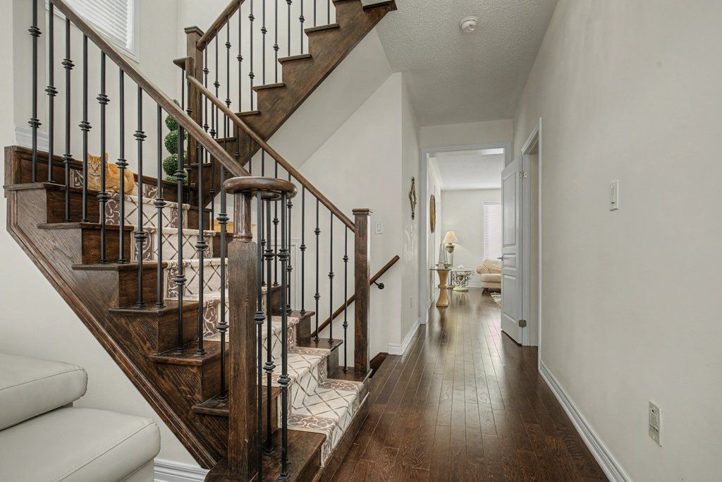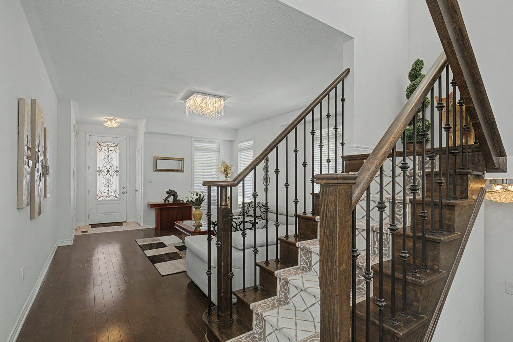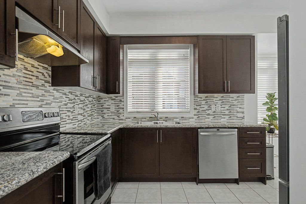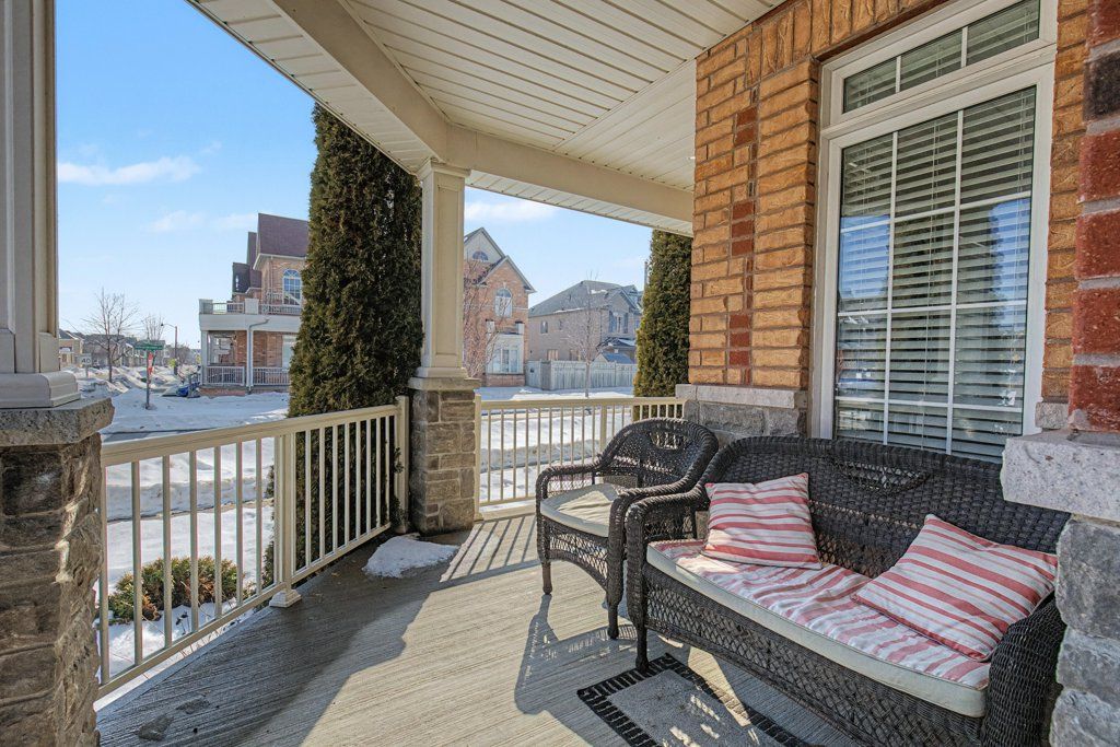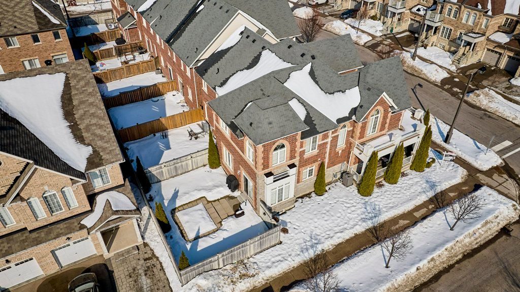 Welcome to 78 brock avenue - an exceptional end-unit corner townhome, approximately 2200 sq ft in size, that feels like a detached home, offering 33' of frontage, a rare and highly desirable feature among row townhouses. Situated in the prestigious berczy community (upper unionville), this approximately 12-year-new residence is surrounded by top-ranked schools, parks, public transit, and everyday amenities. This well-maintained home features 4 spacious bedrooms and 4 washrooms, along with a professionally finished basement. The inviting wrap-around porch enhances the home's outstanding curb appeal and creates a welcoming first impression as you approach the property. The main floor offers 9' ceilings and an abundance of natural light thanks to its corner orientation and additional windows. The customized kitchen showcases rich cabinetry, granite countertops, glass backsplash, and a generous eat-in area. The adjoining family room features a corner fireplace and provides an ideal layout for everyday living and entertaining. On the second floor, you'll find four generously sized bedrooms. The primary bedroom is highlighted by coffered ceilings, while the ensuite bath features vaulted ceilings and distinctive semi-circular windows, adding architectural character and charm. The finished basement includes an additional bedroom and a 3-piece washroom, offering flexibility for guests, extended family, or home office use. Exterior features include beautifully landscaped perennial gardens and a serene backyard pond, creating a private outdoor retreat. Located in one of markham's most sought-after neighbourhoods, berczy village is well known for its highly ranked schools, including pierre elliott trudeau high school, just a short walk or 2-minute drive away. This is a rare opportunity to own a premium corner property in an established, family-oriented community with great schools and amenities.