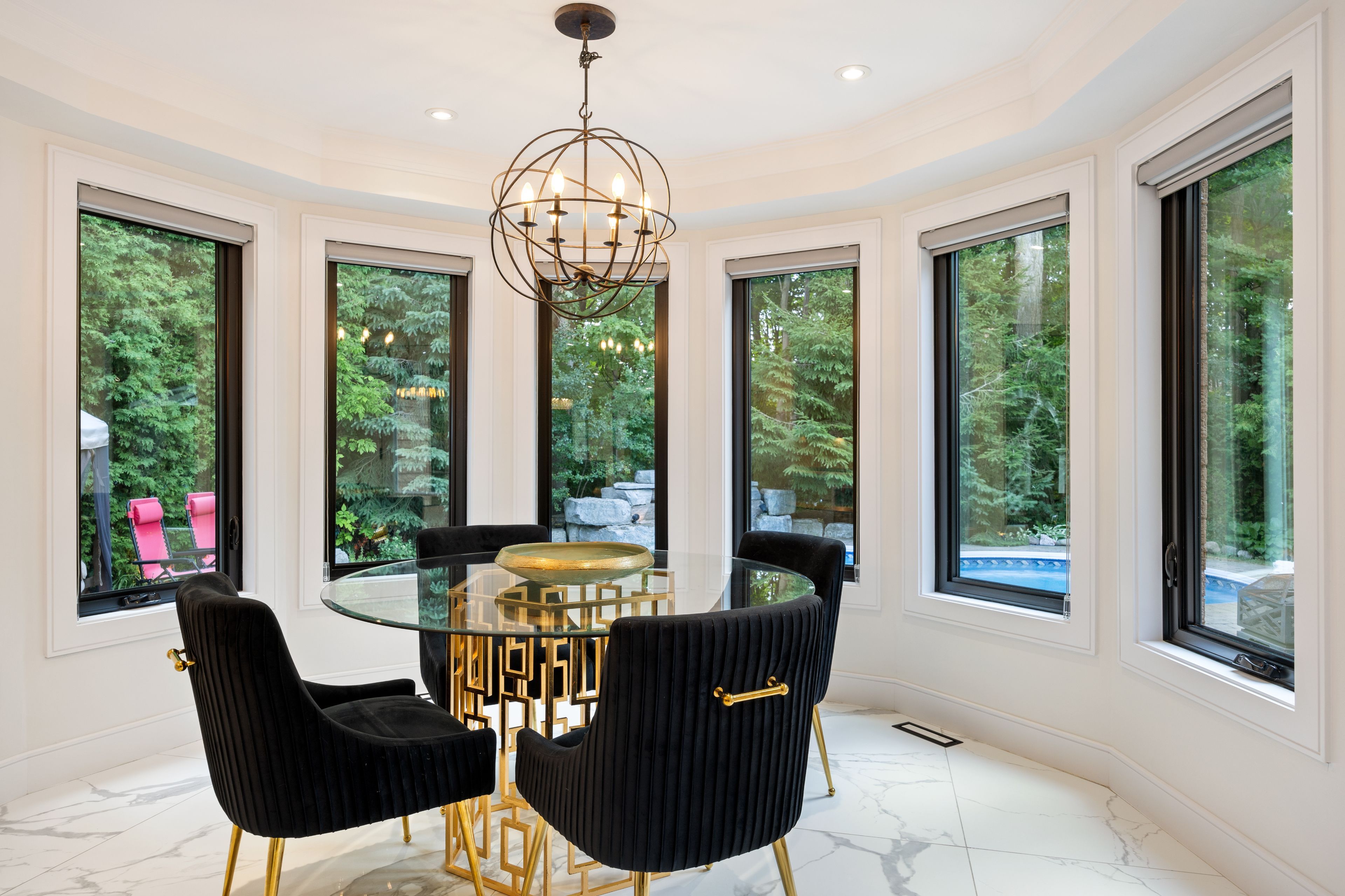 Welcome to your dream home nestled in a highly sought-after aurora neighborhood, backing ontothe for ever ravine. Professionally renovated with over $350k in high-end upgrades, thisexceptional property sits on a generous, private lot surrounded by mature trees, offeringunparalleled privacy and a peaceful retreat from the city bustle. Step inside to discover abeautifully upgraded main floor with luxurious porcelain slab flooring throughout,complemented by brand new doors and windows that flood the space with natural light whileenhancing energy efficiency. The entire home has been meticulously maintained, featuring a newroof and gutters for worry-free living, with 4 spacious bedrooms upstairs plus 2 additionalbedrooms in the fully finished basement, this home is perfectly designed for multigenerational living, a nanny suite or in-law. The basement also boasts a full gym with overproximately $12,000 in top-tier equipment included ideal for fitness enthusiasts. Enjoy theconvenience of two full kitchens and two laundry sets, perfect for families or extendedhouseholds. The master suite is a true sanctuary featuring a five-piece ensuite with aluxurious jacuzzi tub that creates the perfect ambiance for relaxation. Outside, the largebackyard is a private oasis featuring a brand new inground saltwater pool with a new poolheater and new salt system, a beautiful gazebo perfect for entertaining or quiet evenings, andprofessionally designed landscaping in both the front and back yards . Enjoy privacy, luxury,and incredible versatility in one of auroras premier locations. Don't miss this rareopportunity to own a home that truly has it all. Professionally maintained and upgraded byowner : complete reno 2020/ basement kitchen 2025/ doors and windows 2023/ garage door 2025/roof & soffit-gutter 2022/ home gym 2024/ interlocking backyard & front 2022/ fence gate 2024/full house painting 2025.