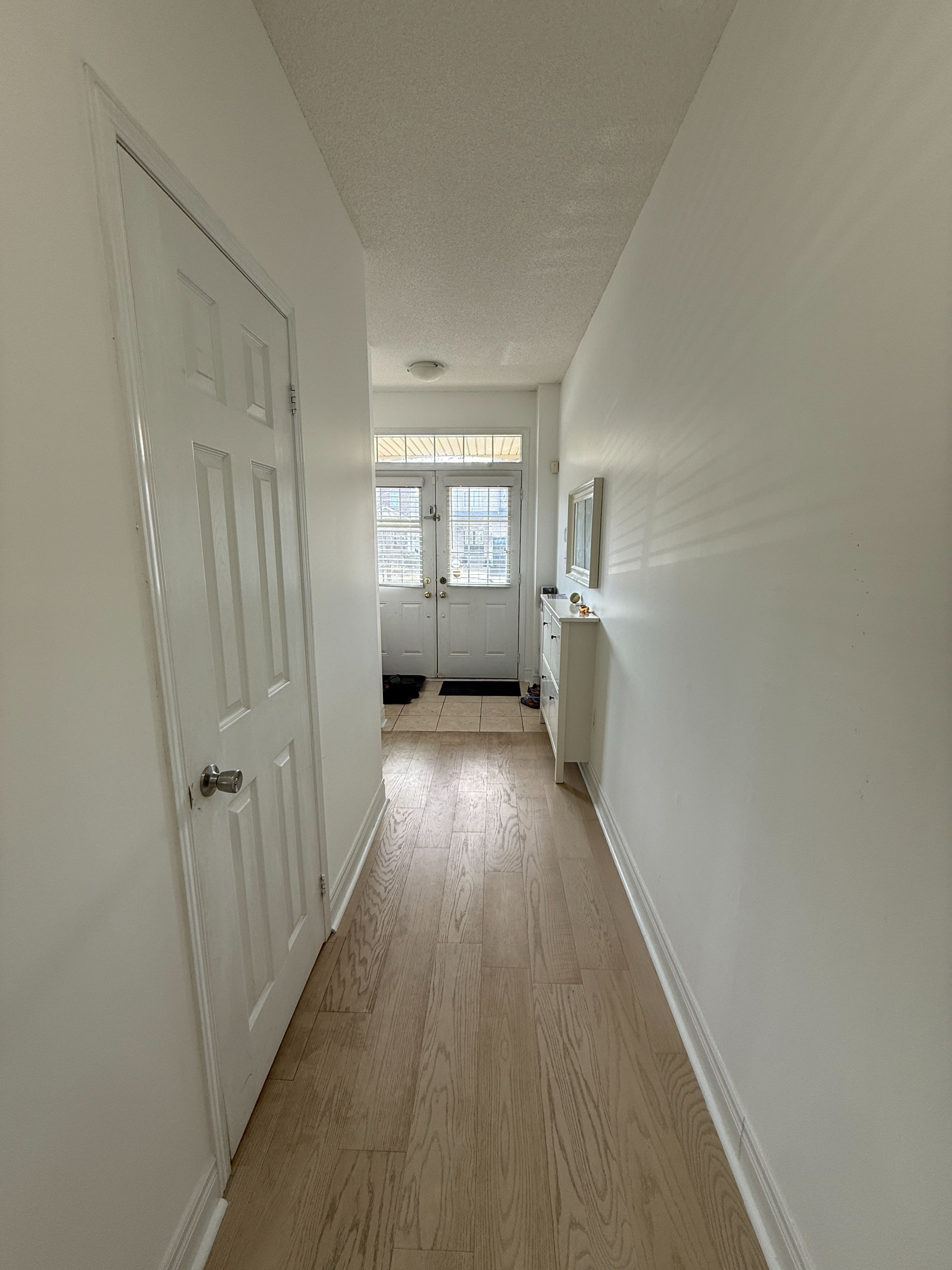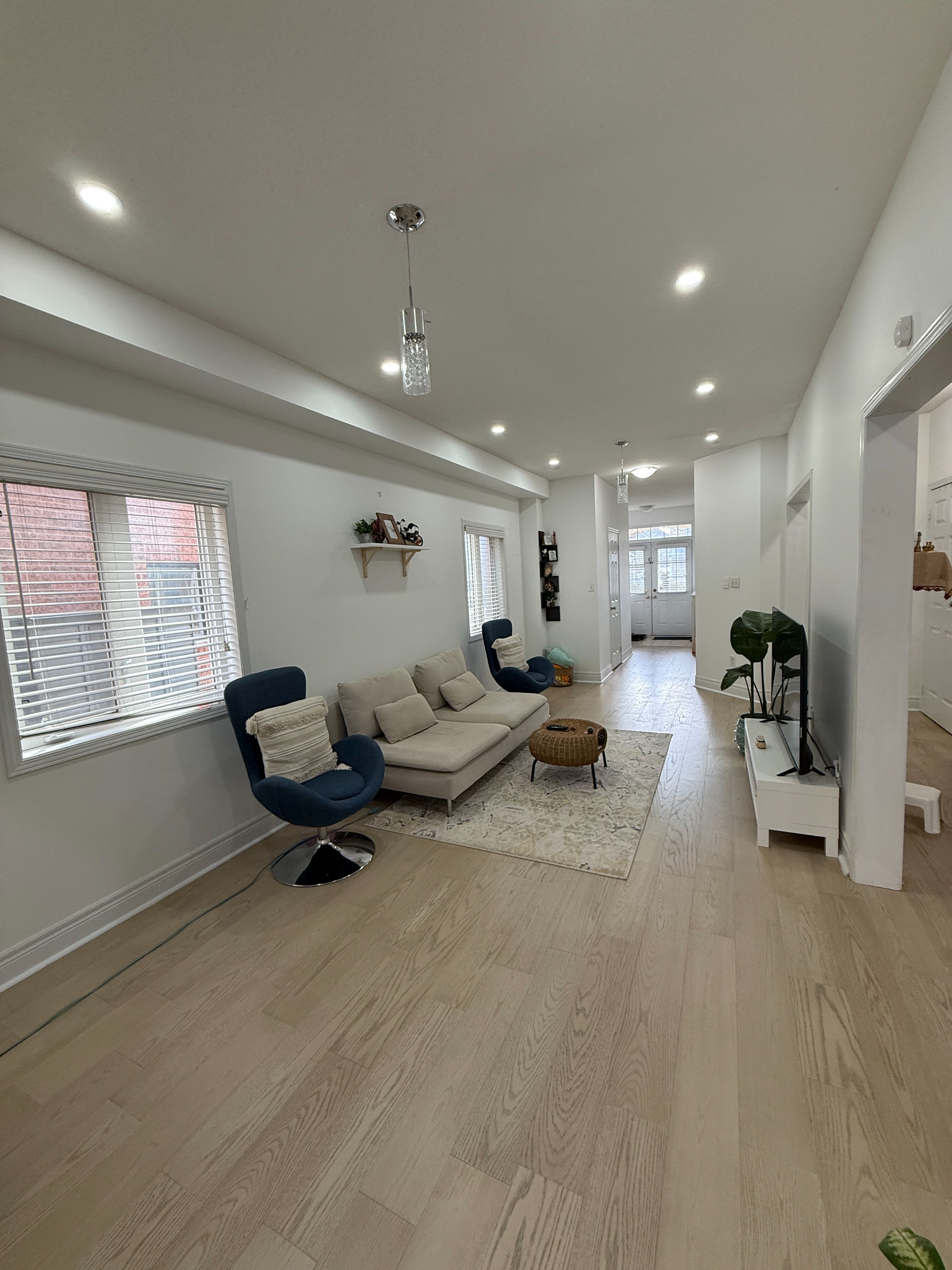 Perfectly located for commuters, this inviting home is just a short walk to the go station. Sun-filled living spaces highlight the beautiful hardwood floors in the main living area. The spacious, family-friendly eat-in kitchen overlooks a low-maintenance backyard complete with a private deck which is ideal for relaxing or entertaining. The finished legal basement with separate entrance offers a generous open area that can be used as a playroom, rec room, or home office, with ample storage throughout. The primary bedroom features a large layout a bright ensuite with a relaxing corner tub. Two additional well-sized bedrooms and another full bathroom on the upper level make this home a great fit for a growing family.