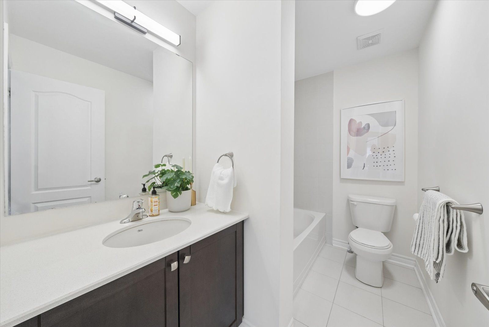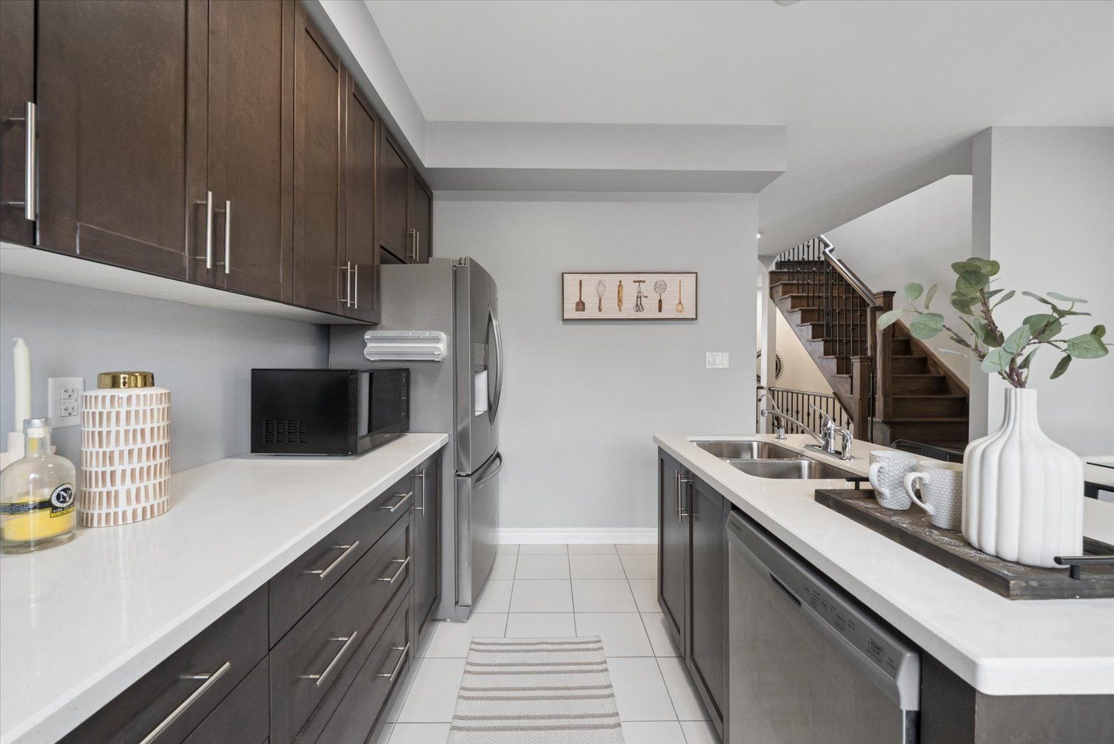 • Well-designed kitchen with quartz countertops and stainless steel appliances.