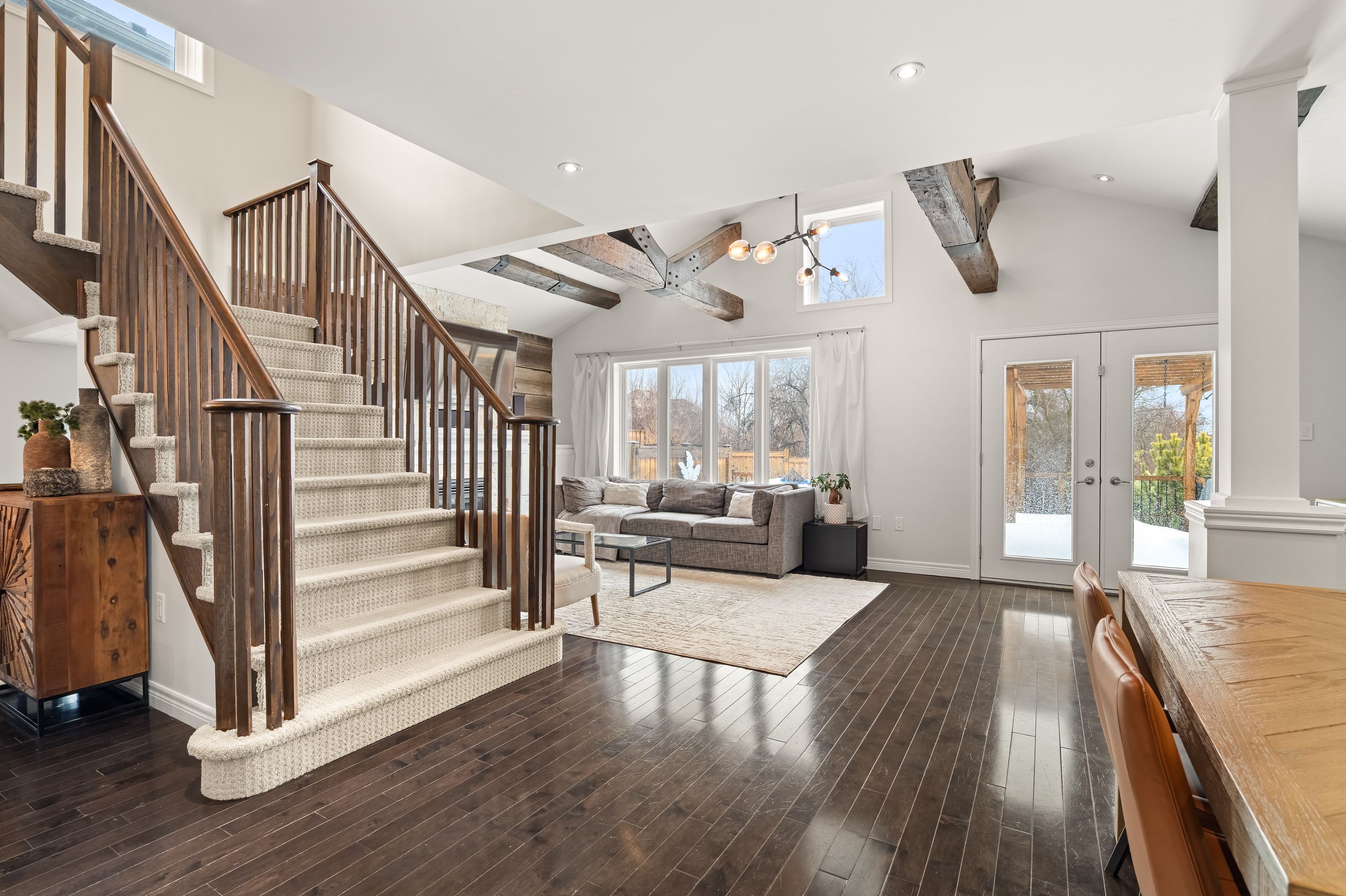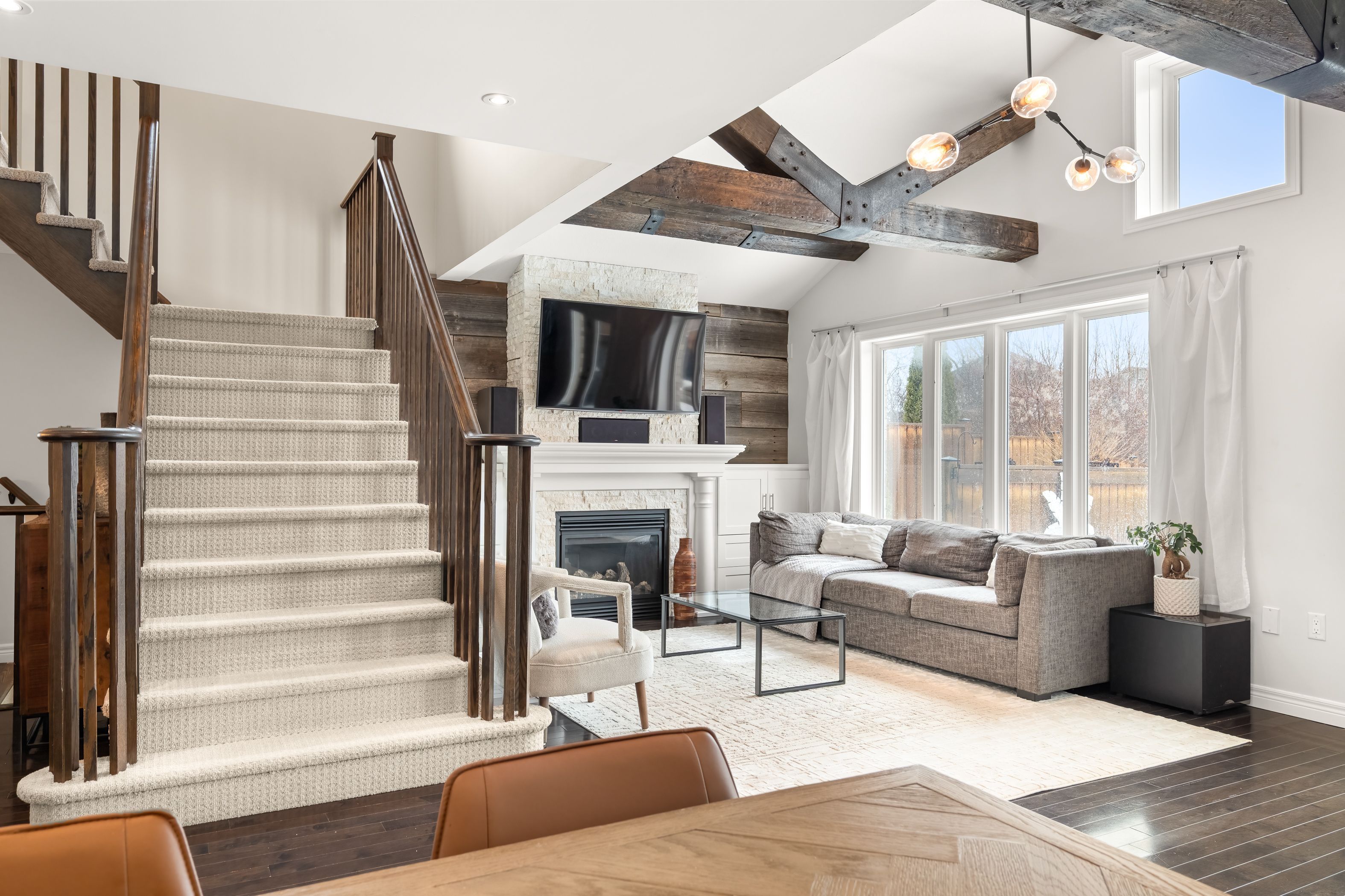 If you've been looking for space to grow, room to gather, and a backyard that actually feels like an escape, this doon south home delivers that balance beautifully. With a fully finished basement complete with side entrance, a saltwater in-ground pool, and thoughtful upgrades throughout, all while backing onto a trail. Check out our top 7 reasons why this home stands out long-term:#7: location: nearby nature and trails, parks and schools - all within walking distance. #6: curb appeal & lot: from the beautifully finished front steps and walkway to the mature landscaping and double driveway, this home has presence. A double-car garage gives you everyday convenience, while backing onto a trail gives you peace and tranquillity. #5: backyard living: a 28 x 16 saltwater in-ground pool anchors the yard, complemented by a deck with a pergola, a fire pit area, and lush landscaping. 4: main floor warmth: there are faux wood beams in the living room, custom built-ins, a vaulted ceiling, crown moulding, and upgraded lighting that elevate the entire space. The main-floor powder room features a barn door and accent walls for added character, and the flow between the living, dining, and kitchen feels natural and connected.#3: eat-in kitchen: the kitchen features stainless steel appliances, quartz countertops, a stone accent wall, and under-cabinet lighting. Patio doors connect directly to the backyard. The adjacent dinette with a stone accent wall and the formal dining room are perfect for hosting family and friends. #2: bedrooms & bathrooms: upstairs, there are 3 well-appointed bedrooms, including a primary suite with a walk-in closet and a 5-pc ensuite. The remaining bedrooms share a 4-piece main bath. There's also a custom 2nd-floor laundry room with built-ins, #1: finished basement: the fully finished basement with a side entrance offers a rec room, bar, laundry, the 4th bedroom, a 3-pc bathroom and a flexible layout that could accommodate extended family or guests.