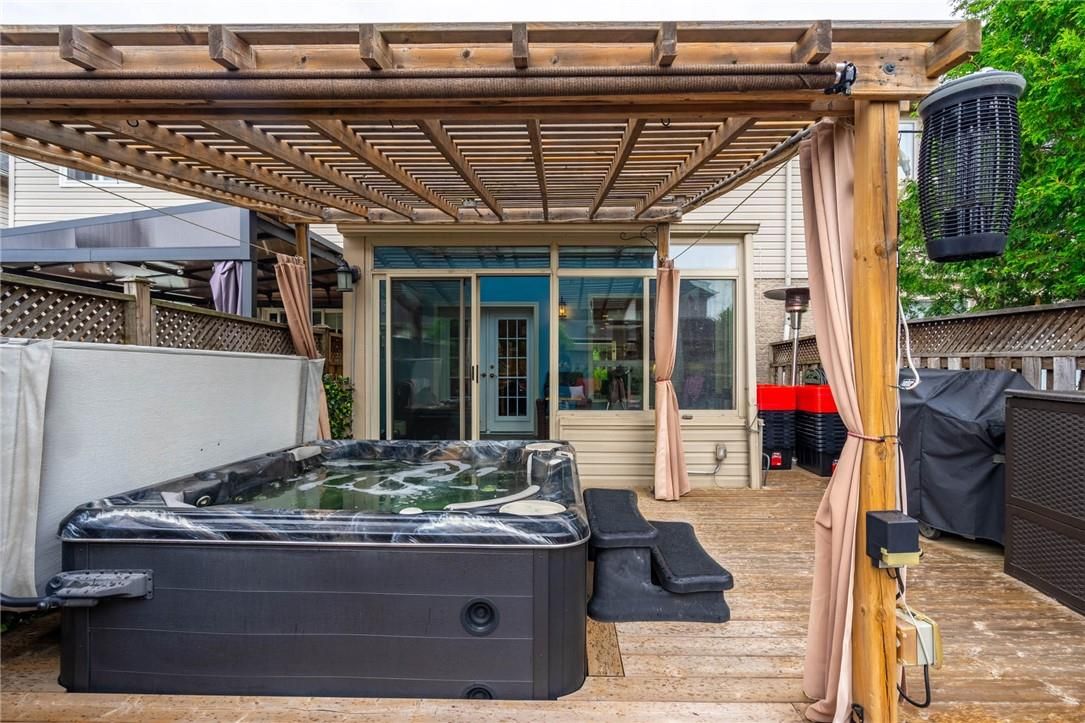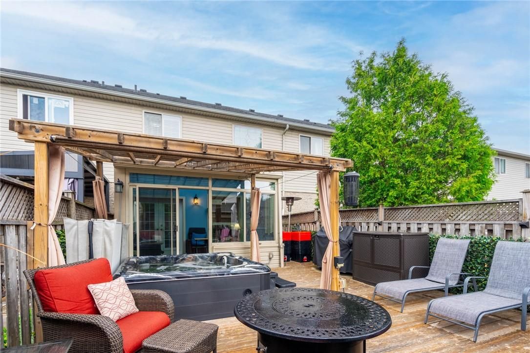 Beautifully maintained 2-storey townhouse located in a sought-after, family-friendly ancaster neighbourhood. This home features 3 bedrooms and 2. 5 bathrooms, along with a private backyard-perfect for entertaining. The finished basement offers a spacious recreation room and a 3-piece bathroom. Conveniently located within walking distance to castelli bakery and bishop tonnos high school, with easy access to highway 403 and the lincoln alexander parkway. Pride of ownership is evident throughout. Hot tub use is negotiable.