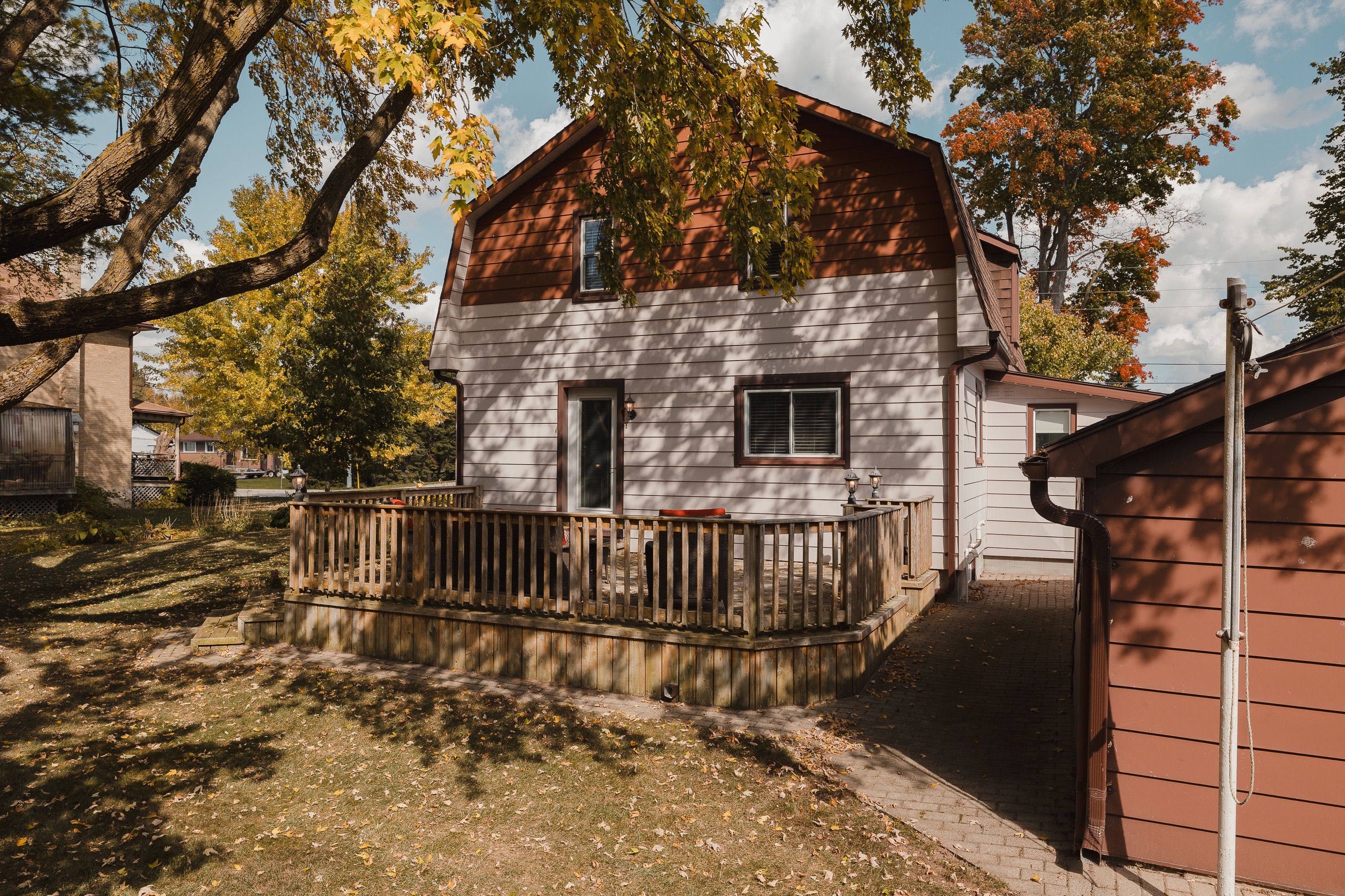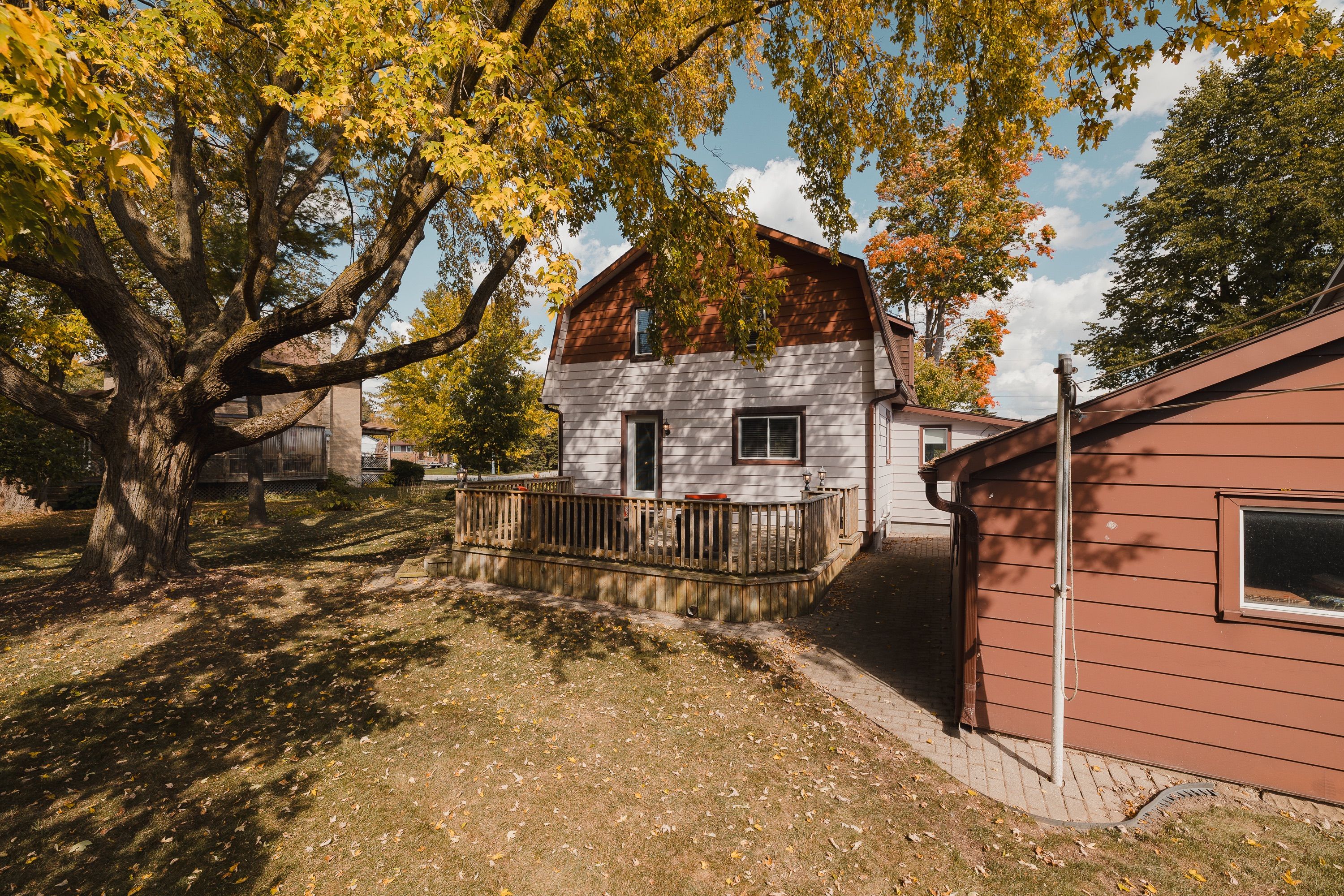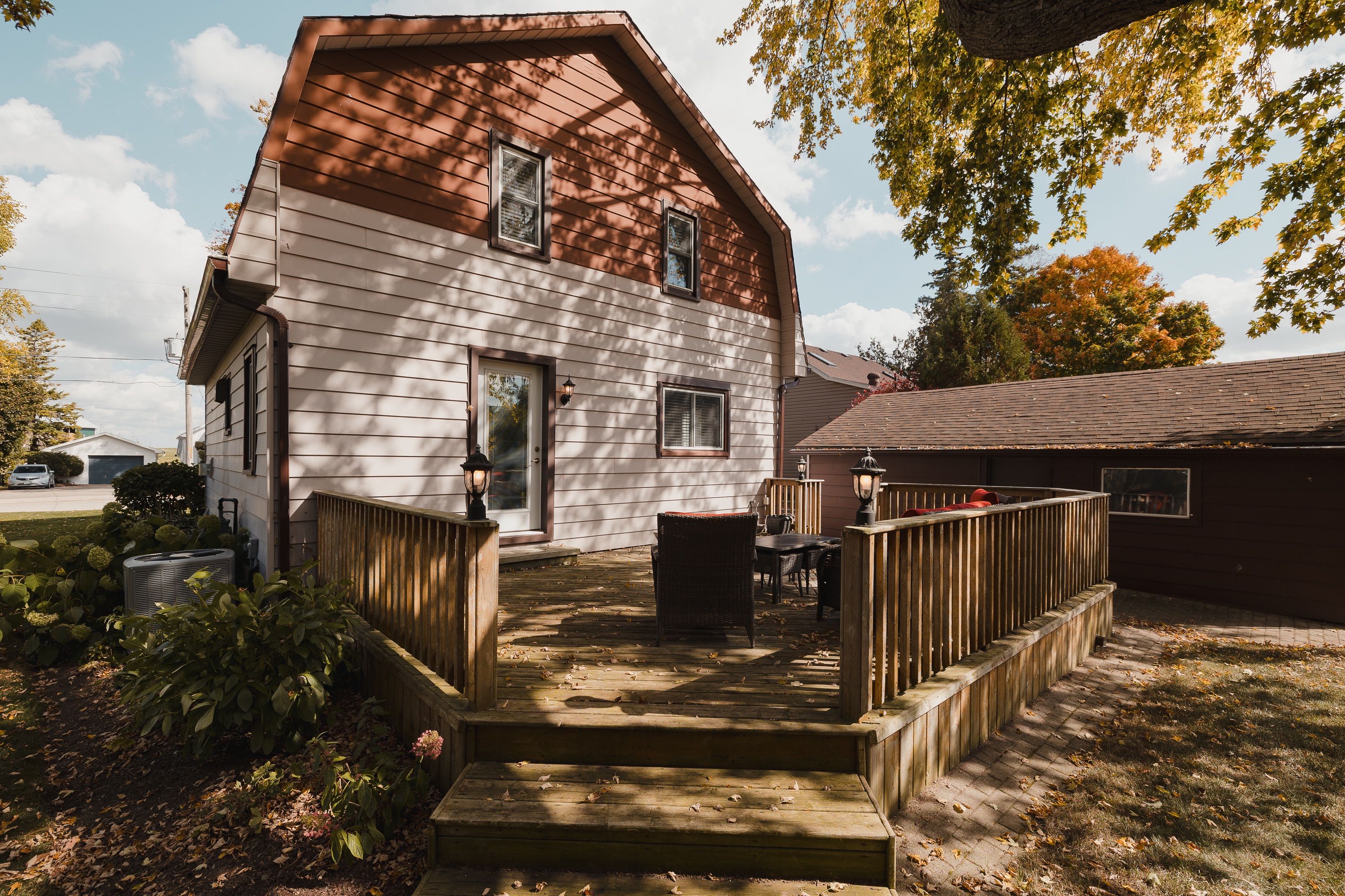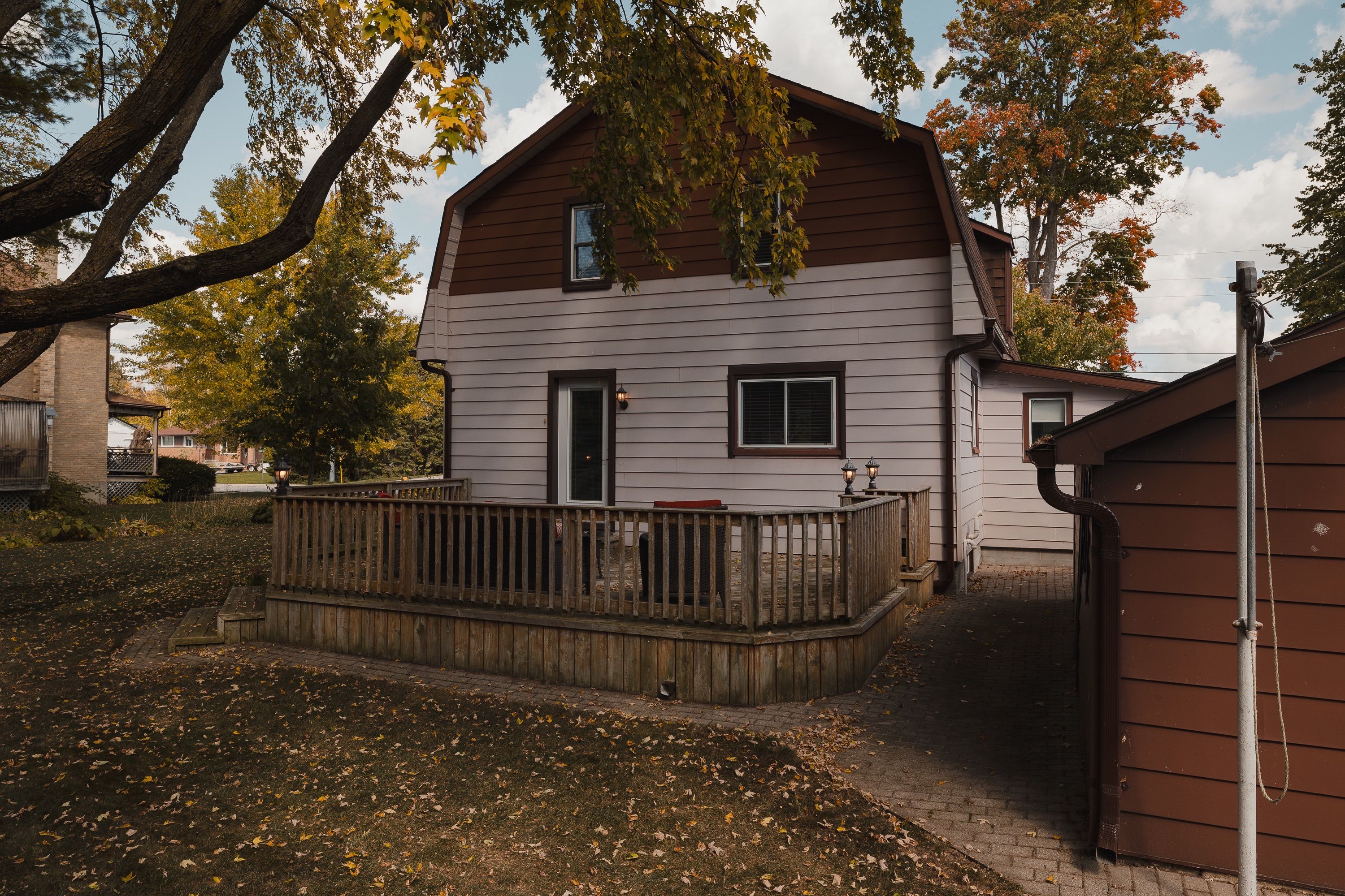Welcome to 78 george street south, a charming and well maintained home in one of harristons most convenient neighbourhoods. Steps to the arena, curling club, new sports pad, swimming pool, and a short walk to the elementary school. Set on a generous 82. 5 x 132 lot with parking for up to five vehicles and a 1. 5-car detached garage (18'2" x 22') offering storage or workshop potential. The large backyard features a 22'7" x 15'10" deck off the kitchen. Maintenance is easy with leaffilter gutter protection installed on the house with a transferable lifetime warranty. Grounds are professionally maintained, and the roof was replaced in 2014. Inside, character meets thoughtful updates. The insulated kitchen was renovated in 2015 with custom cherry wood cabinetry and lg stainless steel appliances including fridge with ice and water, stove, dishwasher, and microwave. The bright living room offers an oversized window and a gas fireplace (2022, serviced annually). Beyond is an enclosed front porch. The 4 piece bathroom was renovated in 2021 with custom cabinetry and a bath fitter tub surround. Upstairs are four bedrooms, one featuring a custom built-in desk. The dry basement and attic are insulated for efficiency. Recent updates include gas furnace and air conditioner (2022, serviced annually), electric water heater (2025), and culligan water softener (serviced 2025). Inclusions: riding lawn mower, push mower, walk-behind snowblower, samsung washer and dryer, window blinds, 48-inch lg wall-mounted tv, and culligan water softener. Located in a quiet, walkable neighbourhood a wonderful place to call home.