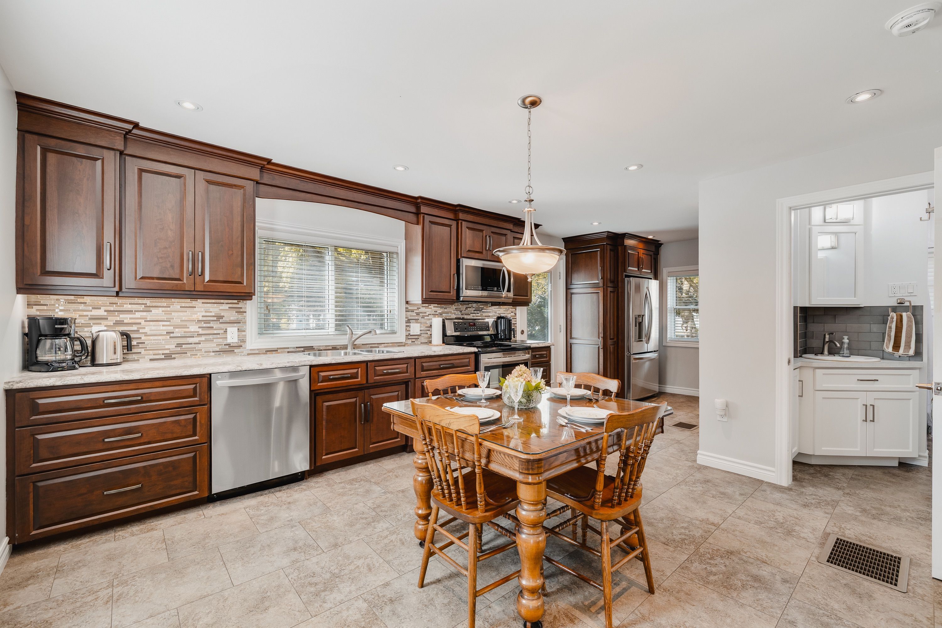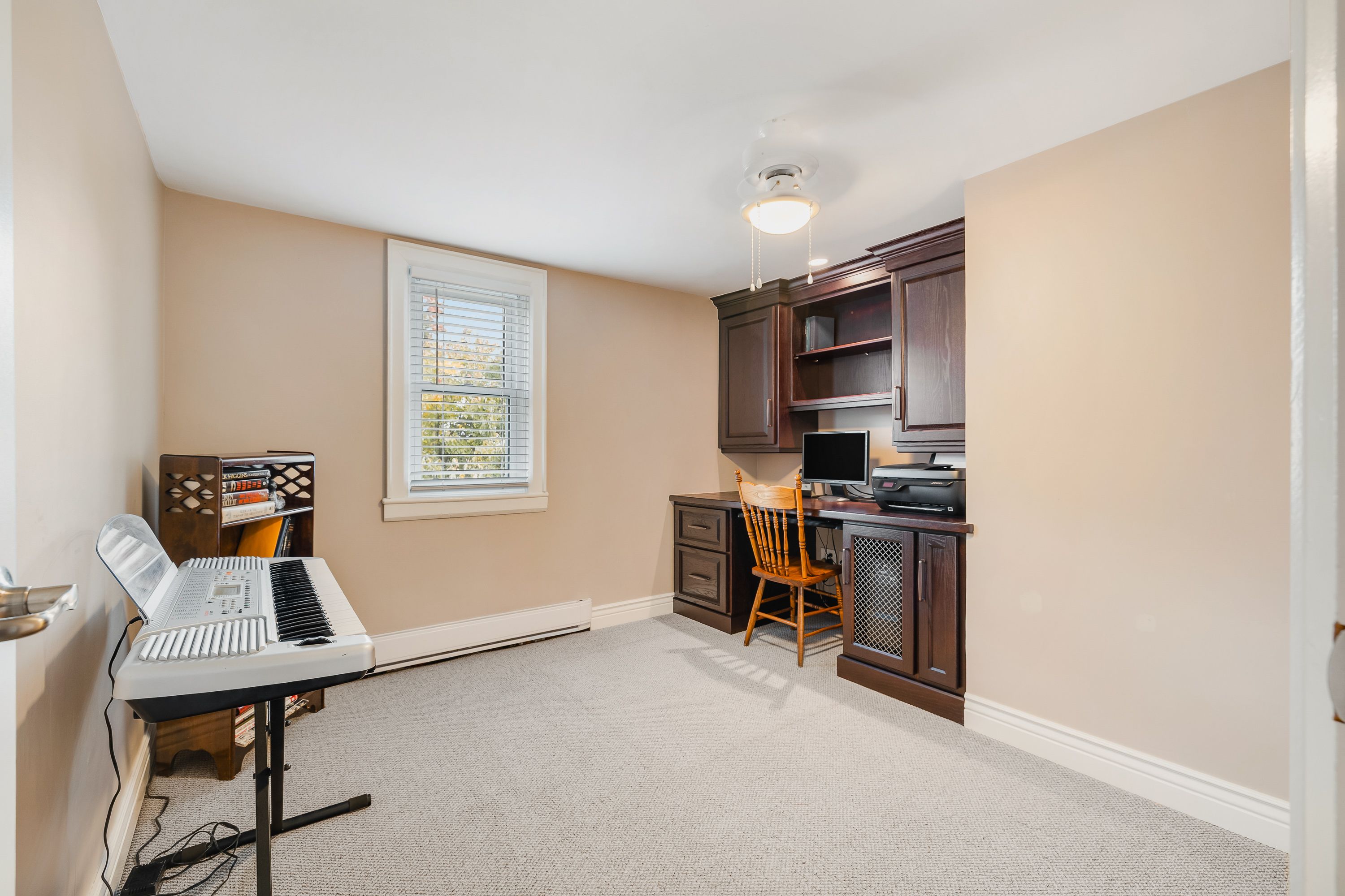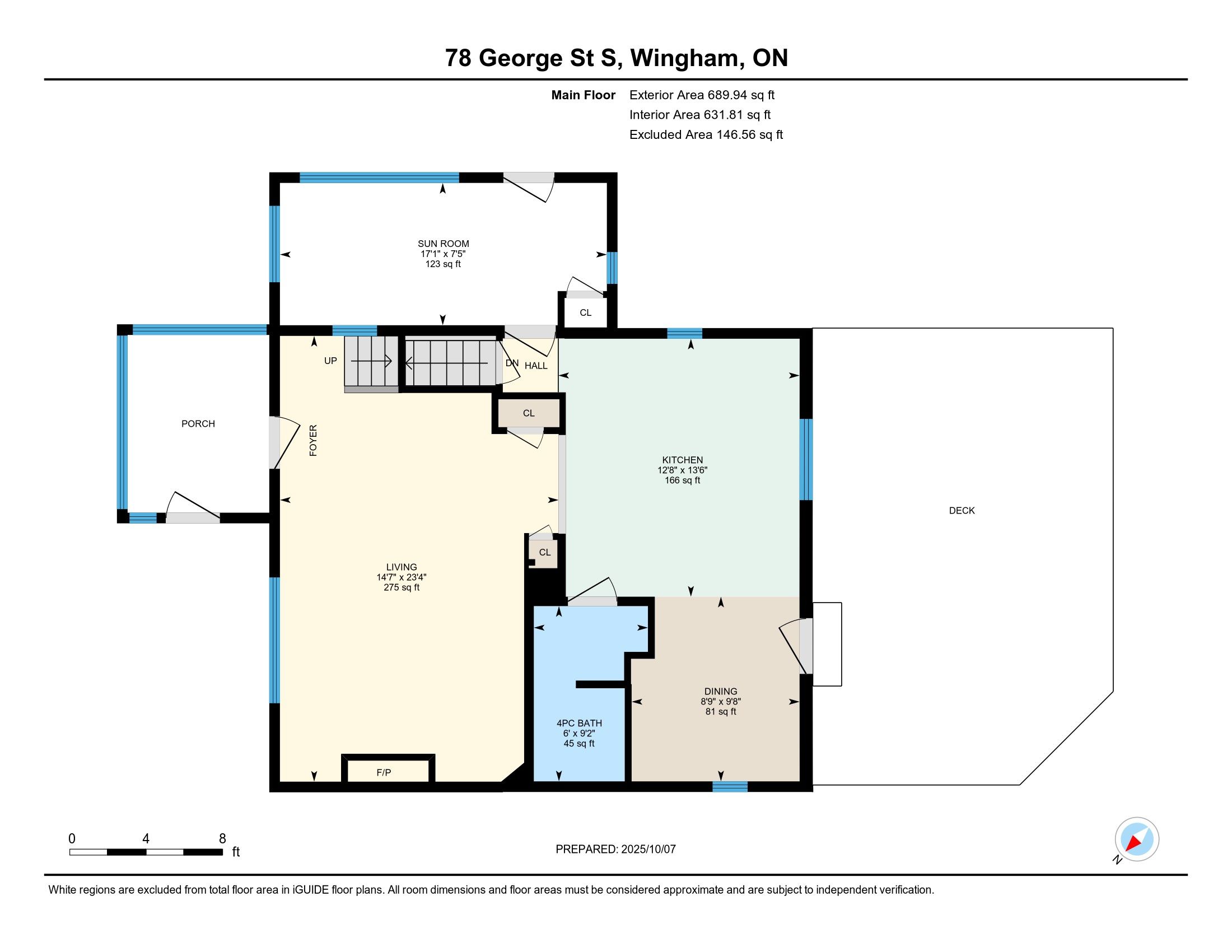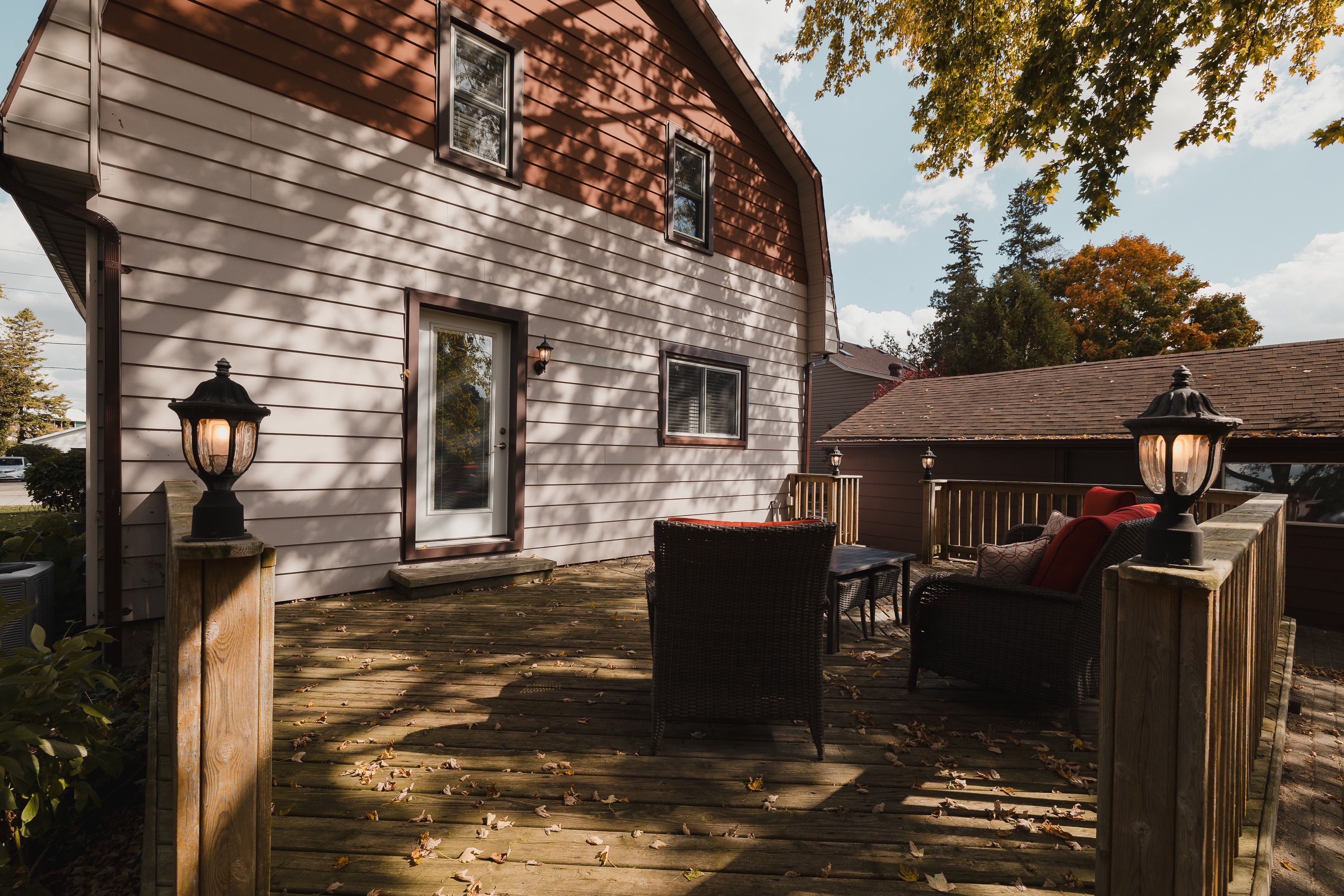 Welcome to 78 george street south, a charming and well maintained home in one of harristons most convenient neighbourhoods. Steps to the arena, curling club, new sports pad, swimming pool, and a short walk to the elementary school. Set on a generous 82. 5 x 132 lot with parking for up to five vehicles and a 1. 5-car detached garage (18'2" x 22') offering storage or workshop potential. The large backyard features a 22'7" x 15'10" deck off the kitchen. Maintenance is easy with leaffilter gutter protection installed on the house with a transferable lifetime warranty. Grounds are professionally maintained, and the roof was replaced in 2014. Inside, character meets thoughtful updates. The insulated kitchen was renovated in 2015 with custom cherry wood cabinetry and lg stainless steel appliances including fridge with ice and water, stove, dishwasher, and microwave. The bright living room offers an oversized window and a gas fireplace (2022, serviced annually). Beyond is an enclosed front porch. The 4 piece bathroom was renovated in 2021 with custom cabinetry and a bath fitter tub surround. Upstairs are four bedrooms, one featuring a custom built-in desk. The dry basement and attic are insulated for efficiency. Recent updates include gas furnace and air conditioner (2022, serviced annually), electric water heater (2025), and culligan water softener (serviced 2025). Inclusions: riding lawn mower, push mower, walk-behind snowblower, samsung washer and dryer, window blinds, 48-inch lg wall-mounted tv, and culligan water softener. Located in a quiet, walkable neighbourhood a wonderful place to call home.