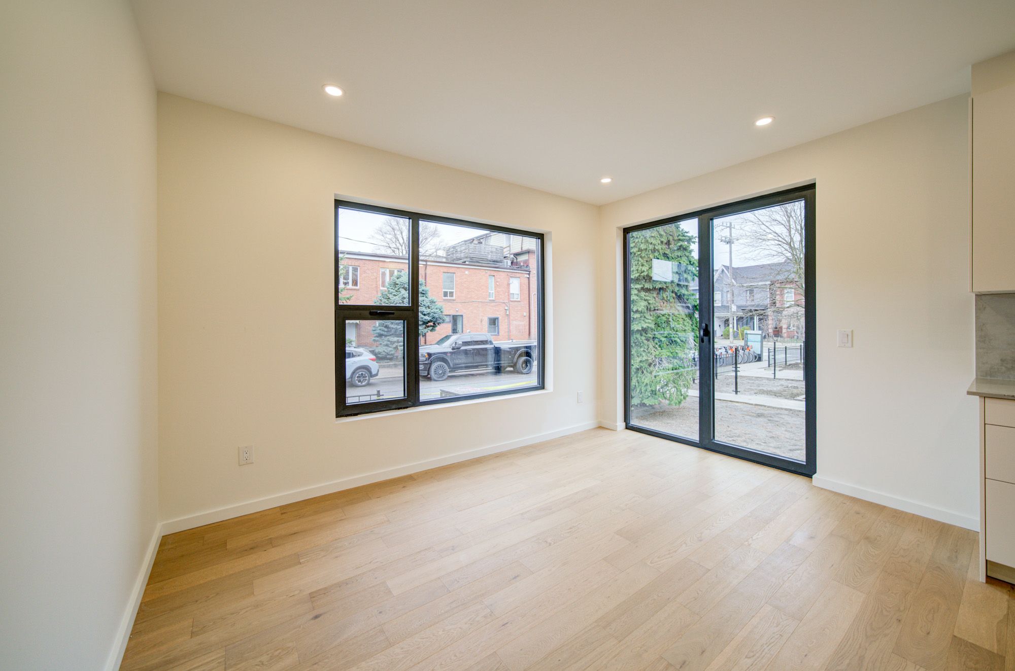 Bright, airy, and exceptionally spacious two-level 3-bedroom, 3-bathroom apartment occupying the main and upper floors of this newly built house and providing approximately1400 sq. Ft of living space. Featuring high ceilings, hardwood floors, in floor heating, in-unit laundry, and full-size appliances, this home offers both charm and modern convenience. The unit comes with parking which is a high demand in the neighborhood. Flooded with natural light throughout, the layout feels open and comfortable, with generous room sizes and excellent flow across both levels. Ideally situated in the heart of little portugal neighborhood, the house is steps to supermarkets, top-rated restaurants and bars, galleries, retail, schools, and transit. One of toronto's most vibrant and walkable communities, offering an unbeatable mix of culture, dining, and urban convenience.