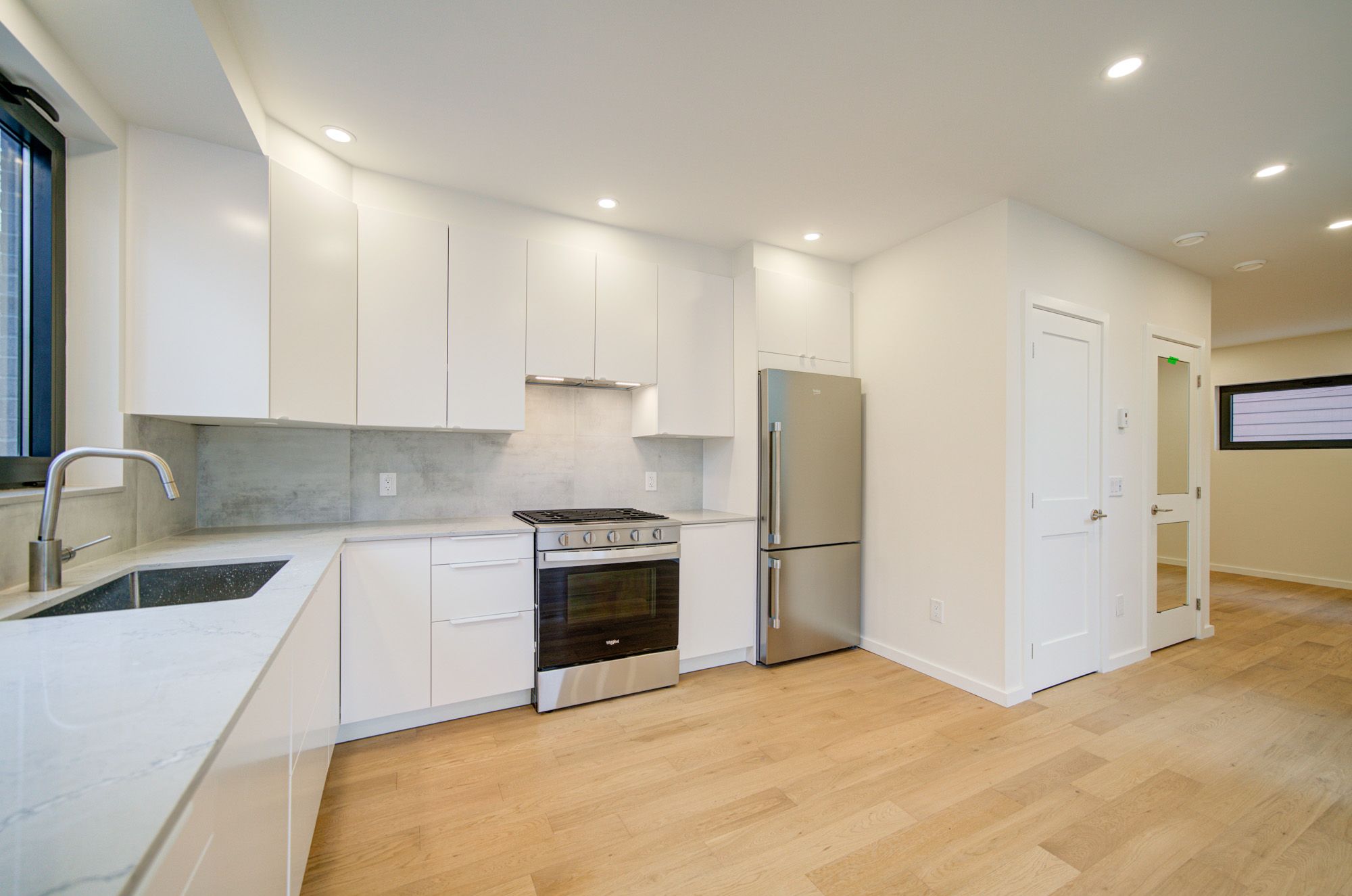 • In-floor heating and in-unit laundry for modern convenience.