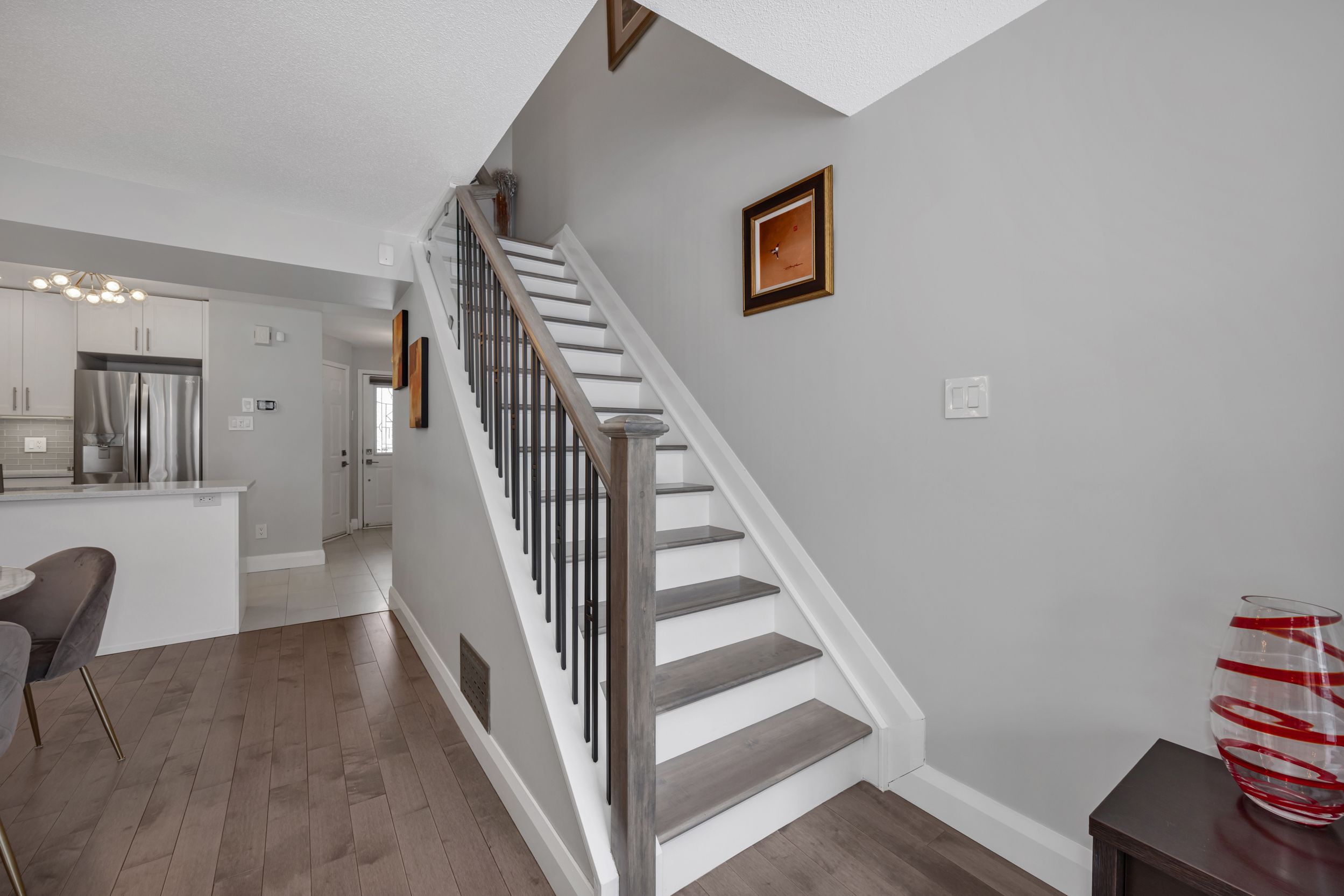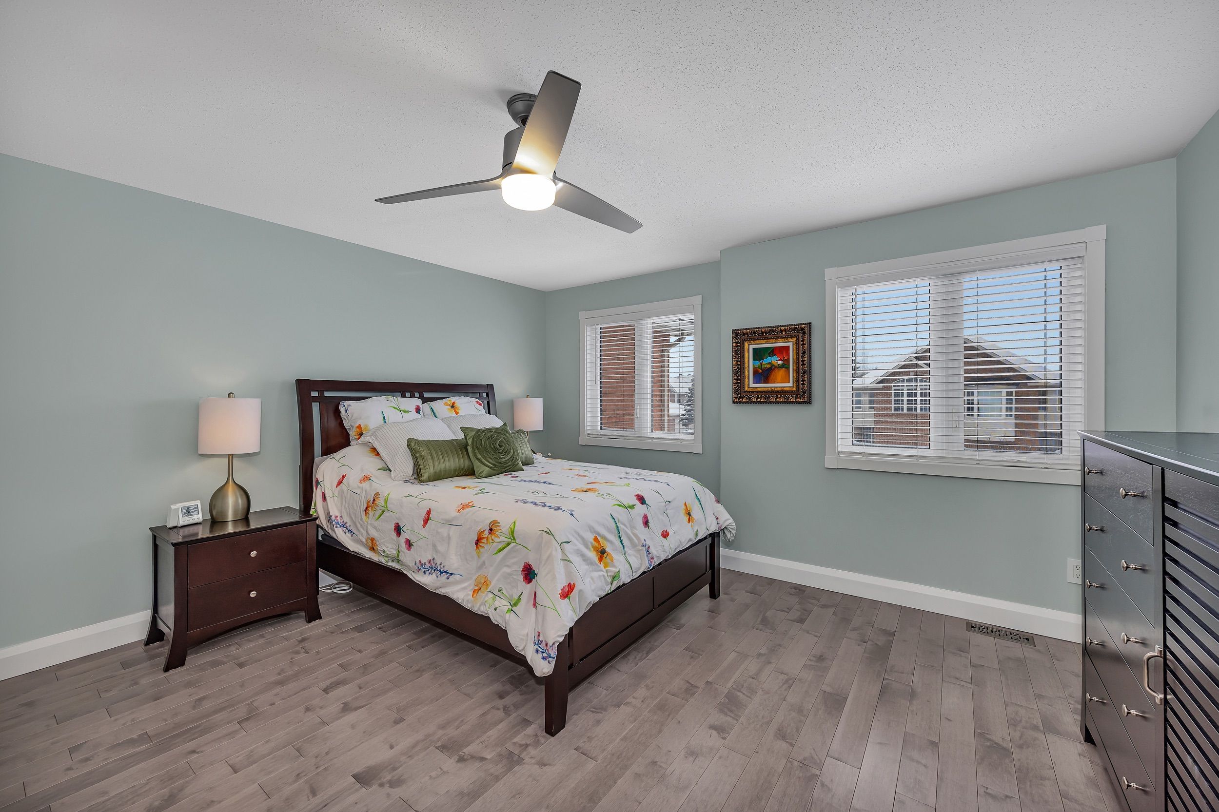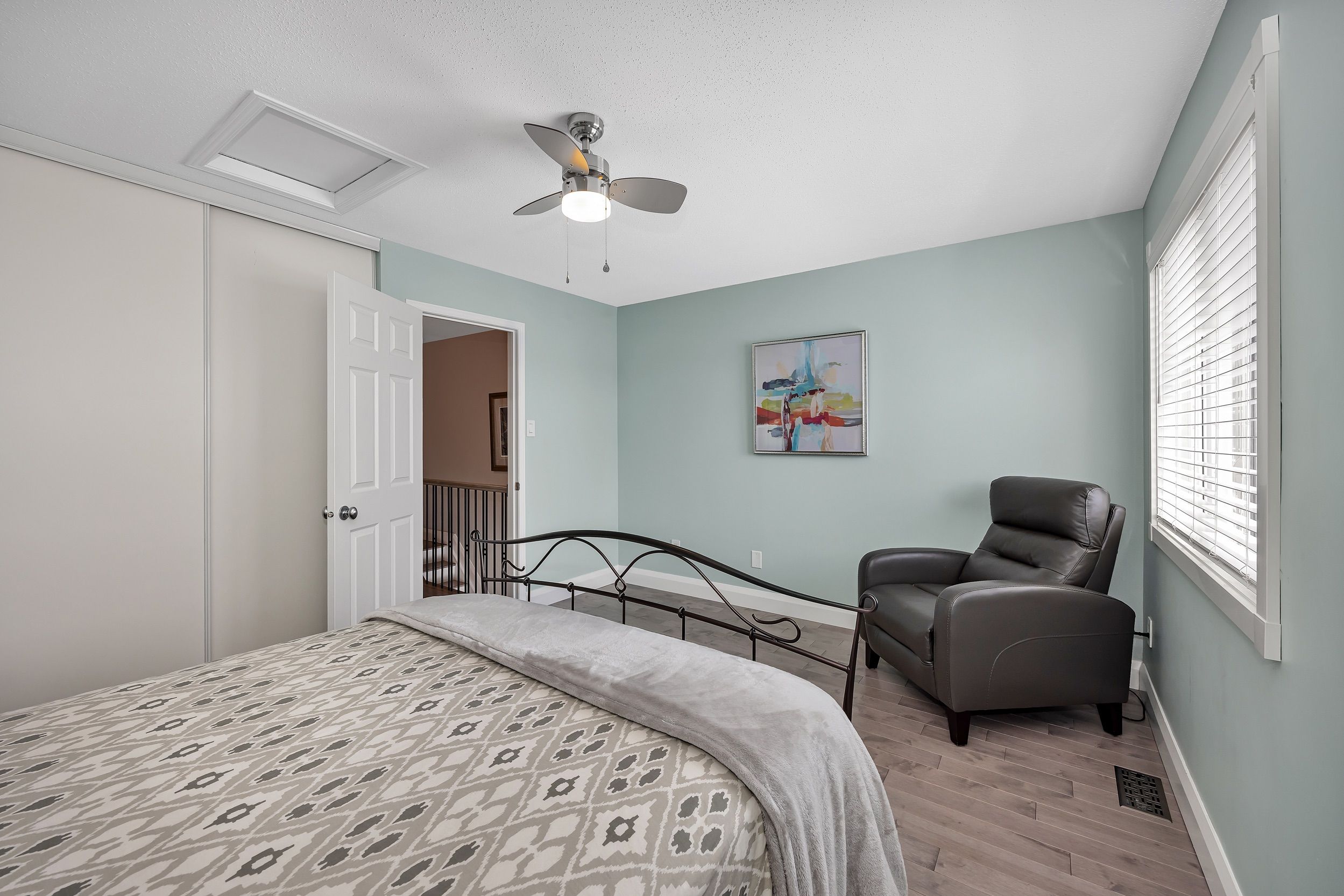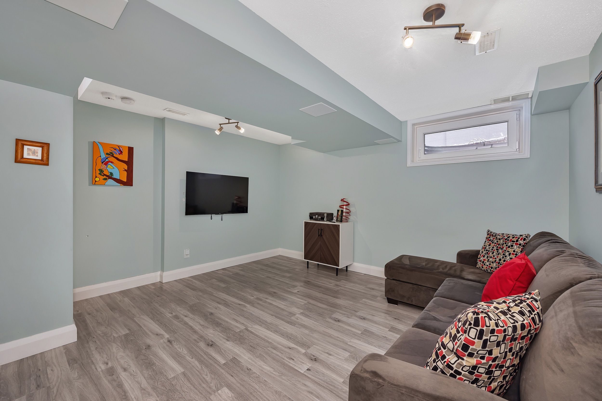 Beautifully renovated 2-bedroom, 2-bath home with finished basement and sunny southern exposure on one of the most desirable streets in the sought-after central park neighbourhood! The stunning 2020 kitchen renovation offers quartz countertops, gas range, full pantry, coffee bar with lighted cabinetry, pot lighting, and abundant storage. Thoughtful updates throughout the home include upgraded lighting and modern finishes. Upstairs you'll find two spacious bedrooms with generous closet space and a beautifully updated main bathroom with a full soaker tub (2020). The finished basement adds a cozy recreation room, second full bathroom, and large storage room. Major updates include roof, windows and patio doors with vinyl casings, new garage door, furnace, and a/c. Enjoy the fully fenced, landscaped backyard with desirable southern exposure. Close to parks, walking paths, shopping, transit, and major routes. Move-in ready in one of the city's most vibrant communities. Don't miss this opportunity!