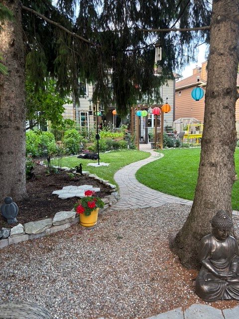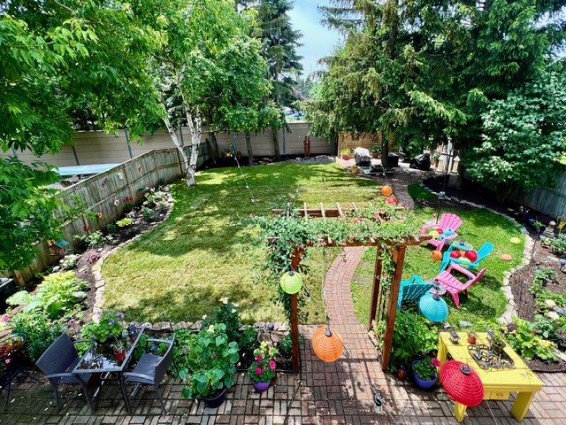 • Private backyard oasis with mature trees and gardens for relaxation.