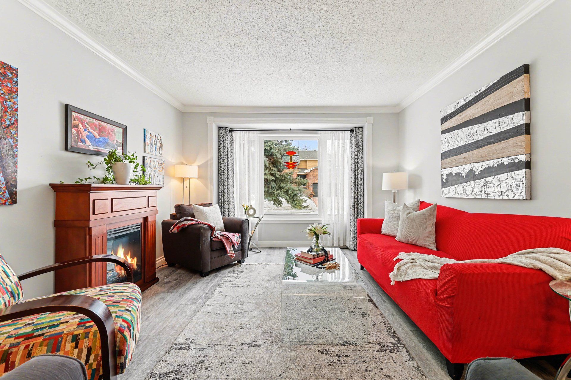 • Bright lower level with two-storey family room, fireplace, and enclosed porch access.
