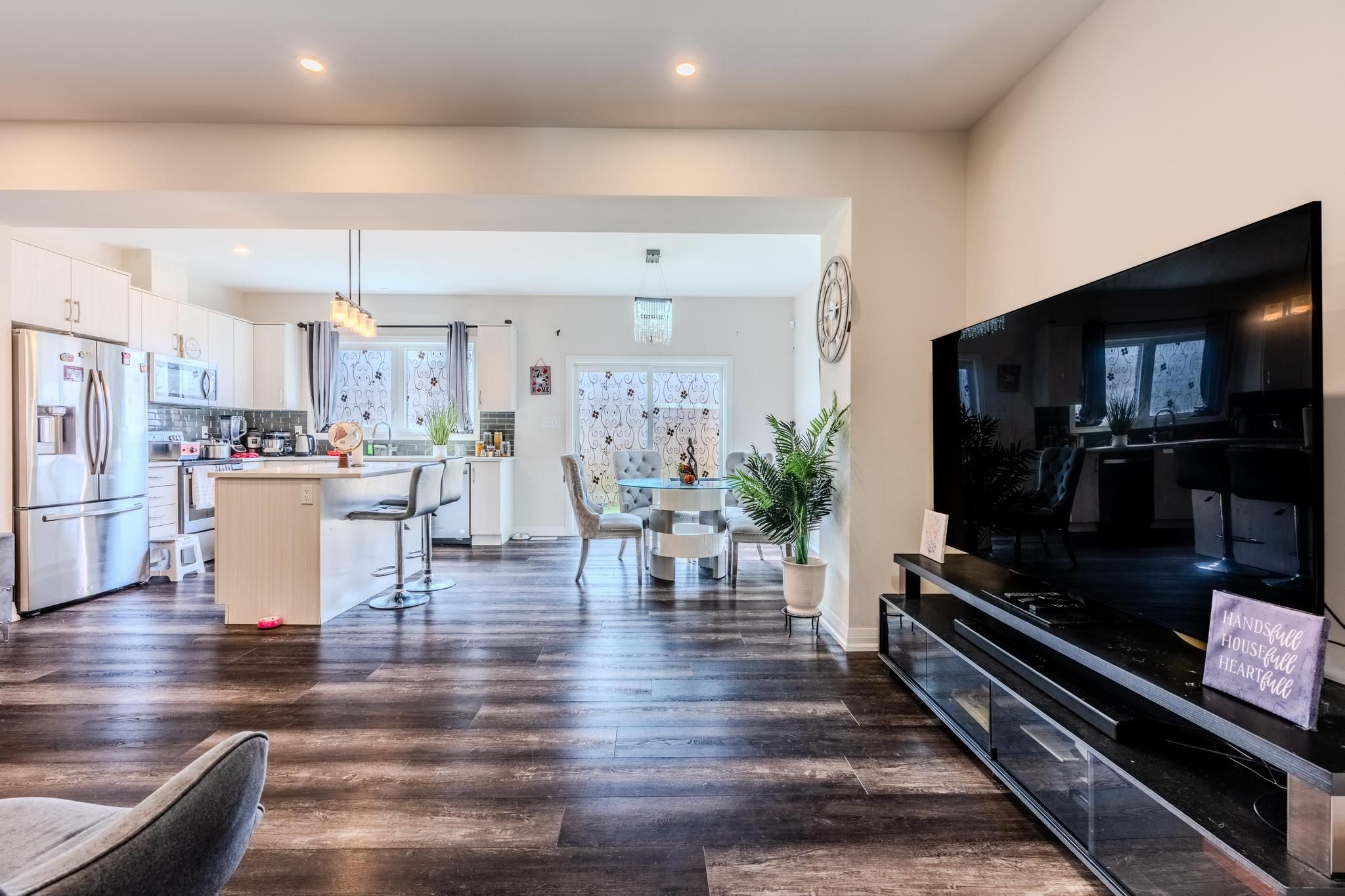 • Bright open-concept design blends kitchen, dining, and living areas seamlessly.