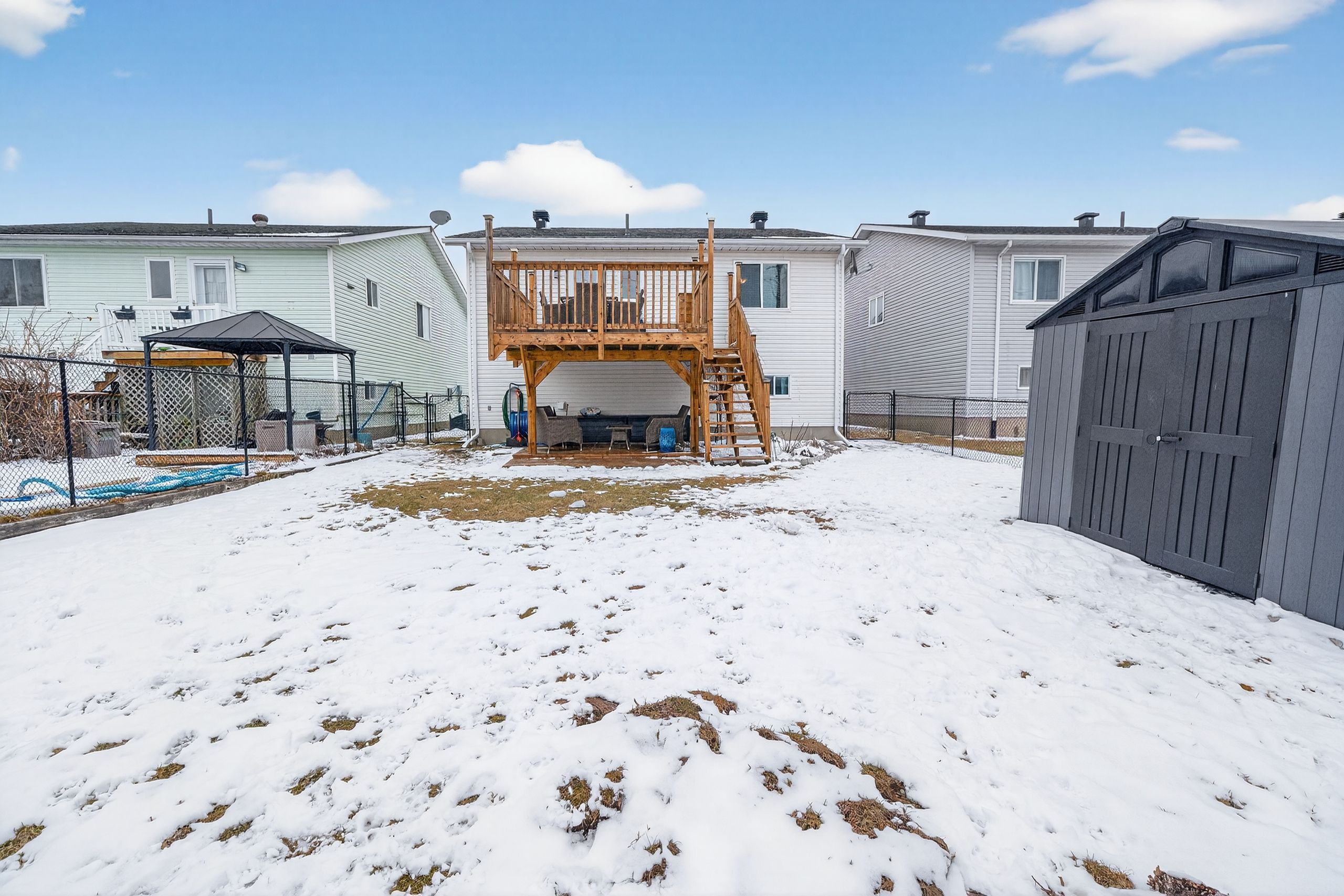 Welcome to 78 merrick street, a move-in ready detached, raised bungalow located in one of smiths falls' most sought-after streets. This home offers the perfect blend of style, layout, and location. It features an open-concept, unlike the original layout, that seamlessly connects the living, dining, and kitchen areas, creating an ideal space for both everyday living and entertaining. A charming front deck offers the perfect spot for morning coffee and reading or keeping an eye on the kids riding bikes and playing along the quiet, family-friendly street. The fully renovated kitchen (2020) showcases custom cabinetry, stainless appliances, included a gas stove, tiled backsplash, peninsula with stool seating and modern floating shelves, blending style with everyday functionality. Just off the kitchen, a back door leads to the west-facing deck (re-stained 2025)-perfect for evening bbqs and sunset views-while an additional lower deck expands the outdoor living space for relaxing or hosting guests. Newly added fence and shed(2025) add even more value. Bright and functional, the main level offers three bedrooms, including a primary suite with a convenient two-piece ensuite. An updated four-piece main bathroom is shared by the other 2 bedrooms. The sun-filled lower level features a large family room , fourth large bedroom, powder room, and a spacious laundry/utility room complete with built in storage cabinetry, and direct access to the single attached garage with additional storage. Numerous updates include roof (2021), windows (2021), furnace (2020), hot water tank(2019), which is owned, air conditioning (2019), balcony railing and wood (2024), and driveway paving with improved drainage (2024). You will love the convince of the nearby via rail station great for heading to toronto for a blue jay game or ottawa for a nhl or red black game! Ideally located within walking distance to schools, parks, grocery stores, and everyday amenities!