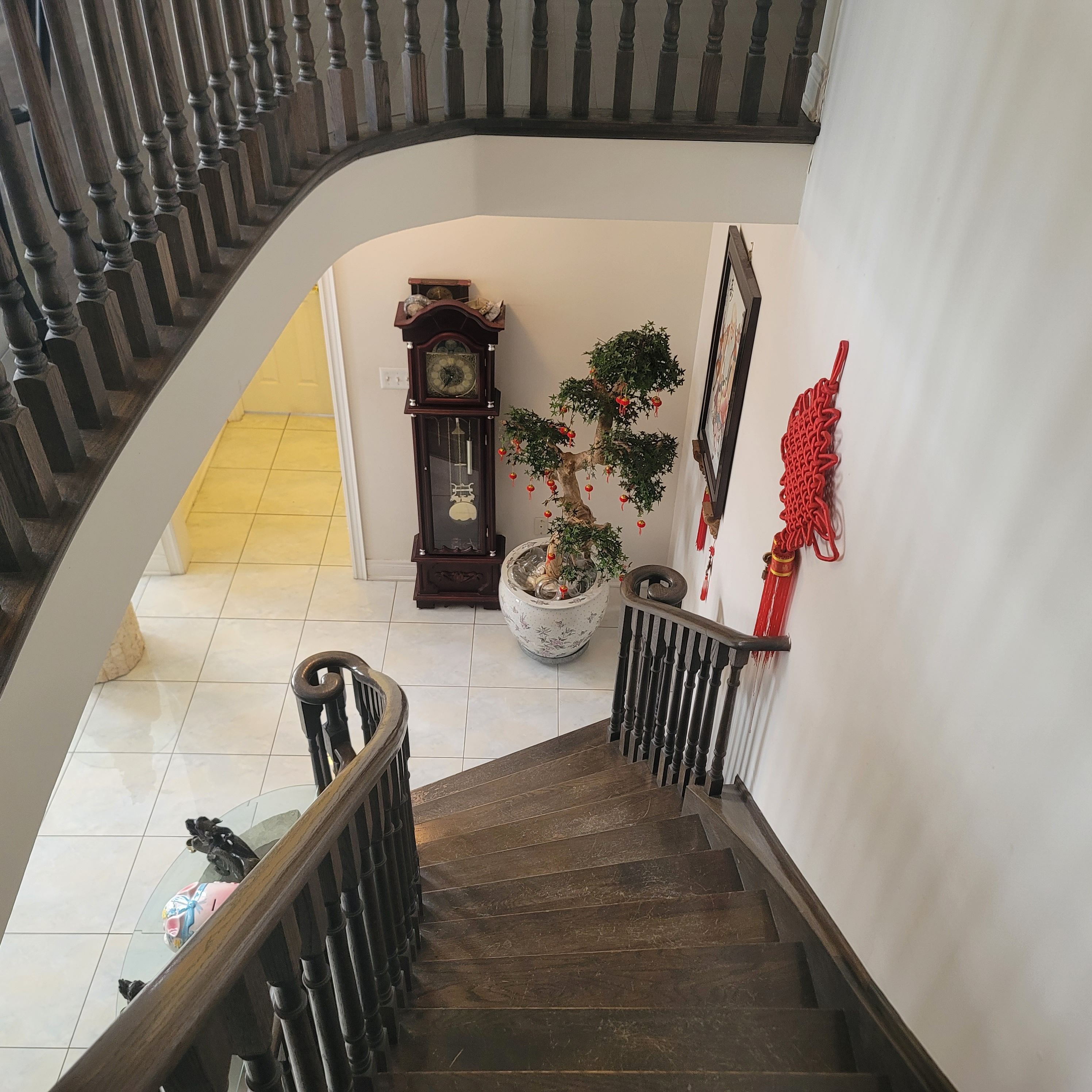 Amazing home in prestigious vellore village. First time on the market. Original owner. Corner house with upgraded decorative bricks, favorable-feng shui. Grand living room open to above with lots of windows. Great for entertaining. Open concept, 9 ft ceiling. Library with double french door. Main floor laundry room with access to double car garage and separate side entrance. 2 service stairways leading to the basement. Long driveway with 6 parking spaces. Spacious backyard with lots of room for summer entertainment.