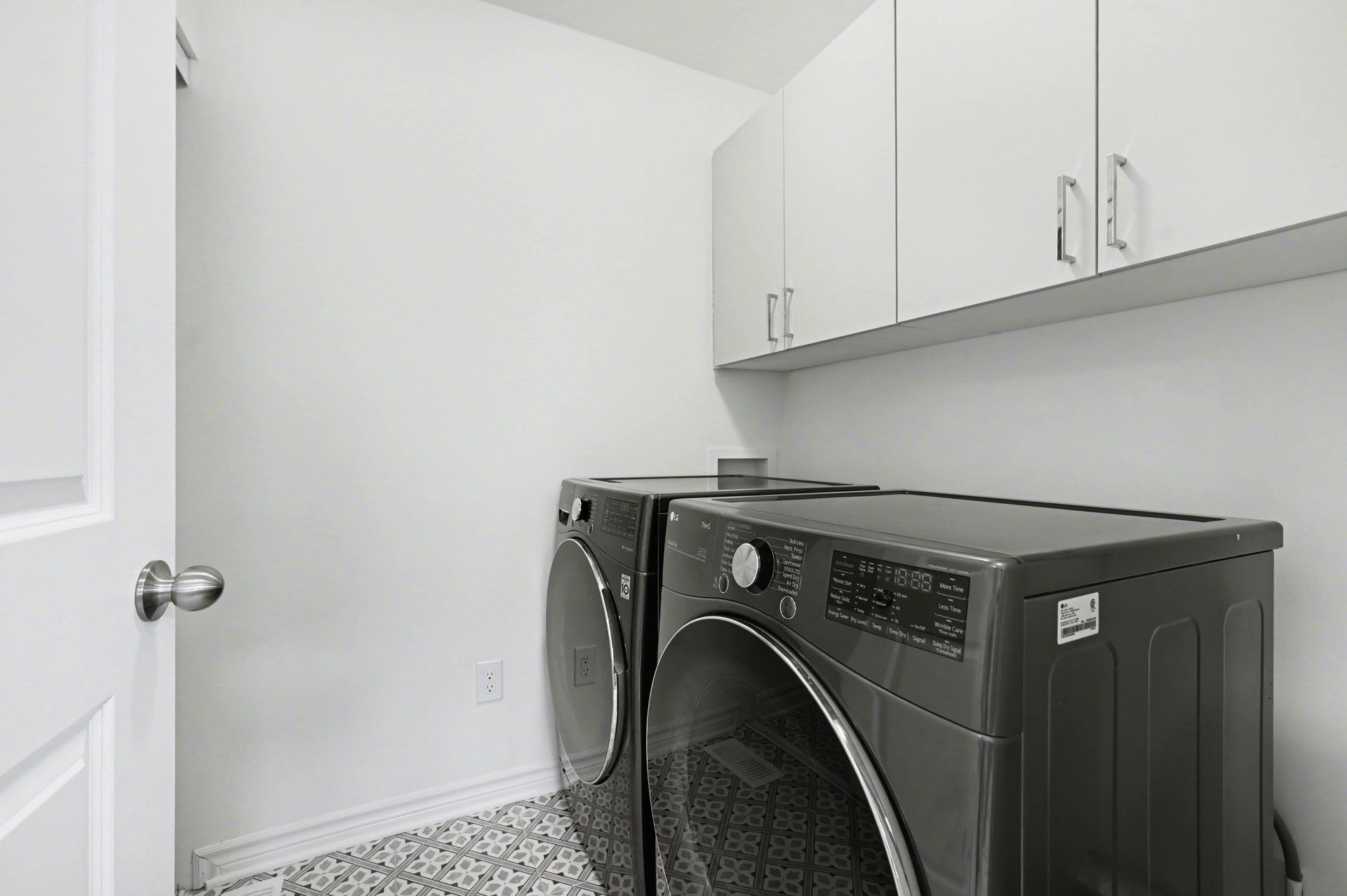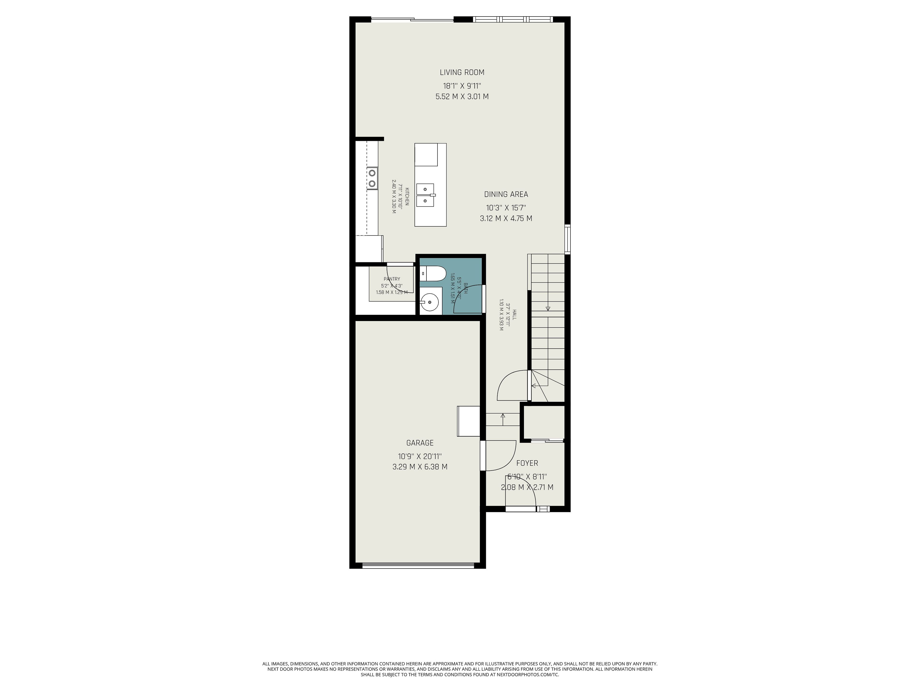 • Spacious kitchen with quartz countertops and stainless steel appliances.