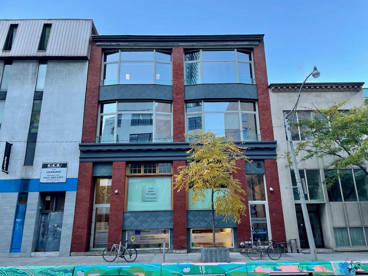 Gorgeous brick & beam character building one city block east of yonge st and within a short 400m walk of the ttc queen and king subway stations. Private bathroom & private kitchenette; with a variety of permitted commercial uses, the property is ideal for health/ exercise, retail services, medical practices, professional service firms, ict, creative, etc.; **extras** security cameras. Sprinklers; gross monthly rent $4,356 +hst; plus proportionate share of utilities; 100 transit score and 98 walk score. Combine with adjacent unit for 2,778 sf total space.