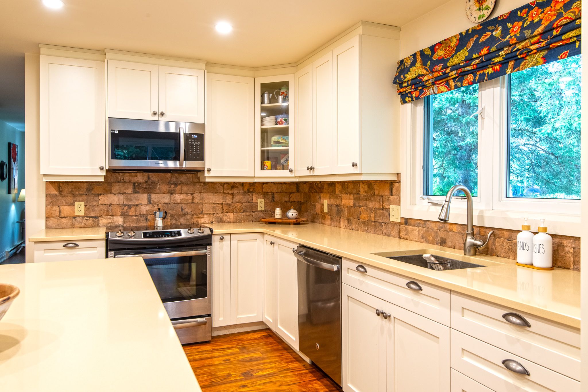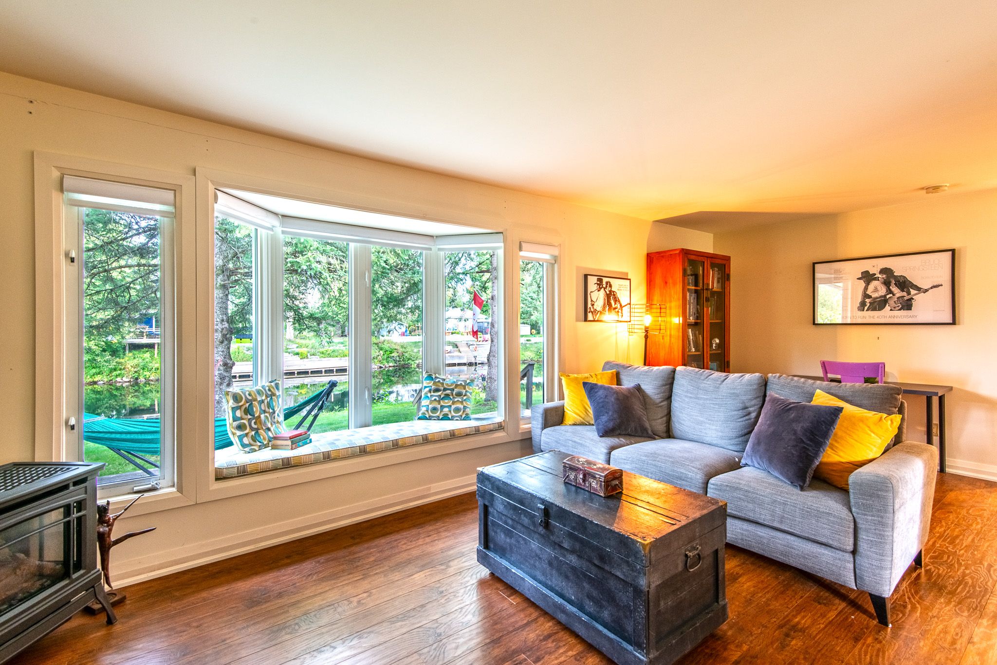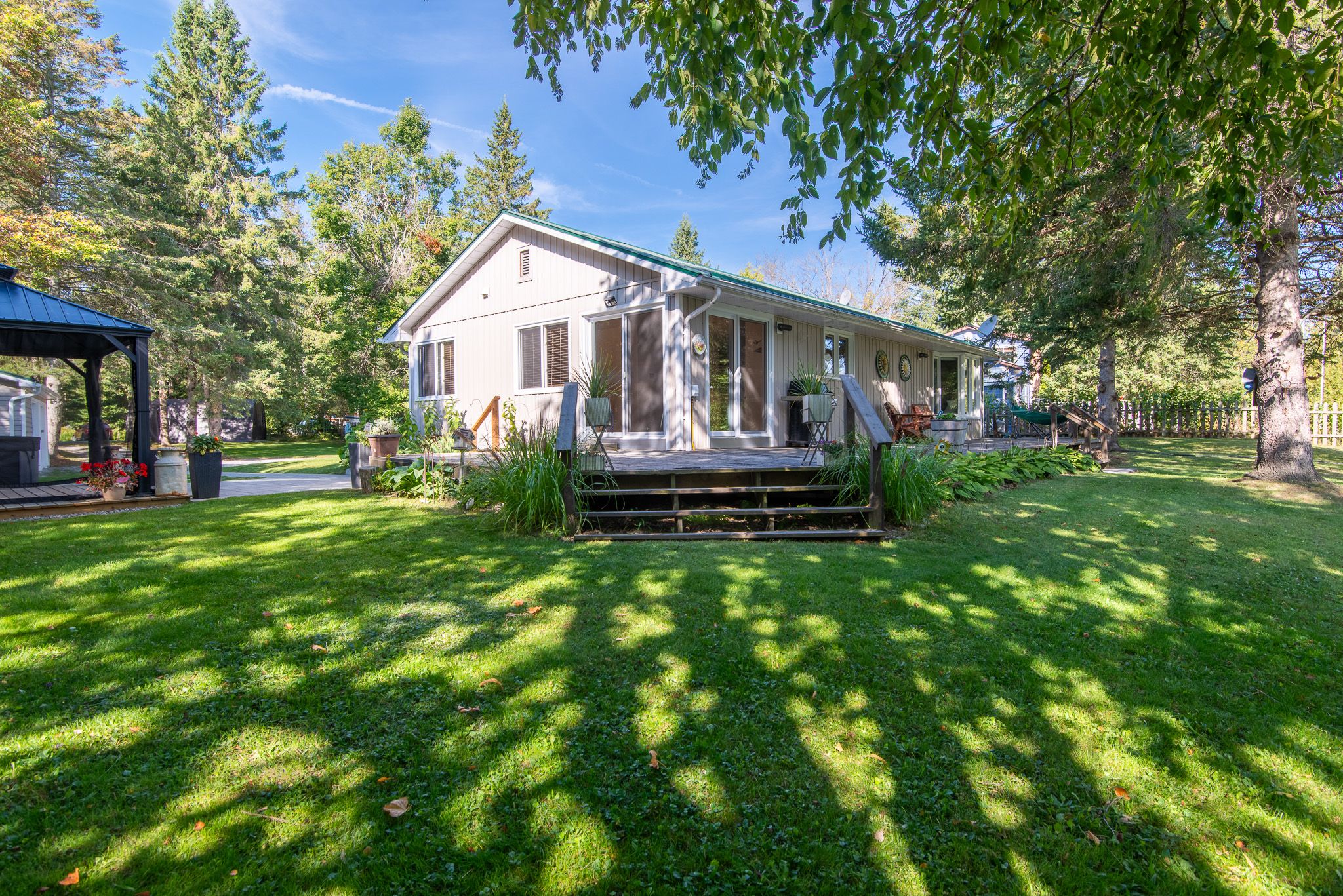 Move-in ready, year-round waterfront home on burnt river. This beautifully maintained and thoughtfully updated 2-bedroom (can be converted back to 3-bedroom if desired), 1-bath home offers the perfect blend of comfort and waterfront living. Set on a private treed lot with 121 ft of frontage on burnt river, its an ideal retreat for swimming, kayaking, or enjoying a scenic boat ride to cameron lake. Inside, you'll find a newer kitchen with quartz counters and stainless steel appliances, a bright living space with a propane fireplace (2024), and a primary bedroom with a walkout to the yard and wall-to-wall closet. The bathroom includes a convenient laundry closet, and a mini-split heat pump a/c unit ensures year-round comfort w/ backup baseboard heat. The property features a double car garage (23' x 19') with new doors and openers (2024), upgraded electrical and lighting (2023), plus two storage sheds and a shelterlogic tent for all your gear. Outdoor upgrades include an interlock patio walkway (2024), metal gazebo (2023), a convenient propane hookup for the bbq, and a professionally graded driveway with french drainage system (2023). A steel roof and septic tank riser lids (2023) add peace of mind for years to come. Enjoy clean, deep water off the dock, perfect for swimming on summer days. Located just minutes from fenelon falls, coboconk, and highway 35, this property combines privacy, convenience, and a true waterfront lifestyle.