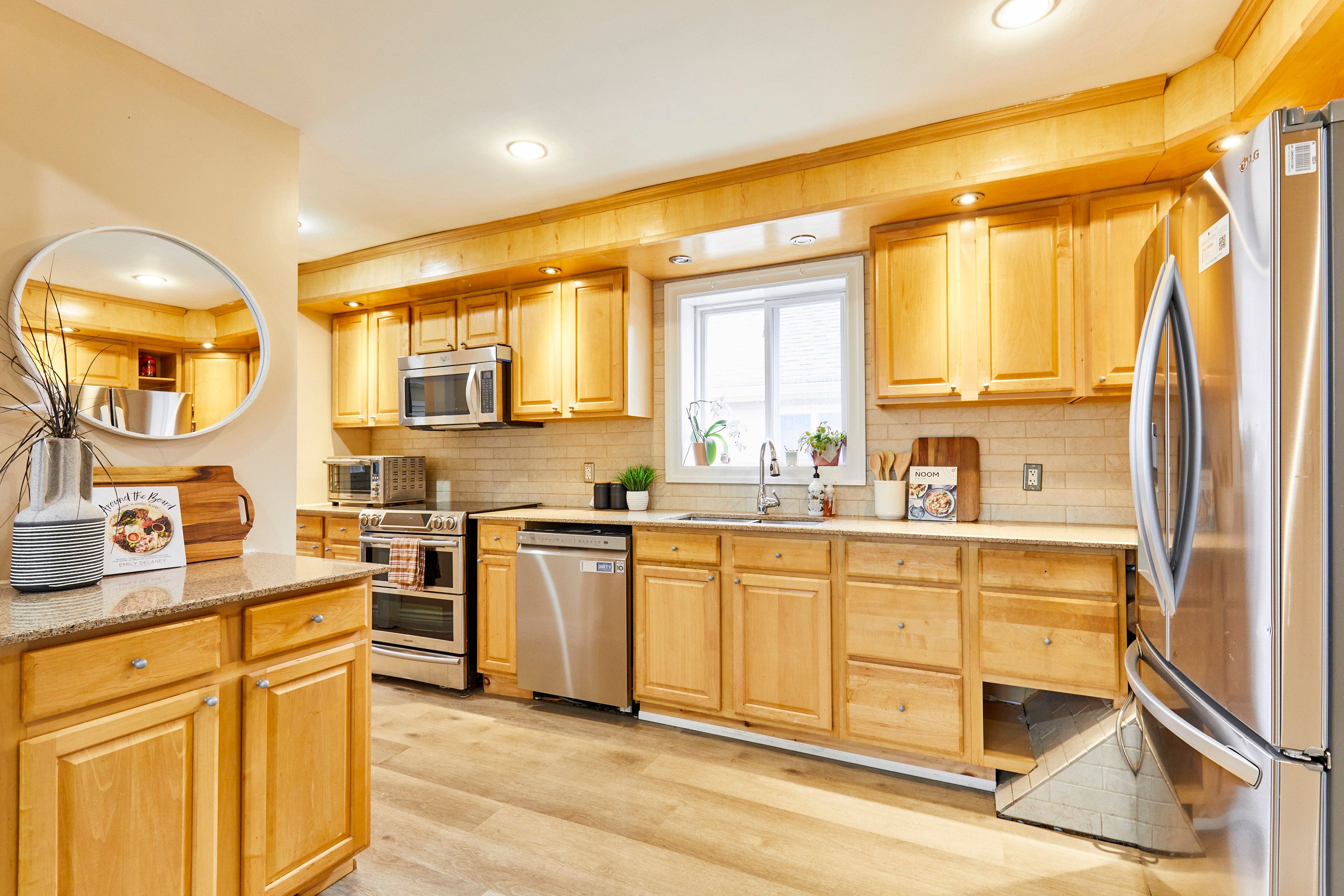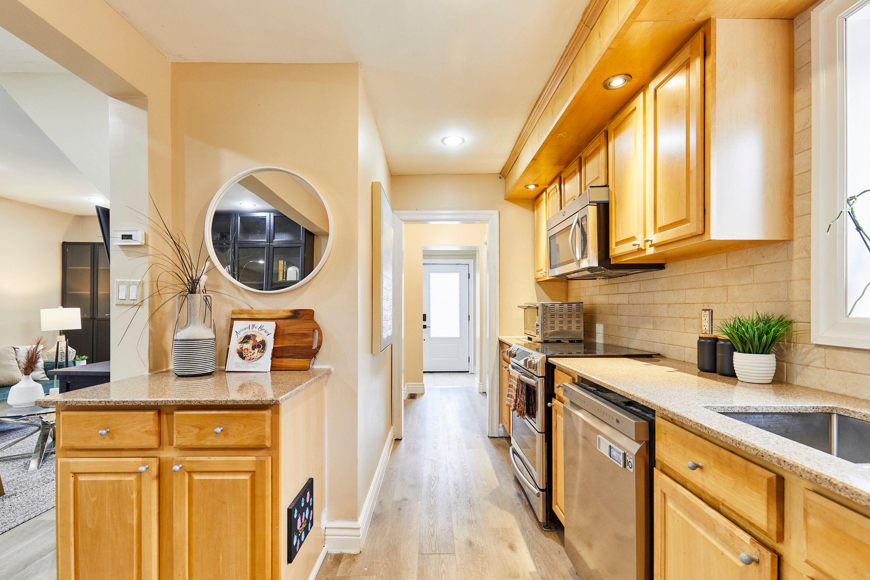 Set on a fully fenced 28 x 117 ft corner lot in the heart of oakridge, this upgraded detached home delivers comfort, convenience, and serious upside - complete with a fully self-contained in-law suite for built-in income potential in a prime, transit-connected setting. The main floor is bright, open, and functional, featuring an open-concept living and dining area that flows seamlessly into a sun-filled kitchen-ideal for both everyday living and entertaining. Two bedrooms and a full bath complete the level, offering a practical layout. Upstairs, the third-floor attic loft is a standout feature - anchored by a skylight and generous footprint, it's the perfect flex space for an additional bedroom, work-from-home setup, or creative studio. Downstairs, the separate entrance leads to a fully equipped basement suite with its own living room, full kitchen, bedroom, and additional bath - ready to generate income, accommodate extended family, or provide a private guest space from day one. Outside, a large two-level deck (2025) overlooks the fully fenced backyard, creating a private outdoor retreat with plenty of room to relax or entertain. The extensive list of upgrades adds real peace of mind, including a metal roof (2018), updated stucco exterior (2018), newer concrete driveway (2025), and walkways (2022). Parking is a major advantage here, with a private drive, attached garage, and space for up to four vehicles-an increasingly rare find in the city. And then there's the location. Just steps to the subway and minutes to the danforth, you're surrounded by shops, restaurants, parks, schools, and everyday essentials, with quick access across the city for an easy commute. This is a neighbourhood on the rise - highly connected, increasingly in demand, and full of long-term potential. A home that offers more than just space - it offers flexibility, opportunity, and a place to grow into for years to come.