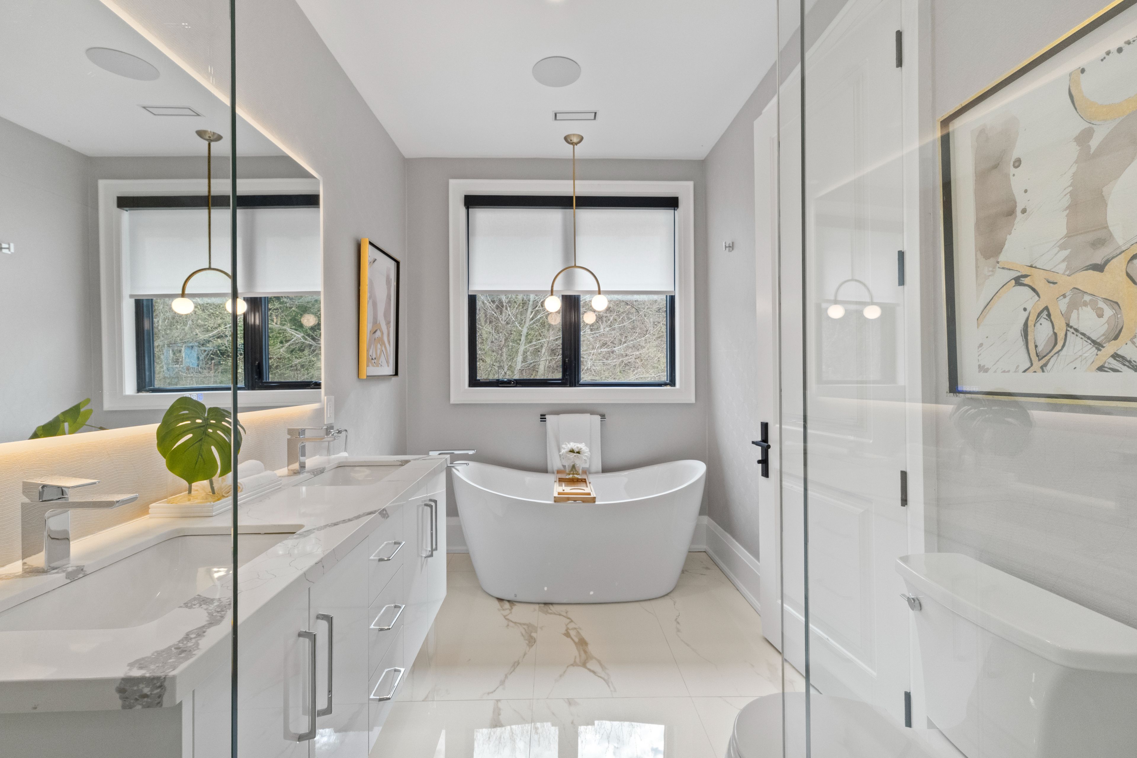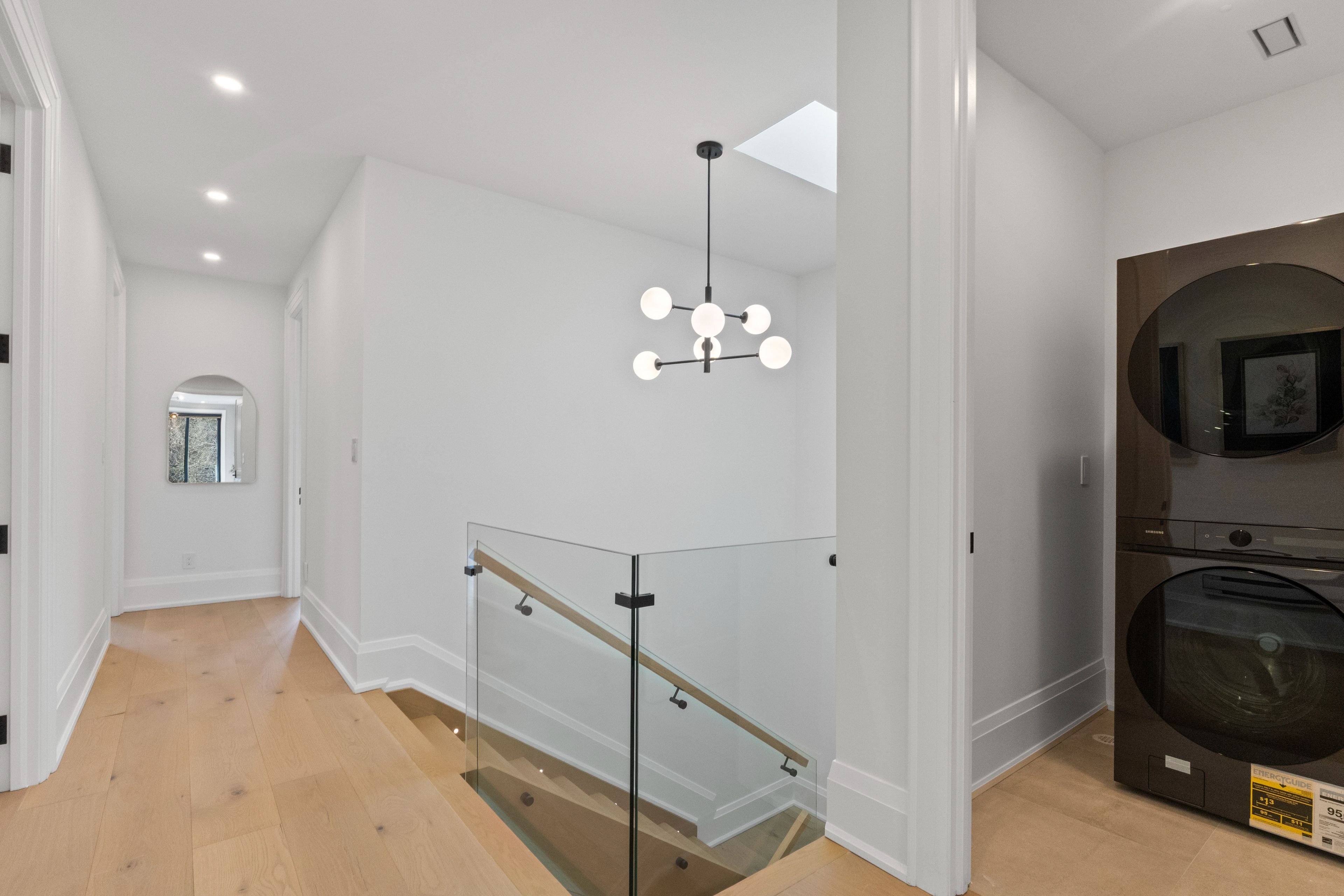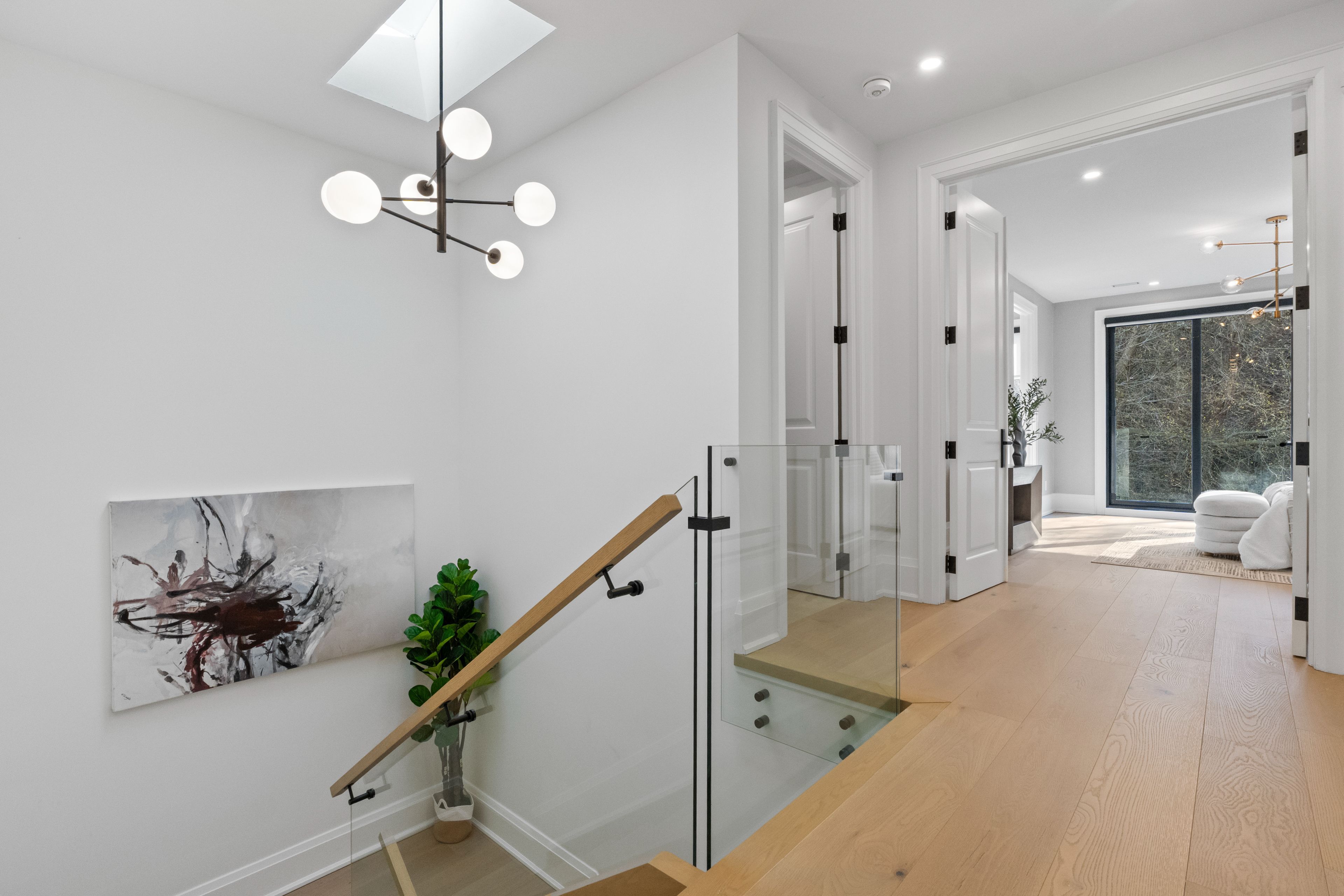 Set within one of toronto's most prestigious west-end enclaves, 78 south kingsway presents a striking custom residence backing onto the lush surroundings of the humber river. This 4+1 bedroom, 5-bathroom home spans approximately 3,700 sf and embodies modern sophistication with timeless appeal. The interior reveals itself with intention. Sunlight filters through a dramatic overhead skylight, illuminating wide-plank engineered oak floors and a sculptural oak staircase framed by glass. Every element has been carefully considered, from tailored millwork to integrated technology, including built-in speakers powered by a sonos system, smart lighting, and automated blinds. Prodigious principal rooms are designed for both comfort and entertaining, featuring expansive windows and a statement chef's kitchen that anchors the main level. The kitchen features a quartz waterfall island at centre stage, complemented by a suite of thermador appliances, and opens effortlessly onto a raised deck, creating a seamless transition for indoor and outdoor entertaining. The upper level is thoughtfully composed with four generously scaled bedrooms, each with access to ensuite baths with electric heated floors. The primary suite offers a quiet retreat, complete with a private balcony, dual walk-in closets, and a spa-inspired ensuite with a freestanding tub, glass shower, and double vanity. A dedicated laundry room adds practical convenience. Below, the walk-up lower level introduces a flexible extension of the home, featuring a spacious recreation area, wet bar, fifth bedroom, and a well-appointed bath, suited for guests, extended family, or income-generating potential. Outdoors, the landscaped grounds unfold into a private backdrop with no rear neighbours. A custom deck with integrated lighting and audio enhances the setting, offering a peaceful escape framed by nature. Positioned moments from top-rated schools, bloor west village, high park, and the humber river recreational trail.