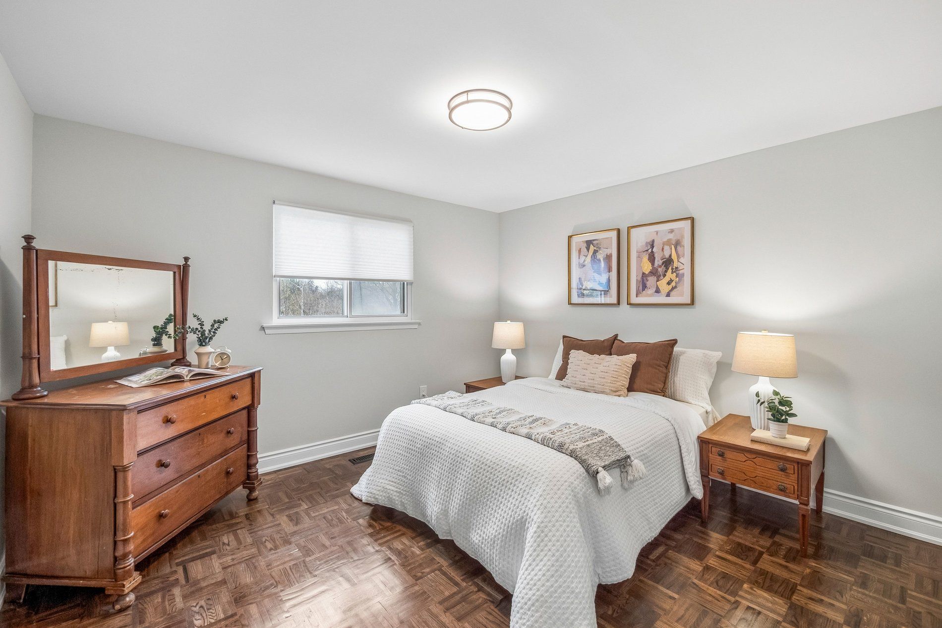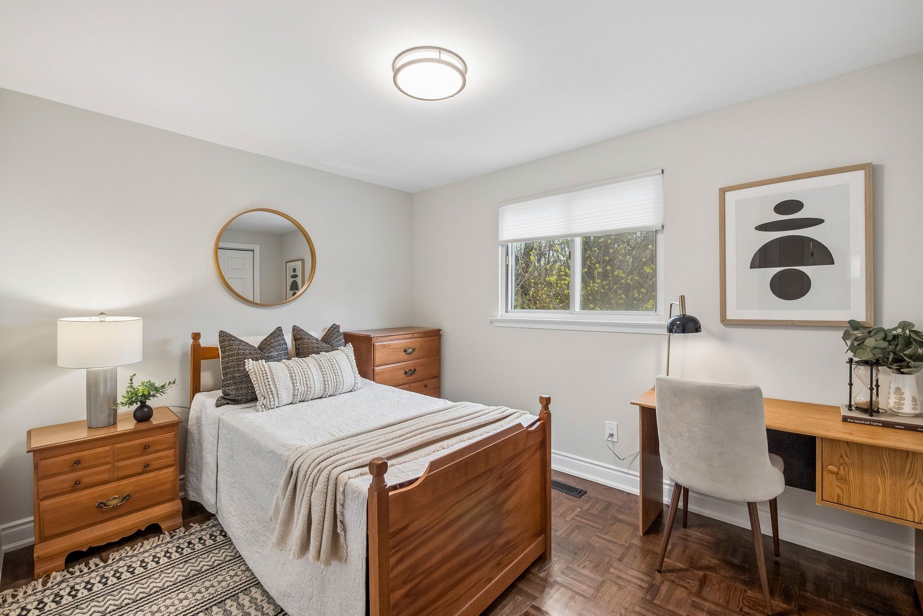 • Four spacious bedrooms with natural light and warm hardwood floors.