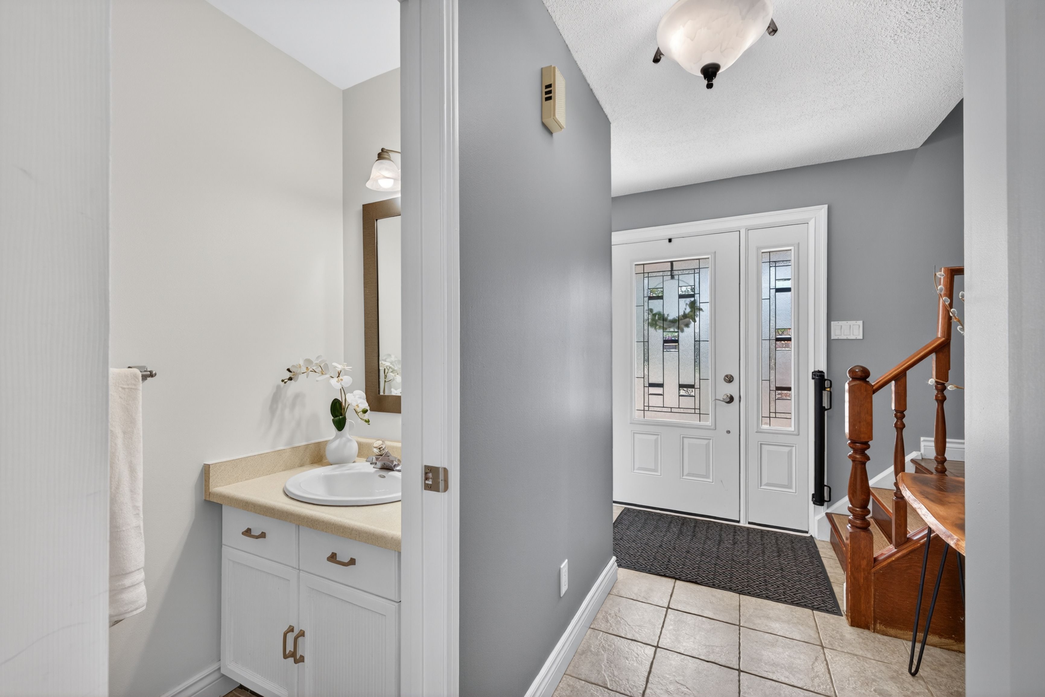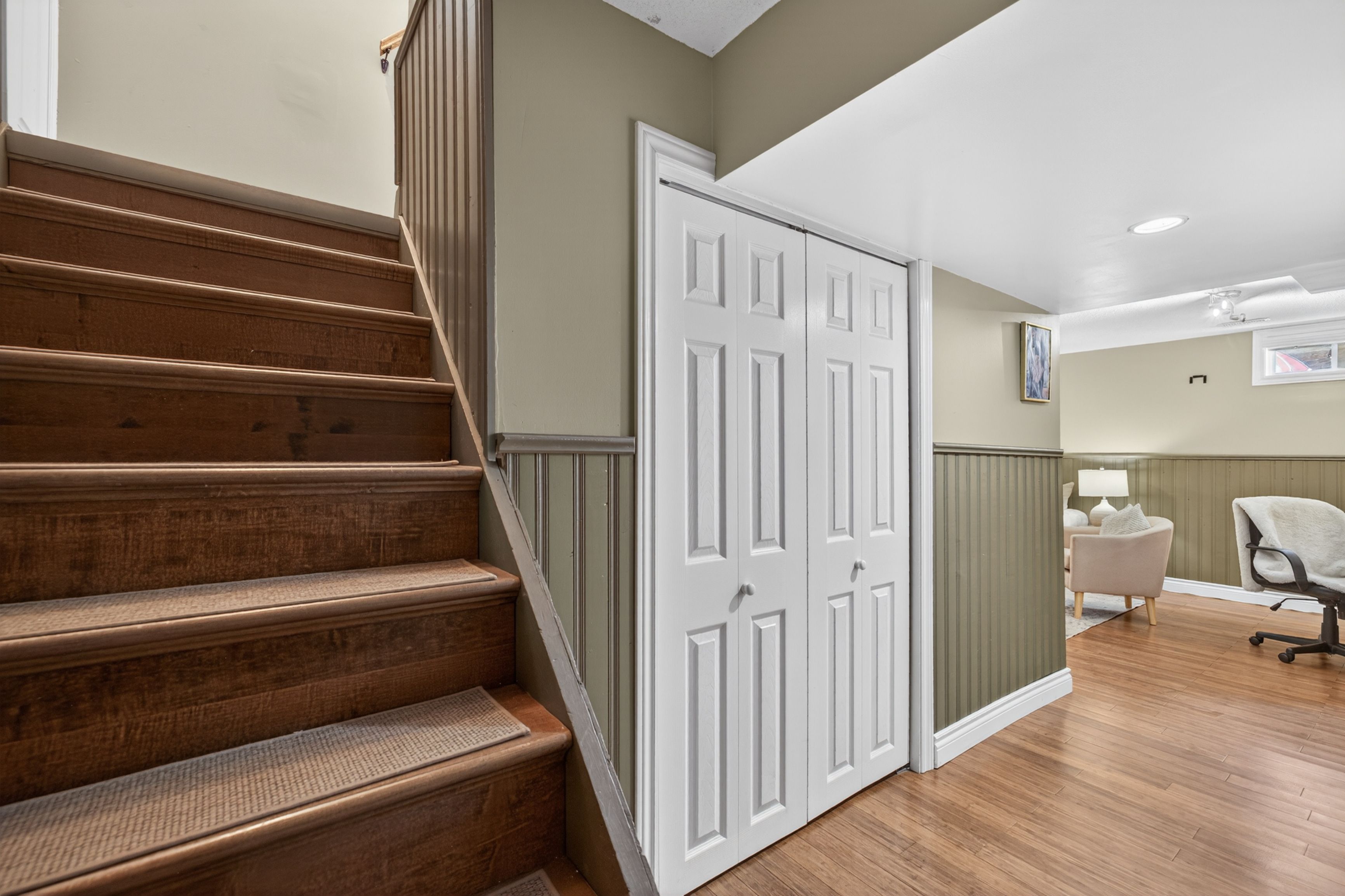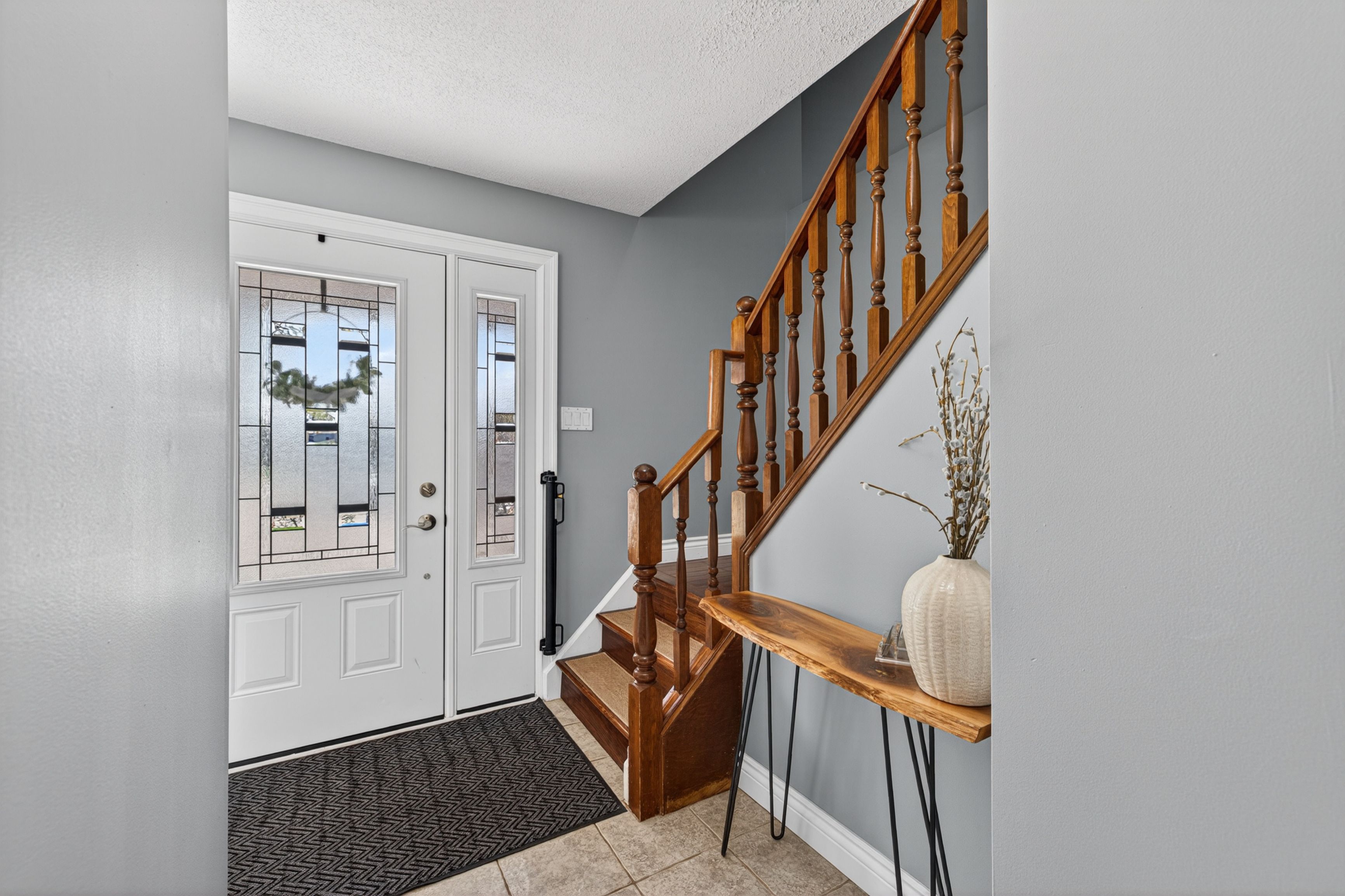 North east london presents 78 sussex place, a beautifully maintained turnkey two storey family home tucked away on a quiet, tree lined cul de sac surrounded by mature trees. The main floor is the heart of the home, featuring rich hardwood flooring, a bright living room with bay window, formal dining with patio doors to the backyard, a convenient 2 piece bath, and a refreshed kitchen with ample cabinetry, a charming coffee bar, and generous storage. The upper level offers an expansive primary bedroom, two great sized bedrooms, and a 4 piece bath. The lower level includes a cozy rec room with gas fireplace, finished laundry room, 3 piece bath, plus utility and storage space. Step outside to a spacious backyard complete with deck, patio, storage shed, and a semi attached single garage. A fantastic place to raise a family, ideally located close to schools, parks, trails, transit, dog parks, tin cup mini putt and driving range, restaurants, shopping, and more. Notable updates include roof 2021, a/c 2024, washer and dryer 2025, owned hwt 2017, and kitchen updates including cabinets, backsplash, counters, and sink completed in 2024 to 2025.
