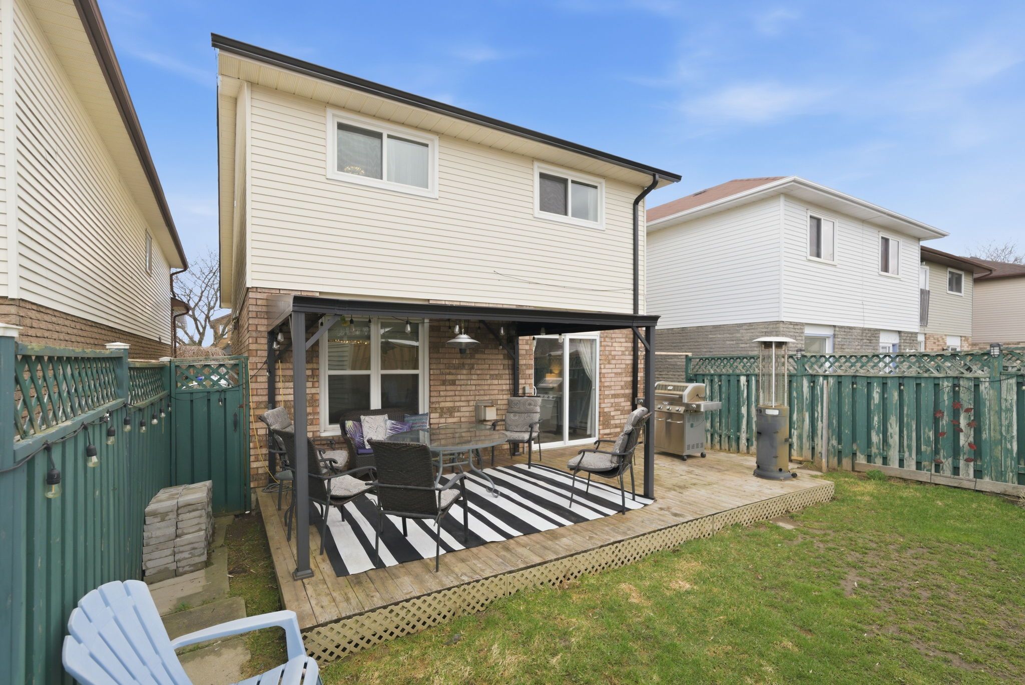 • Fully fenced backyard with a gazebo and storage shed for leisure activities.