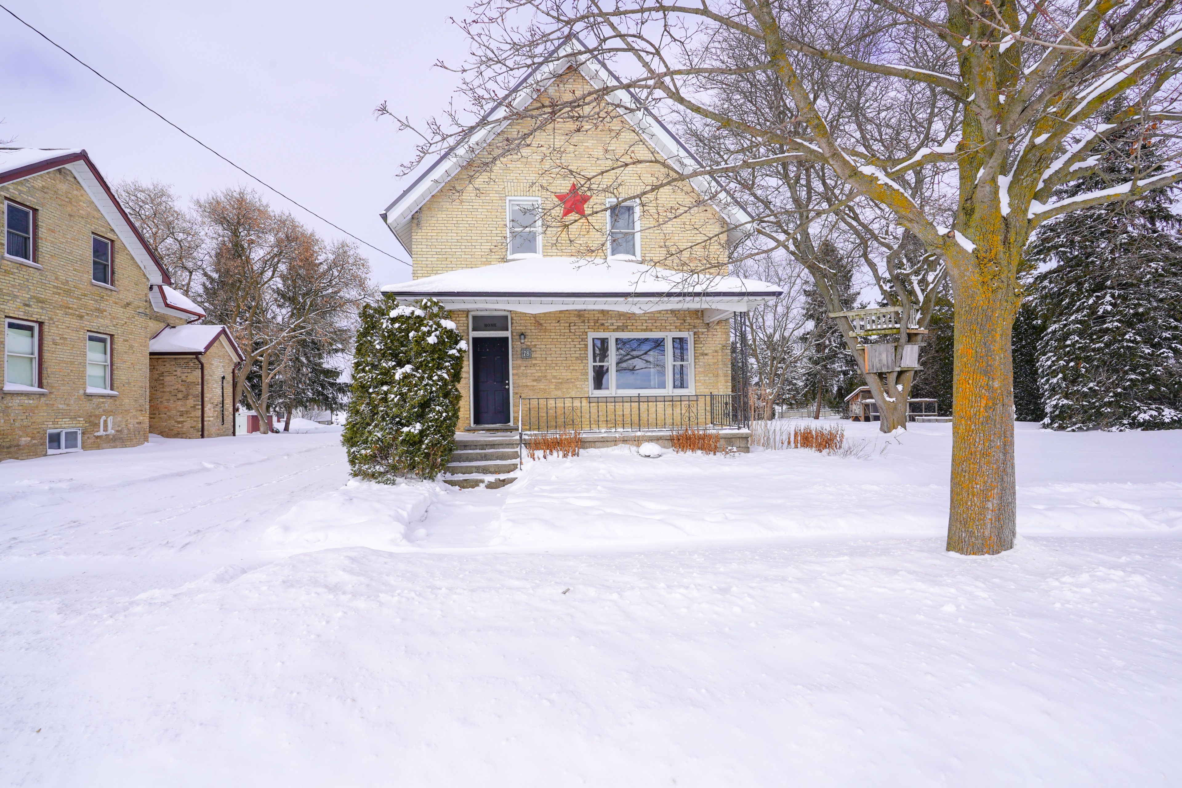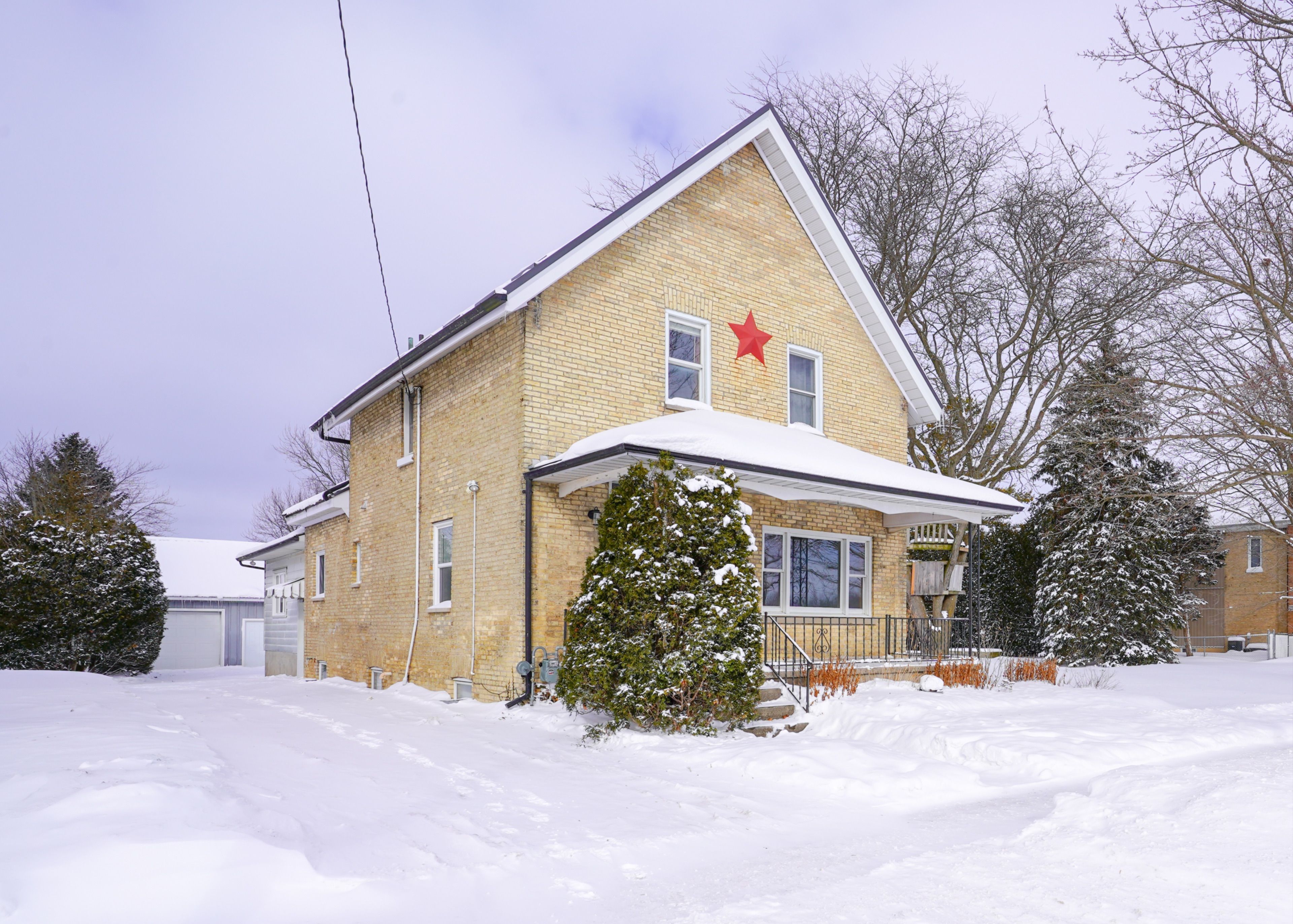 Welcome to this charming and substantial century brick home located in the heart of crediton. This well-maintained property offers a wonderful blend of character, space, and modern updates - ideal for families looking for room to grow and enjoy. The home features four bedrooms and two bathrooms, with a thoughtfully designed layout that balances charm and functionality. A spacious and bright family room, complete with a cozy gas fireplace and walkout to a large deck - making it the perfect space for relaxing or entertaining. The mature, tree-lined yard provides privacy and a peaceful setting for outdoor enjoyment. On the main floor, you'll find a flexible bedroom, a generous kitchen with a large island, a spacious dining area, and an oversized living room that easily accommodates both comfortable seating and a home office setup. Upstairs offers three additional bedrooms and a full bathroom with dual vanities, well-suited for busy households. Recent updates include a steel roof on both the home and the detached garage, along with a newer garage built in 2020 (approximately 30' x 20'). From the covered front porch to the expansive rear deck, this home offers inviting outdoor spaces and timeless curb appeal. With its classic brick exterior, functional layout, and valuable updates, this property is a standout opportunity in a welcoming community. Book your private showing today!