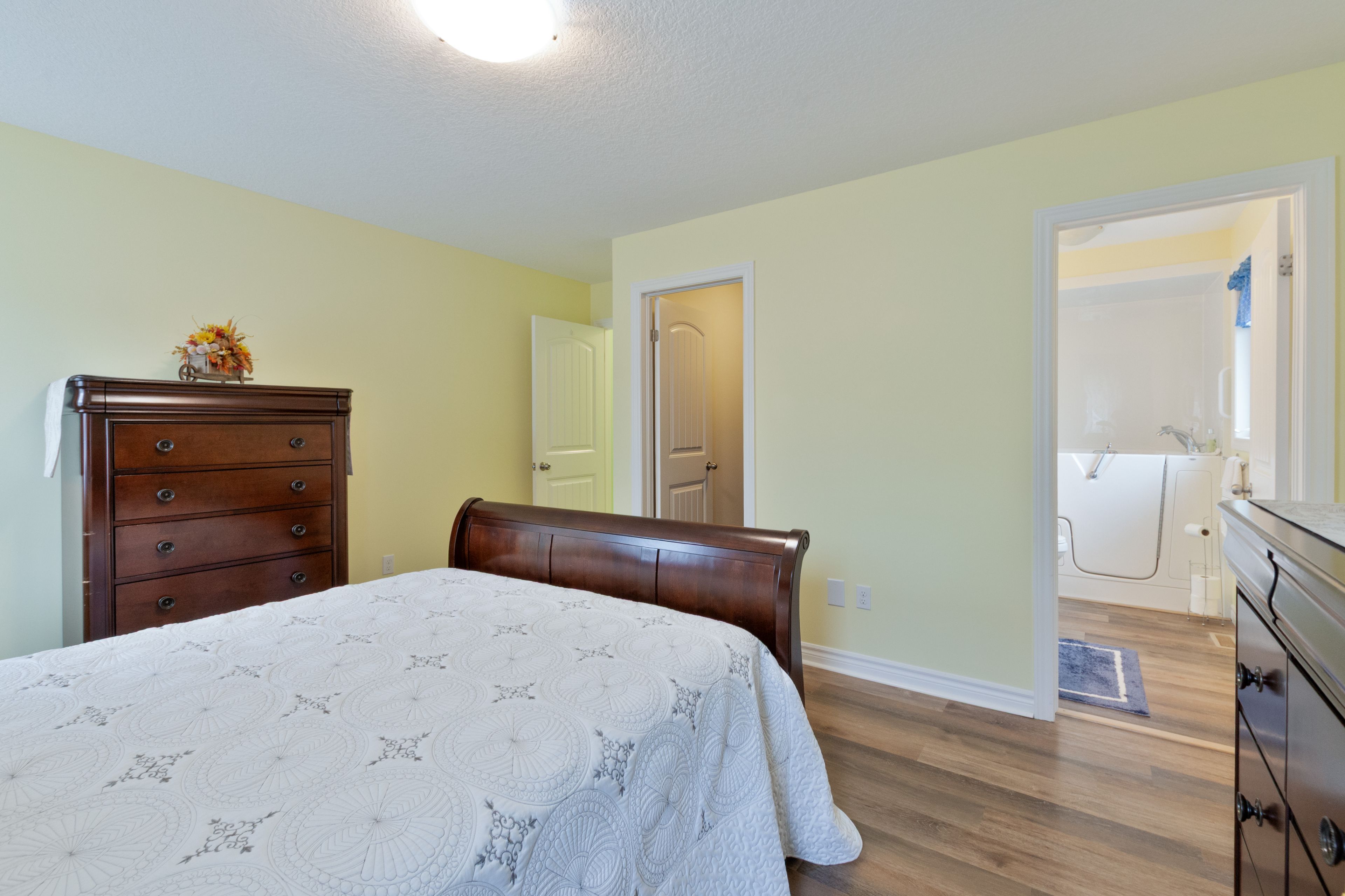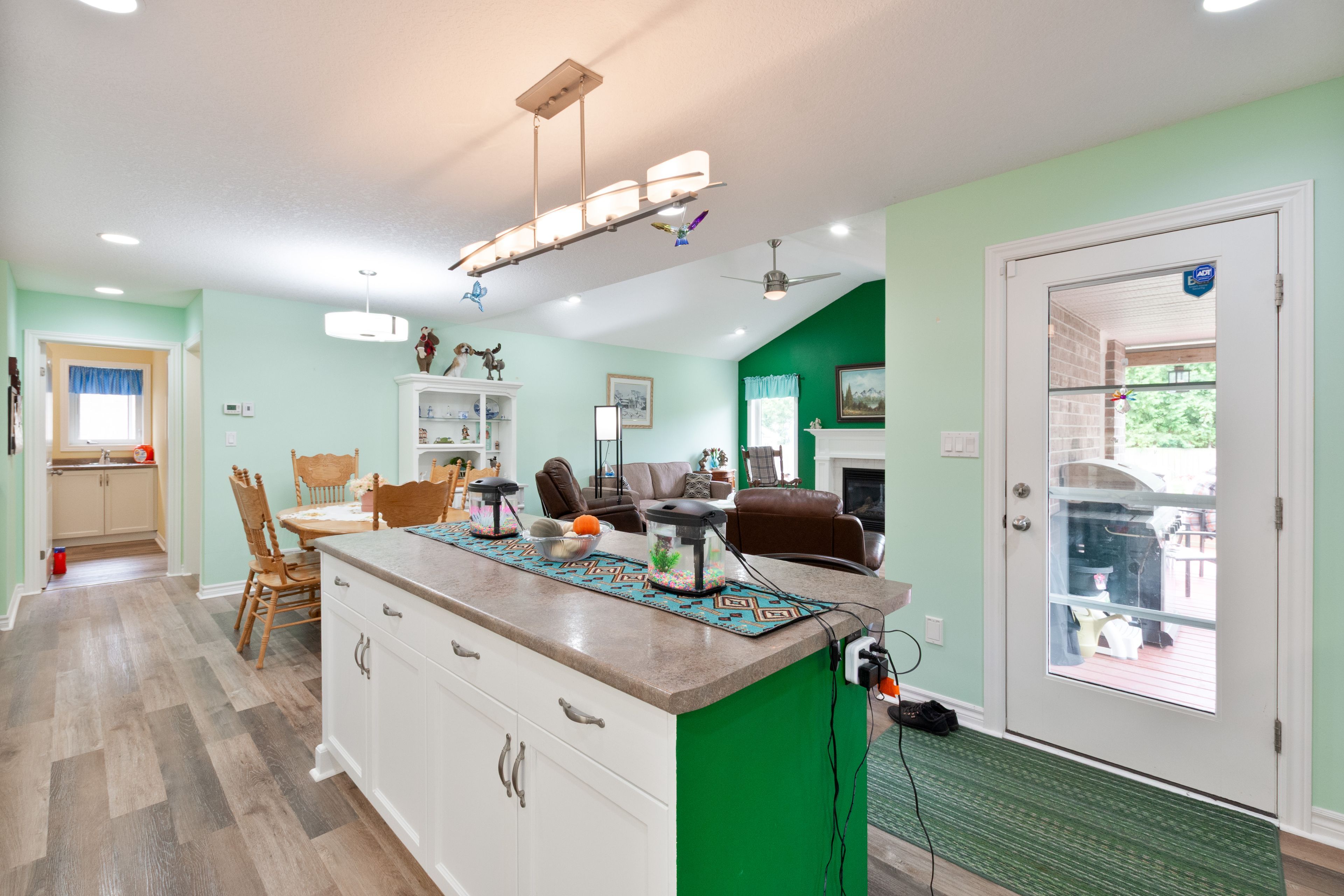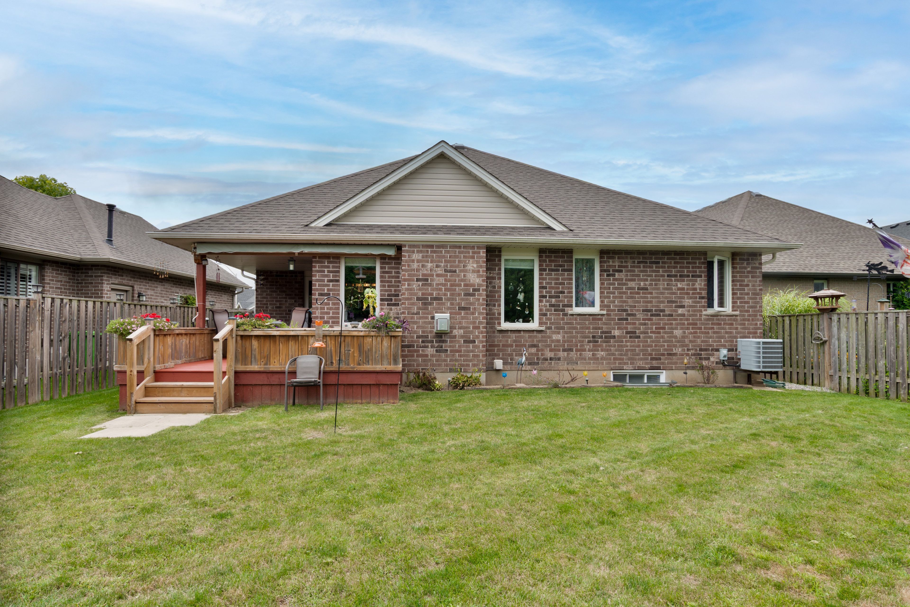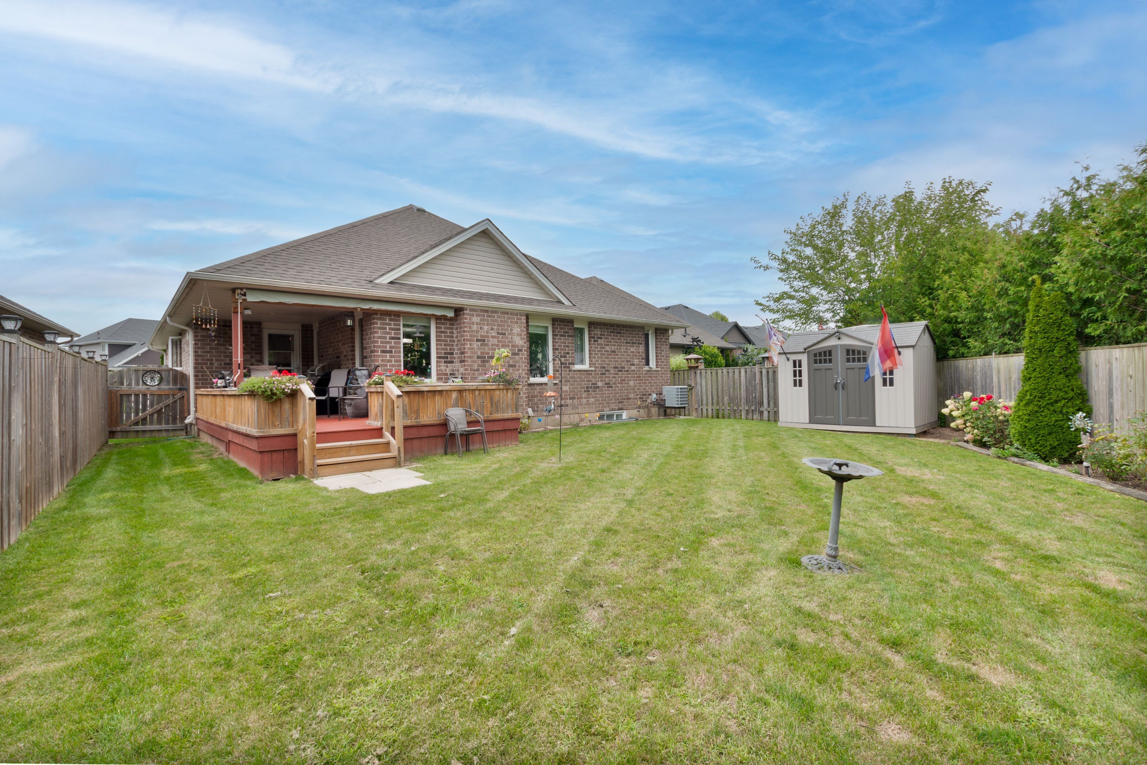 Welcome to this wonderful 3 bedroom, 3 full bathroom bungalow in the north end of st. Thomas. This home has a private double wide driveway with an attached double car garage. Walking into the home from the covered porch is the wide foyer with coat closet and entrance to the garage. Off the foyer through the double wide doors is a bedroom. Close to the bedroom is a 4 pc bath, convenient for guests. Off to the open concept kitchen is a space for the dining table. The kitchen has an island, lots of counter space with tiled backsplash as well as an over the range microwave and dishwasher. The living room features a vaulted ceiling and gas fireplace. Newer flooring throughout the main floor. A door off the kitchen leads to a partially covered deck, great for the bbq which includes a gas line. The deck then extends to the private fully fenced yard that includes a shed. The primary bedroom which is big enough for a king sized bed has a walk-in closet and an ensuite bath with walk-in tub. Also on the main floor is a convenient laundry room with an extra sink. Going down to the full sized basement there is a professionally finished rec-room, bedroom and 4 pc bath. That just covers some of the lower level. There's lots of room to add another bedroom, office or gym. Other features of the home include central vac, a sump pump, fresh paint throughout and stained deck. The location is close to 1 password park and provides easy access to london and the 401. Have a look today!