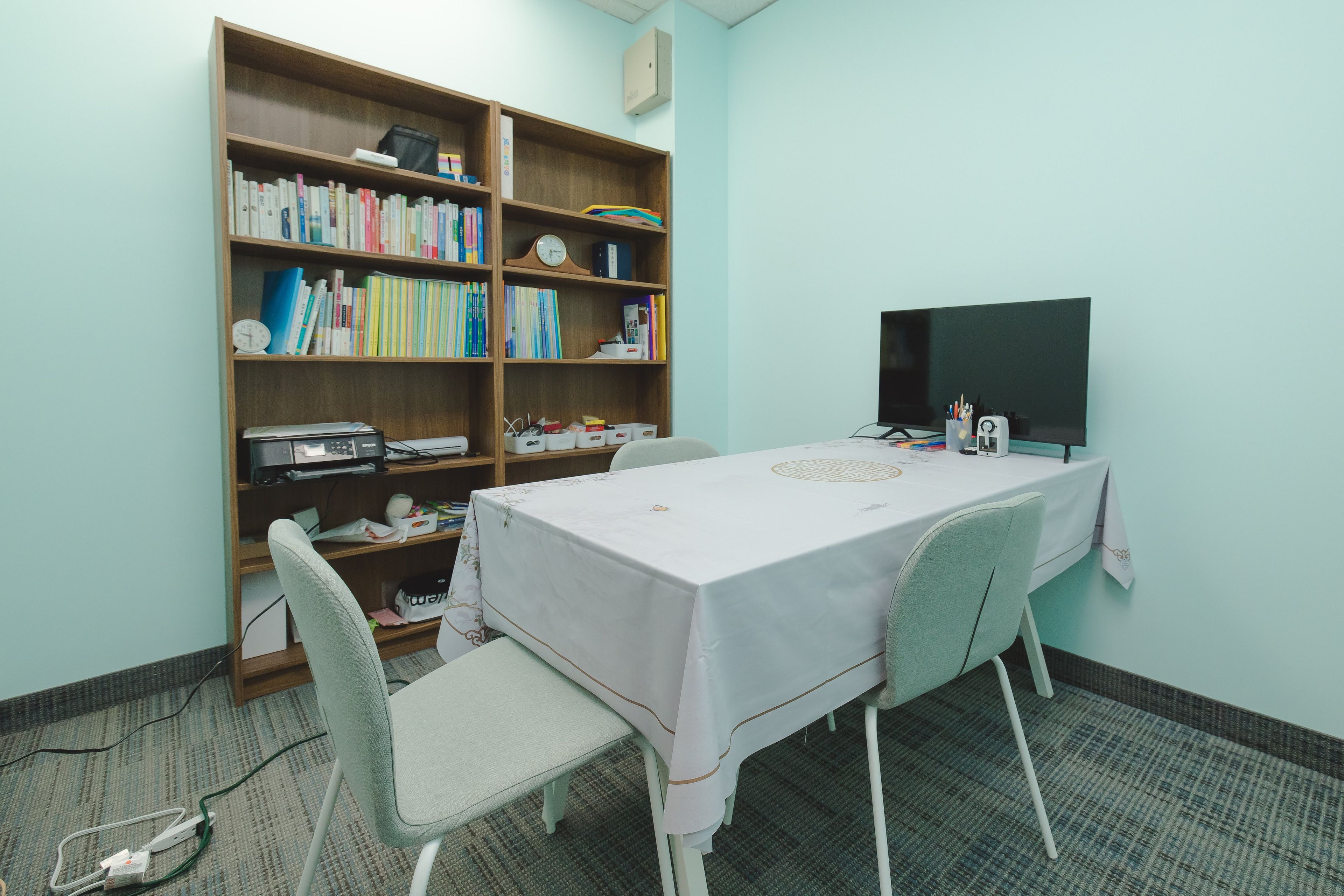 • Includes two private rooms and a spacious open area.