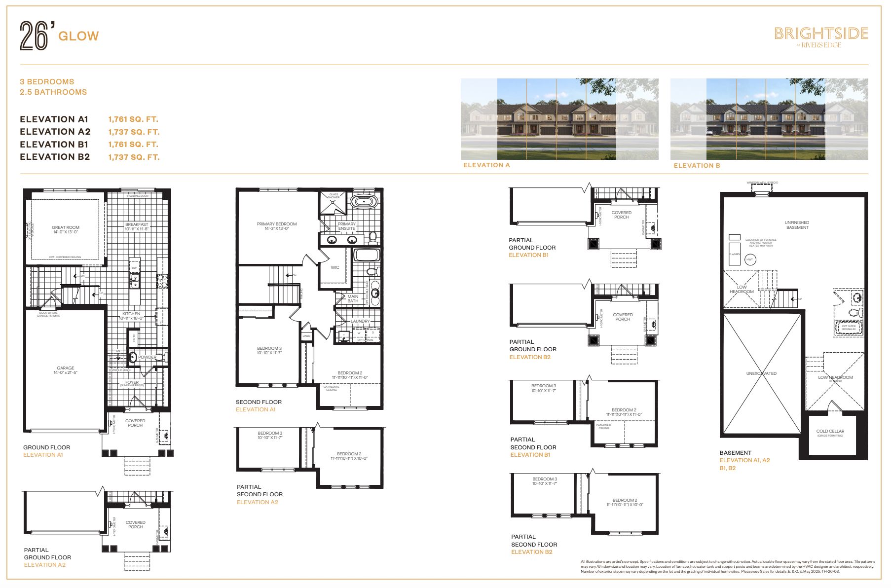 To be built (2027) - located in the brightside community with walking distance to wasaga beach public school and future high school. Welcome to the 'glow' townhouse with 1,761 sq ft, 3 bedrooms and 2. 5 bathrooms. Main floor is equipped with a 2pc bathroom, kitchen with island and pantry, dining area and separate living room. Upstairs, the second and third bedrooms share a 4pc bathroom, while the primary bedroom has a private 5pc ensuite and walk-in closet. Laundry is also located on the second floor. Sod and a paved driveway is included.