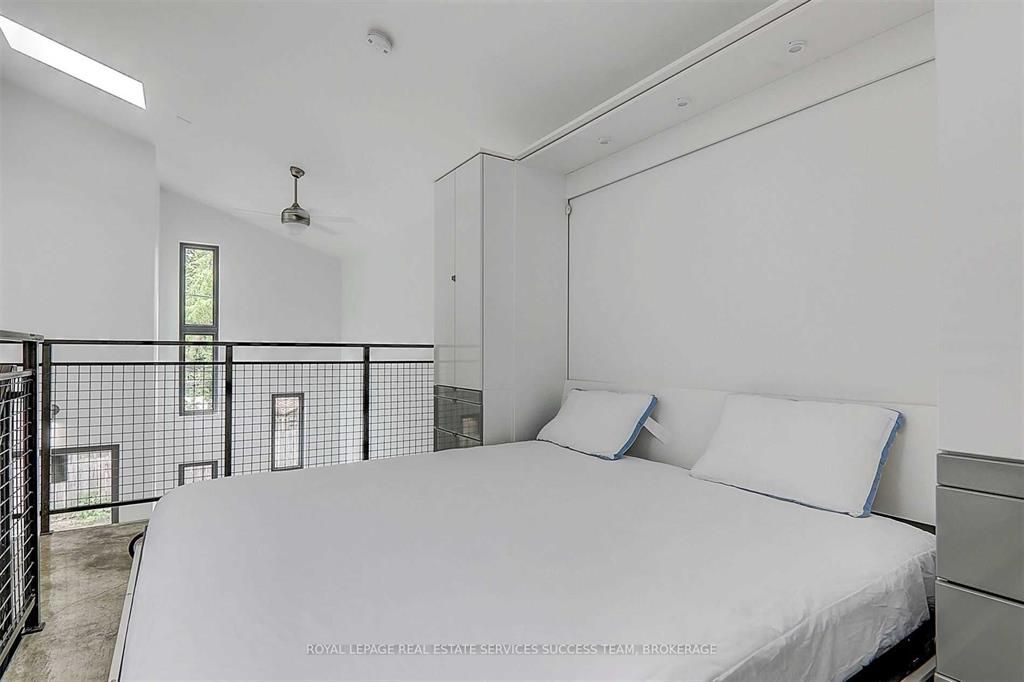 The epitome of simplicity, design and raw modernist living. Newly upgraded, every inch is intelligently crafted with efficiency and openness in mind. Airy 22 ft ceilings with 3 controlled skylights flood the space with natural light. The minimalist bedroom loft acts as the focal point. Superior warmth delivered by radiant floor heating and modern high-efficiency wood stove. Sight lines flow seamlessly from inside to the low maintenance japanese zen garden. Newly renovated with fisher and paykel appliances. Partially furnished house with sofa and murphy bed. **extras** the ideal freehold alternative to a condo, by esteemed architect andrew reeves. Year round easy parking on dead end street. Spa like bath w/ rain head shower.