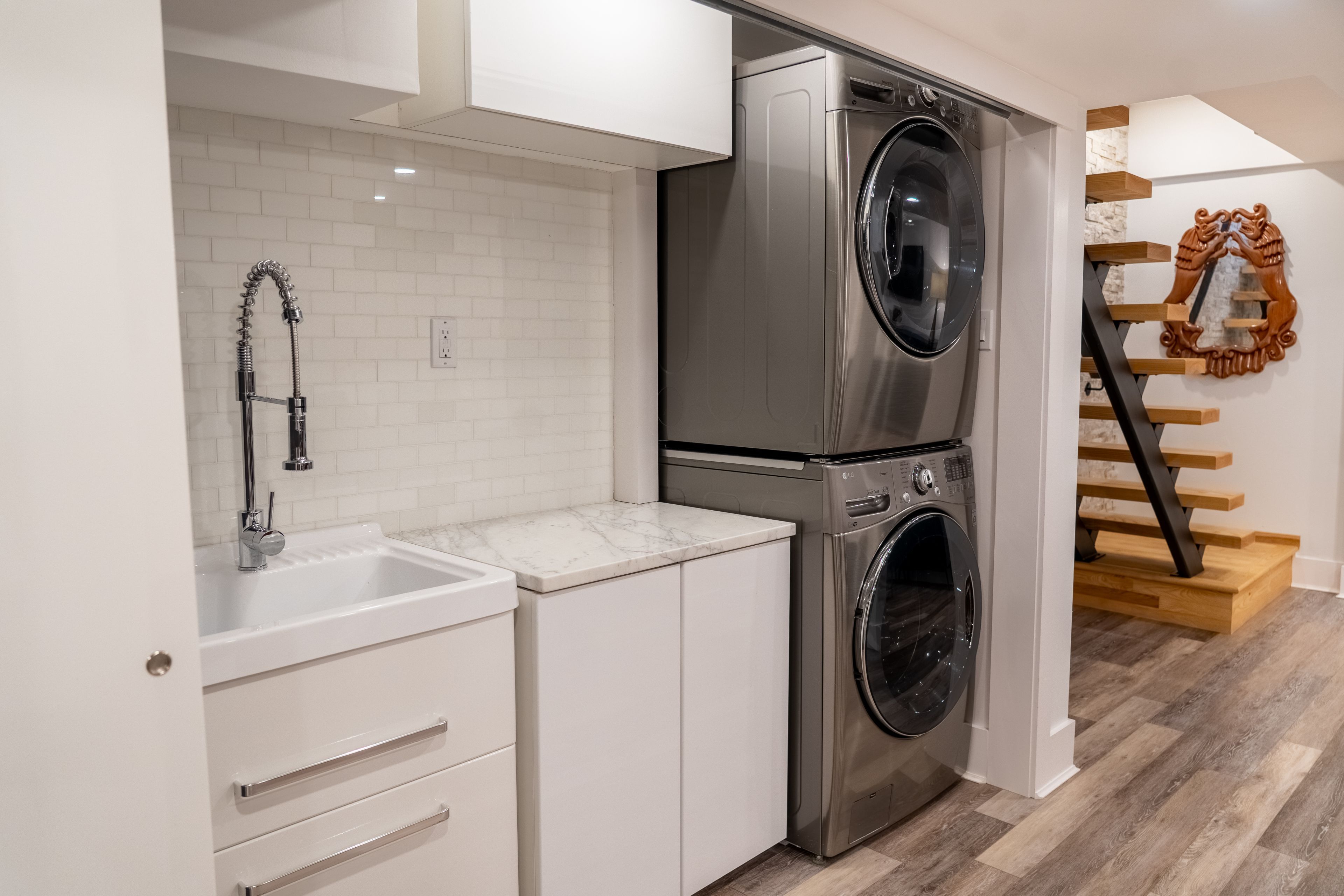 • Stunning custom chef's kitchen with premium Miele appliances and generous island.