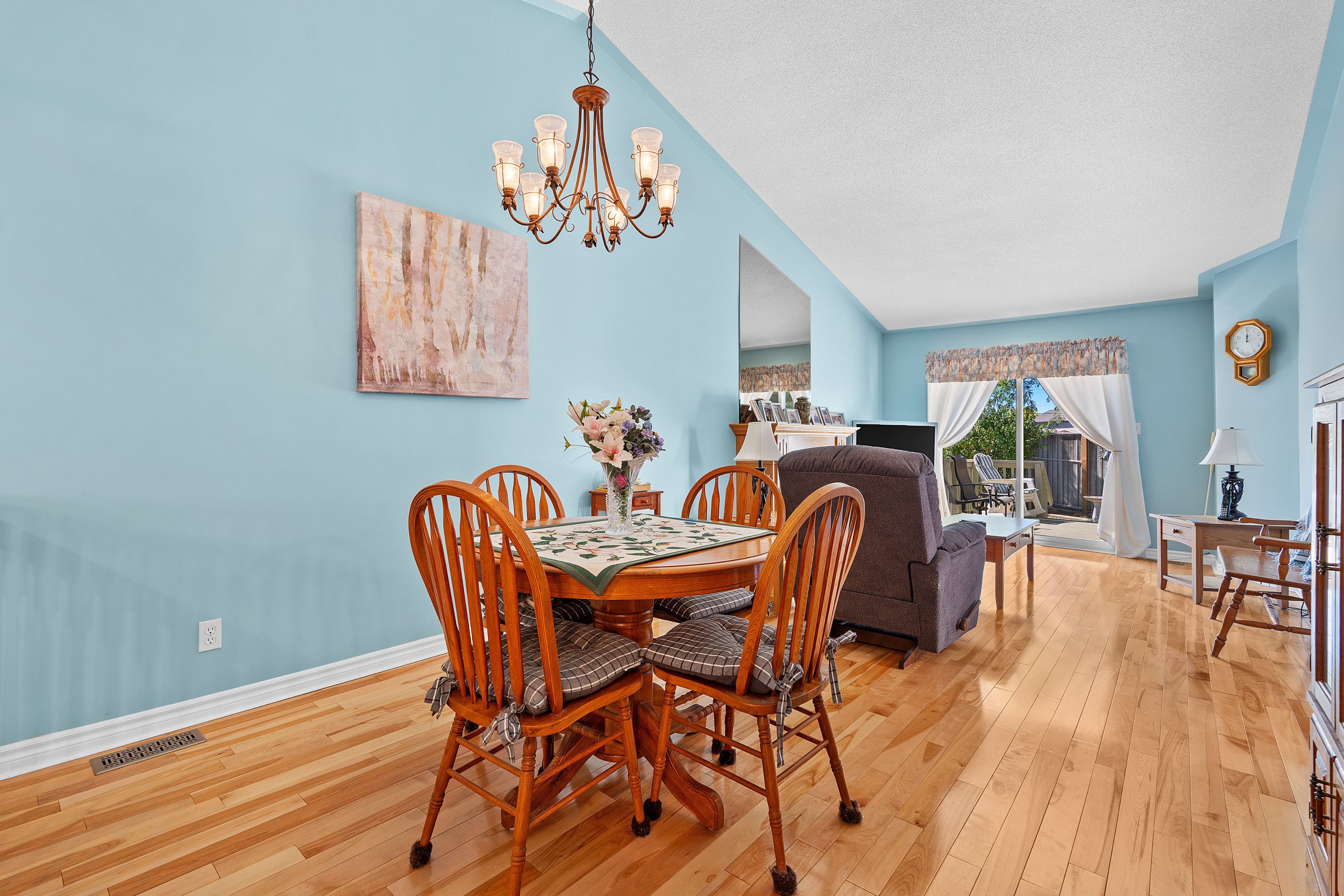 • Bright living and dining area with vaulted ceilings for open feel.