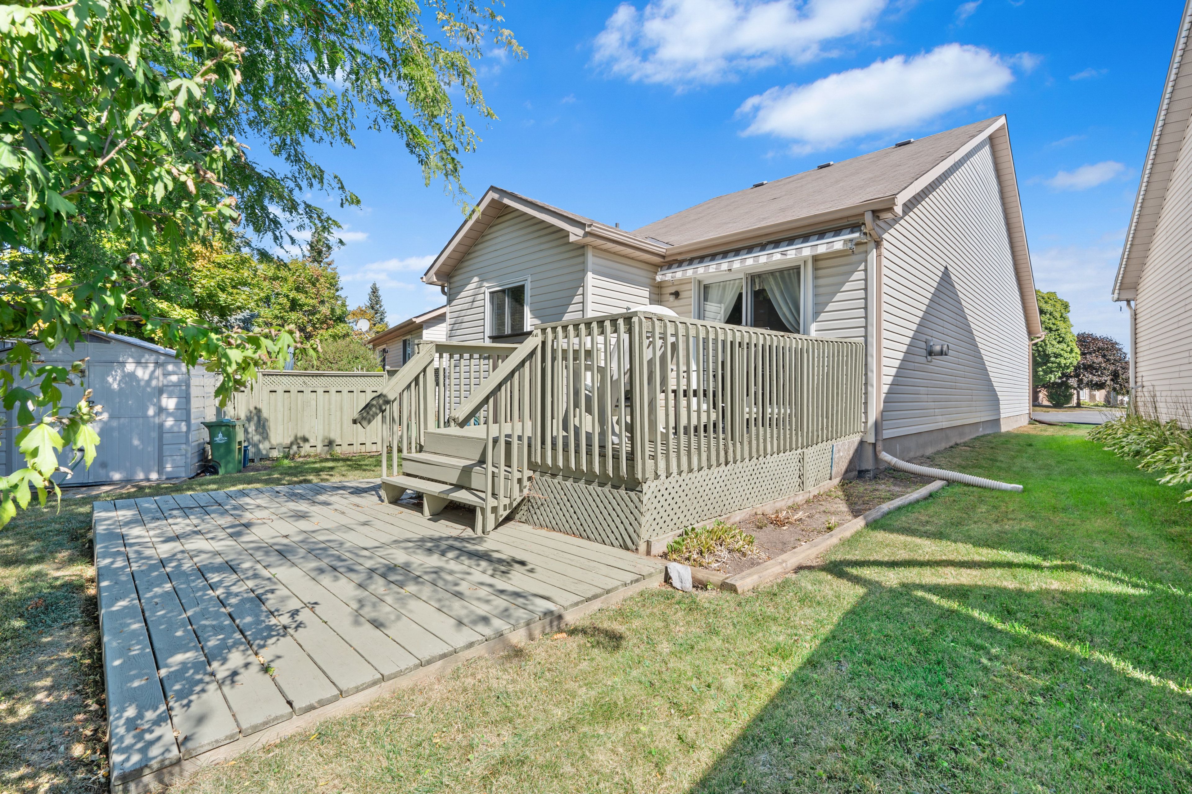Welcome to this charming and versatile home offering a convenient layout and a lovely living space. The main floor features two comfortable bedrooms and a three-piece bathroom, along with a bright and inviting living and dining area highlighted by vaulted ceilings that create a spacious, open-air feel. Hardwood floors flow through most of the main level, adding warmth and character. The laundry is currently set up in the spare bedroom for easy access, though additional hookups are available in the storage room downstairs for added flexibility. The lower level boasts a large recreational room, a three-piece bathroom, and plenty of room for entertaining, hobbies or family time. This property also includes an attached single-car garage with direct entry into the home, a nice backyard perfect for outdoor enjoyment, and two storage sheds for all your extras. Situated in a central convenient location, this home falls within a great school catchment area, including welborne public school, frontenac secondary school, holy cross secondary school, and st. Marguerite bourgeoys catholic school. A wonderful opportunity in a lovely neighbourhood!