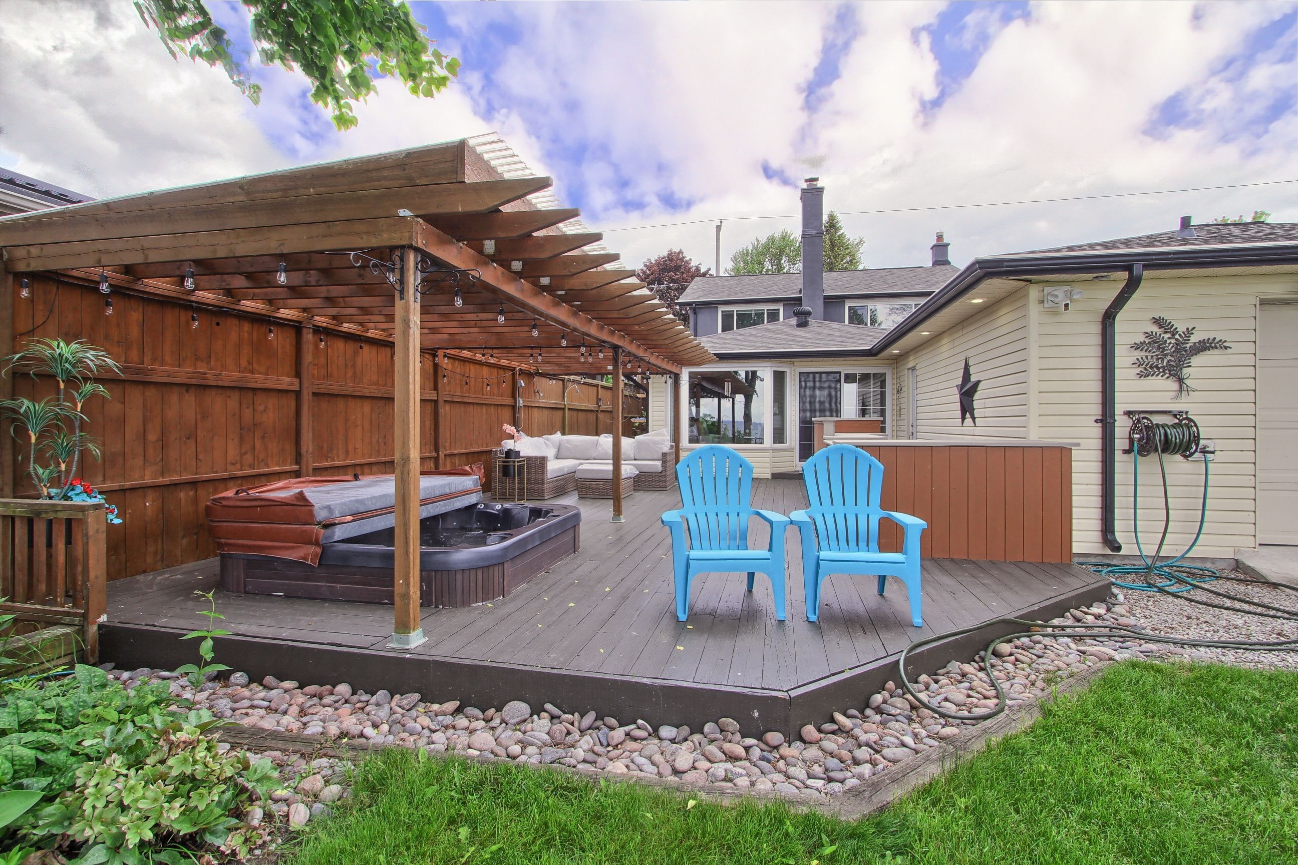 • Relax in the soothing hot tub surrounded by beautiful gardens.