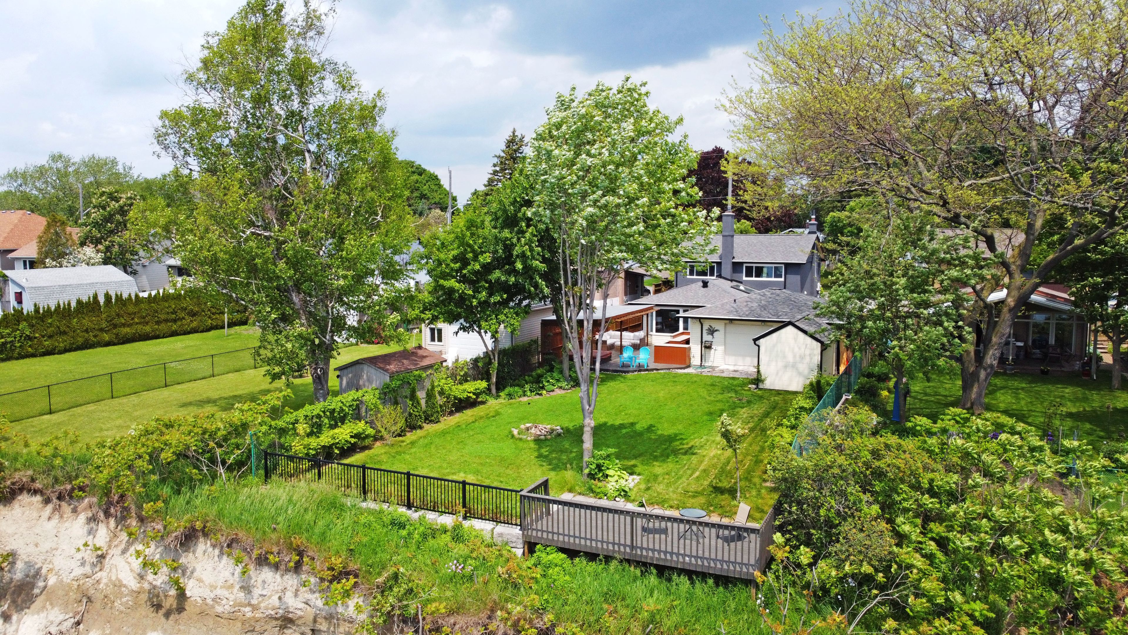 Breathtaking views of lake ontario, perennial gardens galore. Take in sunsets as you admire the view over the lake of cn tower on clear skies. Open concept main floor with additional overlooking deck walk out & lake. 4 skylights & pot lights throughout kitchens & bathrooms updated with glass shower enclosures. This home is perfect for entertaining with 2 decks, custom bar & soothing hot tub. Too many upgrades to mention.