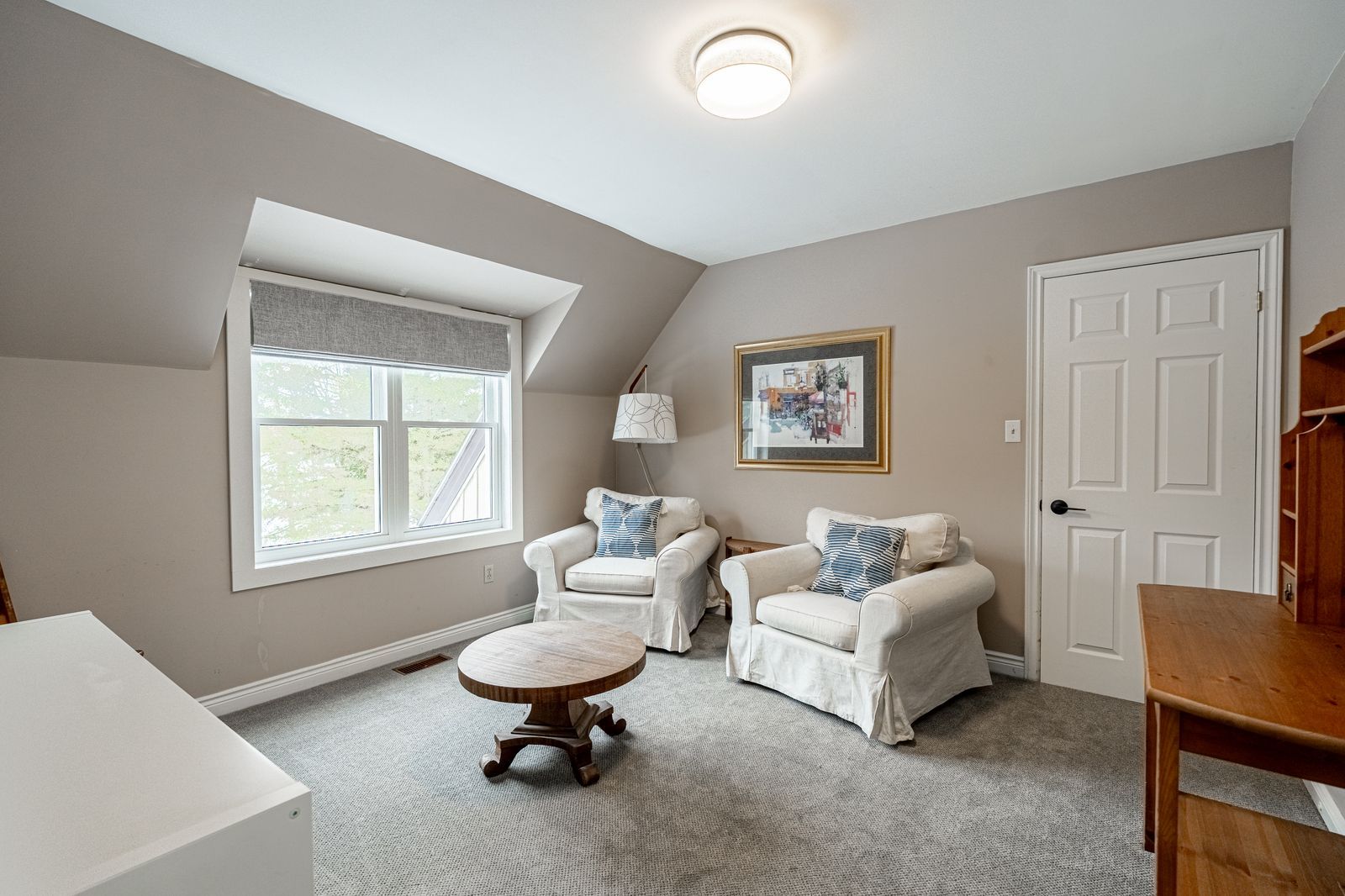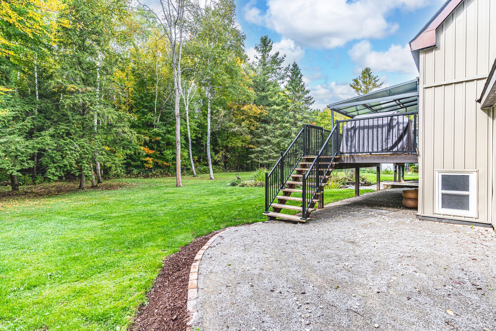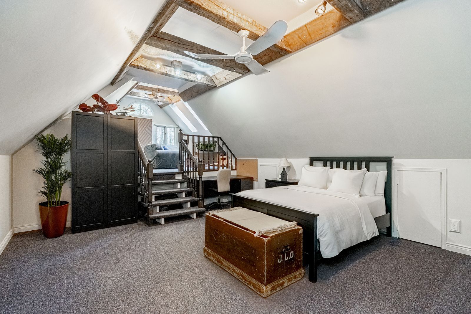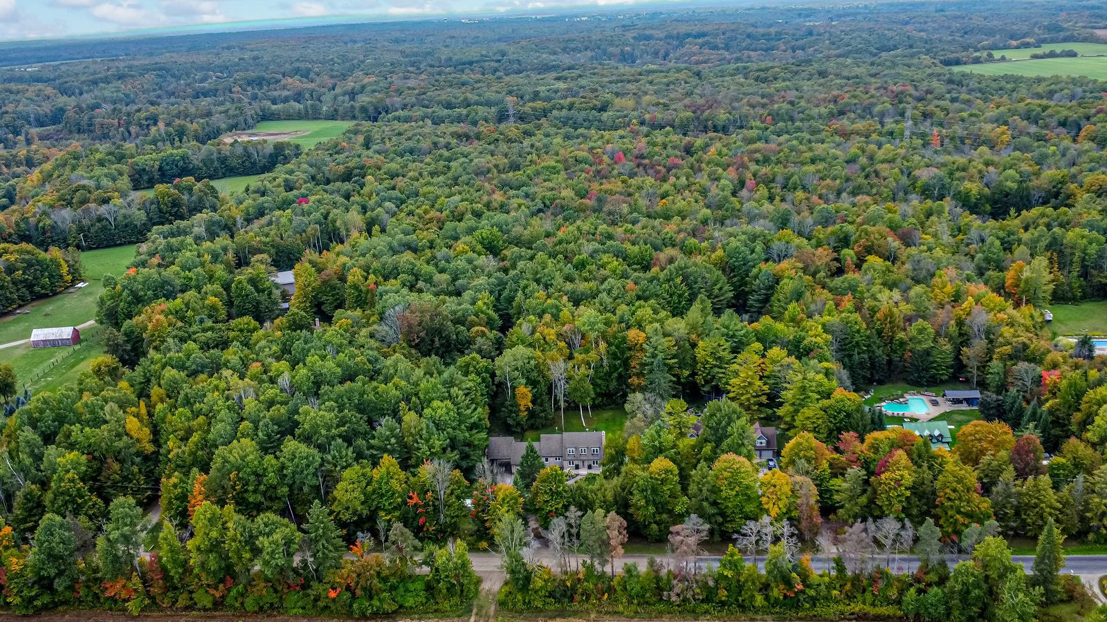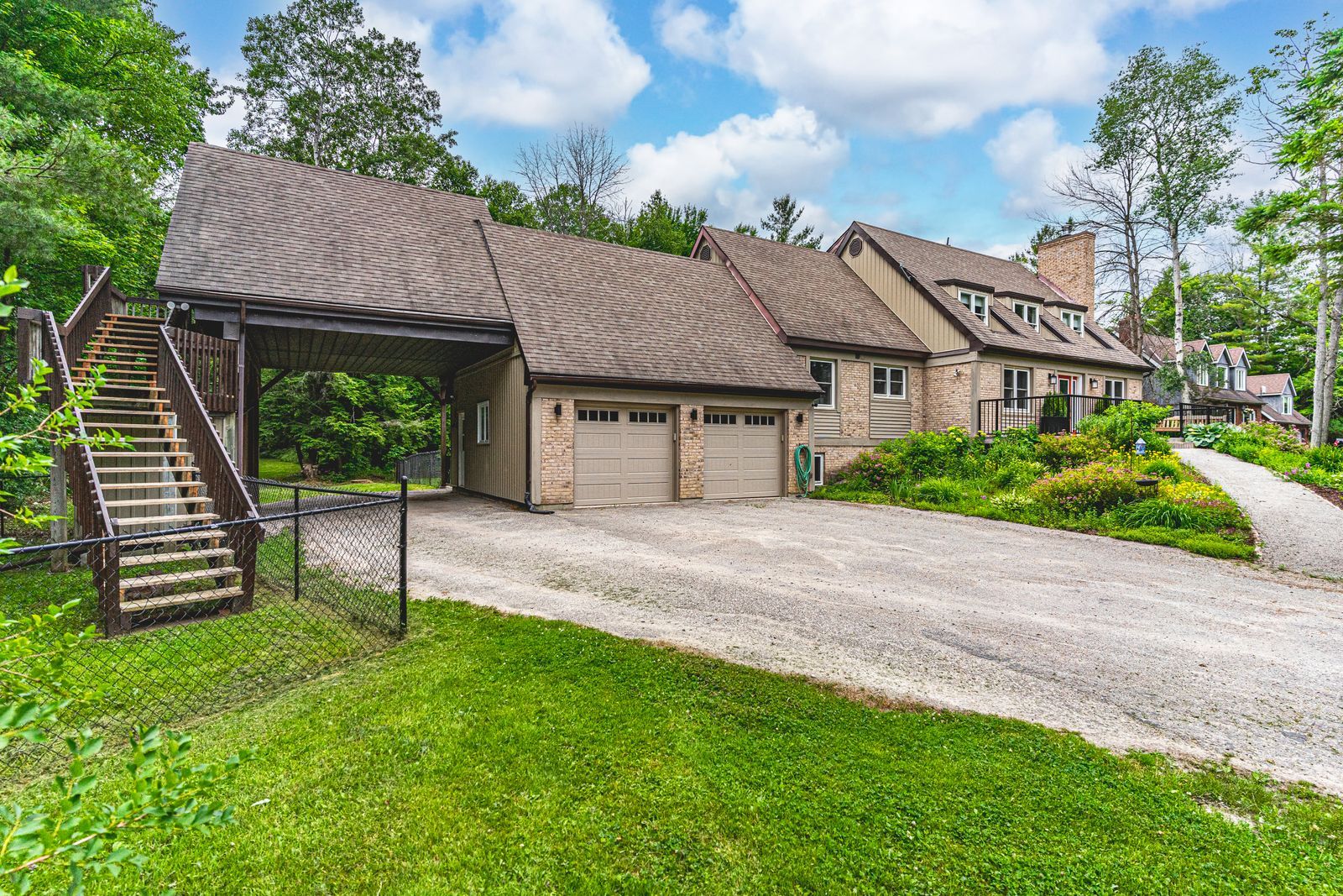The property that turns "what if" into "this is it!" this is the listing that makes every other tab on your browser look boring. Settled on 2 private acres wrapped in mature trees, this home finally gives everyone breathing room, with a walkout basement offering real in-law potential and a loft teens will claim long before they have earned the rent they think they are paying. The brick exterior, dormer windows, long driveway, and landscaping set the tone, leading to a layout filled with warmth and personality. The kitchen could live on pinterest with wood and white cabinets, a subway tile backsplash, high end appliances including a side-by-side fridge and freezer, and more cabinetry than you will ever run out of, which means your next homesense run will be less about storage solutions and more about how you want to style your new favourite space. The living room brings charm with french doors and a fireplace, while the family room adds character through exposed beams, another fireplace, and a walkout to a fenced yard with a flagstone patio overlooking the pond and trees. A sunroom wraps you in peaceful views and the main-floor office gives you the quiet zone everyone needs. The second level unfolds into a sitting area that feels made for slow mornings or late-night talks, leading to a primary retreat with an ensuite and additional bedrooms that offer comfortable places to recharge at the end of the day. The walkout basement opens up endless flexibility with a kitchen, rec room, bedroom, den, gym, and bathroom that make multi-gen living feel simple. The loft above the garage elevates the setup with vaulted ceilings, skylights, exposed beams, a private deck, and its own staircase to the yard, ideal for a creative zone, or that friend who always stays longer than planned. Geothermal heating, a triple-wide driveway, an insulated 2 car garage, central vac, and a water softener complete a property that delivers the kind of life people mean when they say they want "more."