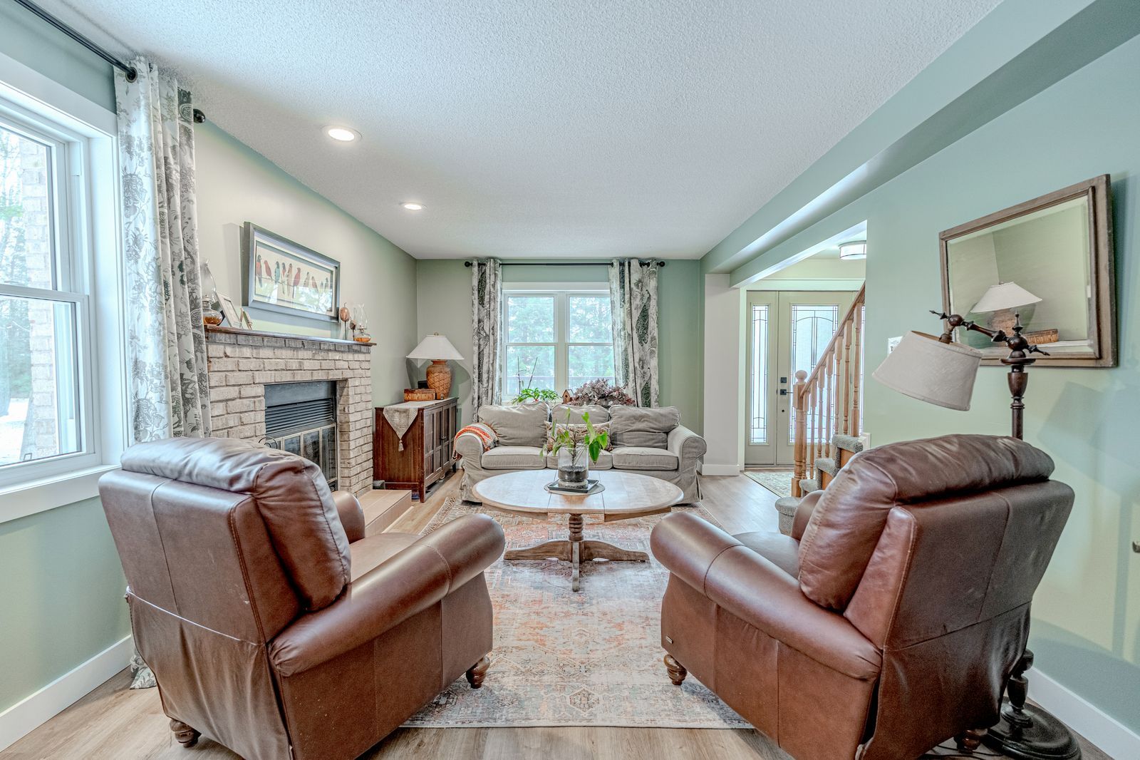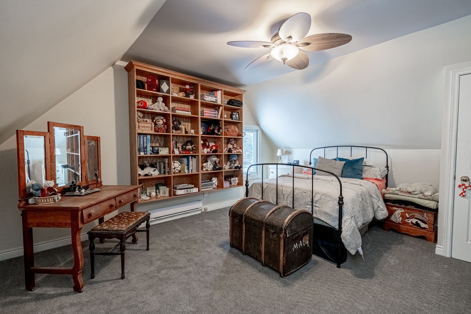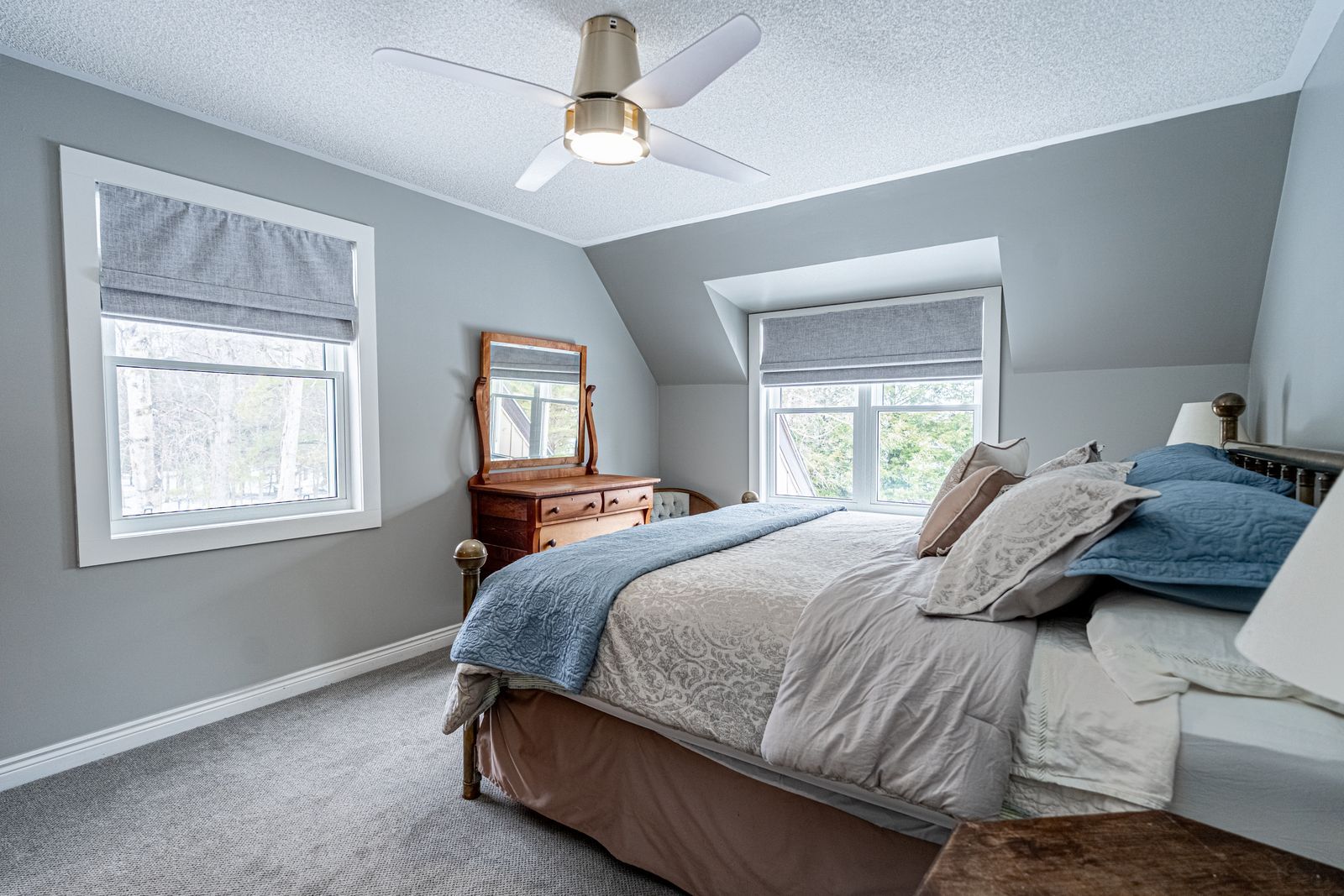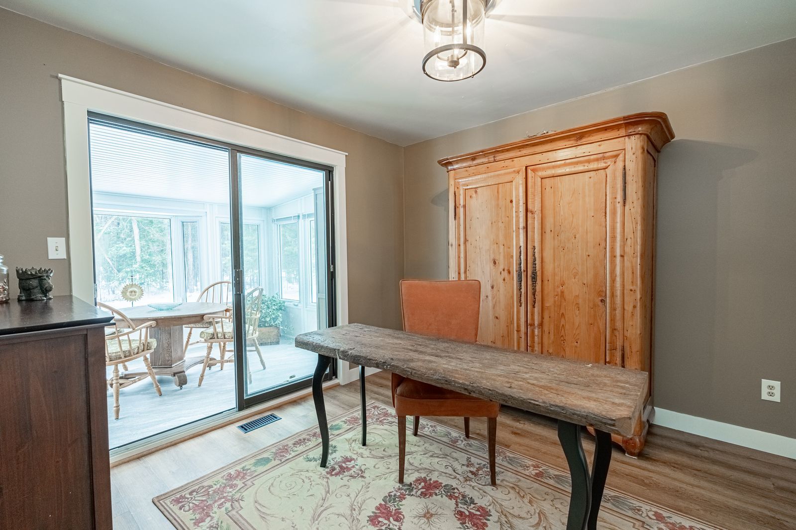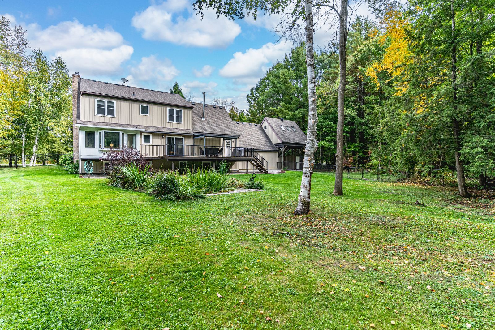 The property that turns "what if" into "this is it!" this is the listing that makes every other tab on your browser look boring. Settled on 2 private acres wrapped in mature trees, this home finally gives everyone breathing room, with a walkout basement offering real in-law potential and a loft teens will claim long before they have earned the rent they think they are paying. The brick exterior, dormer windows, long driveway, and landscaping set the tone, leading to a layout filled with warmth and personality. The kitchen could live on pinterest with wood and white cabinets, a subway tile backsplash, high end appliances including a side-by-side fridge and freezer, and more cabinetry than you will ever run out of, which means your next homesense run will be less about storage solutions and more about how you want to style your new favourite space. The living room brings charm with french doors and a fireplace, while the family room adds character through exposed beams, another fireplace, and a walkout to a fenced yard with a flagstone patio overlooking the pond and trees. A sunroom wraps you in peaceful views and the main-floor office gives you the quiet zone everyone needs. The second level unfolds into a sitting area that feels made for slow mornings or late-night talks, leading to a primary retreat with an ensuite and additional bedrooms that offer comfortable places to recharge at the end of the day. The walkout basement opens up endless flexibility with a kitchen, rec room, bedroom, den, gym, and bathroom that make multi-gen living feel simple. The loft above the garage elevates the setup with vaulted ceilings, skylights, exposed beams, a private deck, and its own staircase to the yard, ideal for a creative zone, or that friend who always stays longer than planned. Geothermal heating, a triple-wide driveway, an insulated 2 car garage, central vac, and a water softener complete a property that delivers the kind of life people mean when they say they want "more."