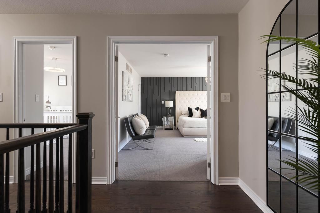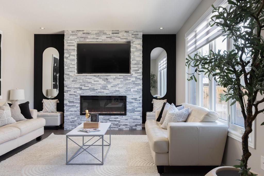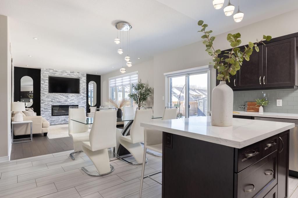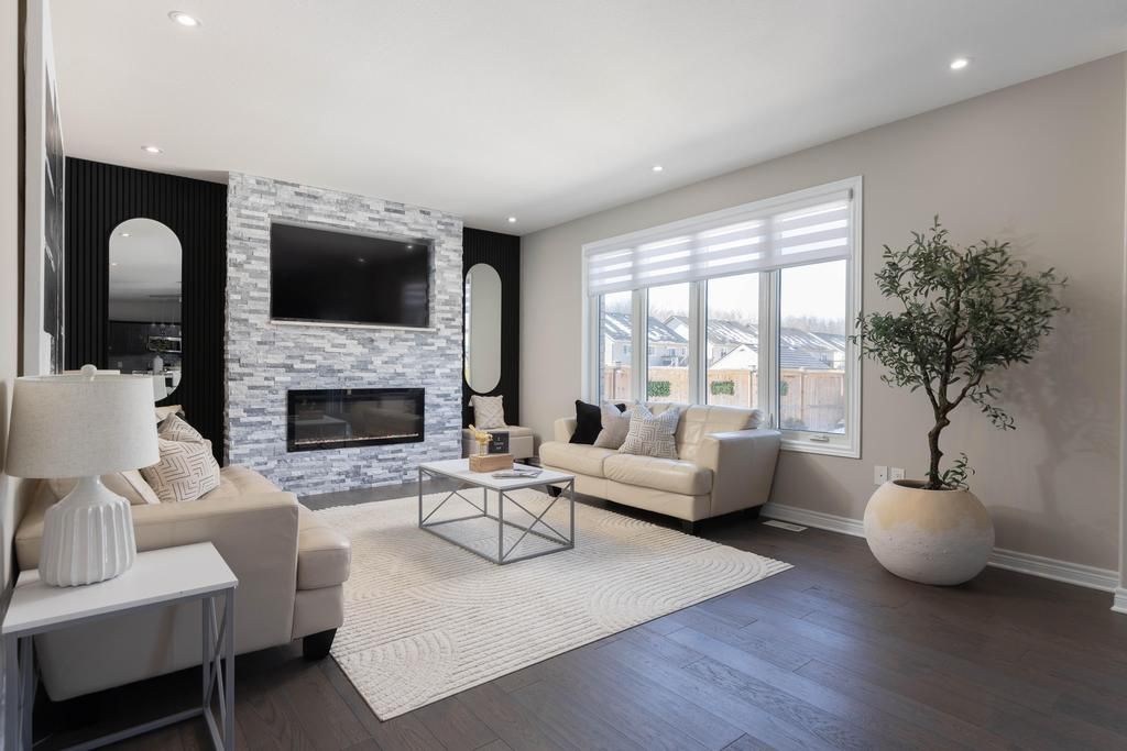 Welcome to your dream home. This magnificent custom-built residence sits on a premium corner lot and truly offers the complete package. Loaded with curb appeal, the sleek brick exterior, custom interlocking stone, professionally landscaped gardens, and spacious covered porch create an inviting first impression. Step through the stately entrance into an expansive foyer filled with natural light. The main floor features a bright open-concept living space with 9-ft ceilings and engineered hardwood flooring. The eat-in kitchen showcases newly installed quartz countertops, complemented by a stunning floor-to-ceiling stone fireplace in the family room. Thoughtfully designed feature walls add character throughout the home, including a dramatic foyer entrance, flanking the fireplace, on the staircase landing, and in the primary bedroom. Additional main-floor highlights include a walk-in pantry, dedicated laundry room, powder room, and a second living room that can easily serve as a home office. Sliding doors lead to a beautifully landscaped backyard with over 700 sq ft of interlocking stone patio-perfect for entertaining. Upstairs, retreat to the impressive primary suite with two walk-in closets and a luxurious ensuite featuring quartz countertops and an oversized shower. Three additional spacious bedrooms and a full bathroom complete the level. Carpet has recently been removed from the stairs and second-floor landing for a fresh, modern feel. The custom-designed basement offers a separate walk-out entrance and over 1,000 sq ft of finished living space, including vinyl plank flooring, a large bedroom, oversized glass shower, walk-in linen closet, cold room, and dedicated laundry. Ideal for an in-law suite or potential income opportunity. Located close to excellent schools, trails, golf, parks, dining, and shopping-this home truly has "forever home" written all over it.
