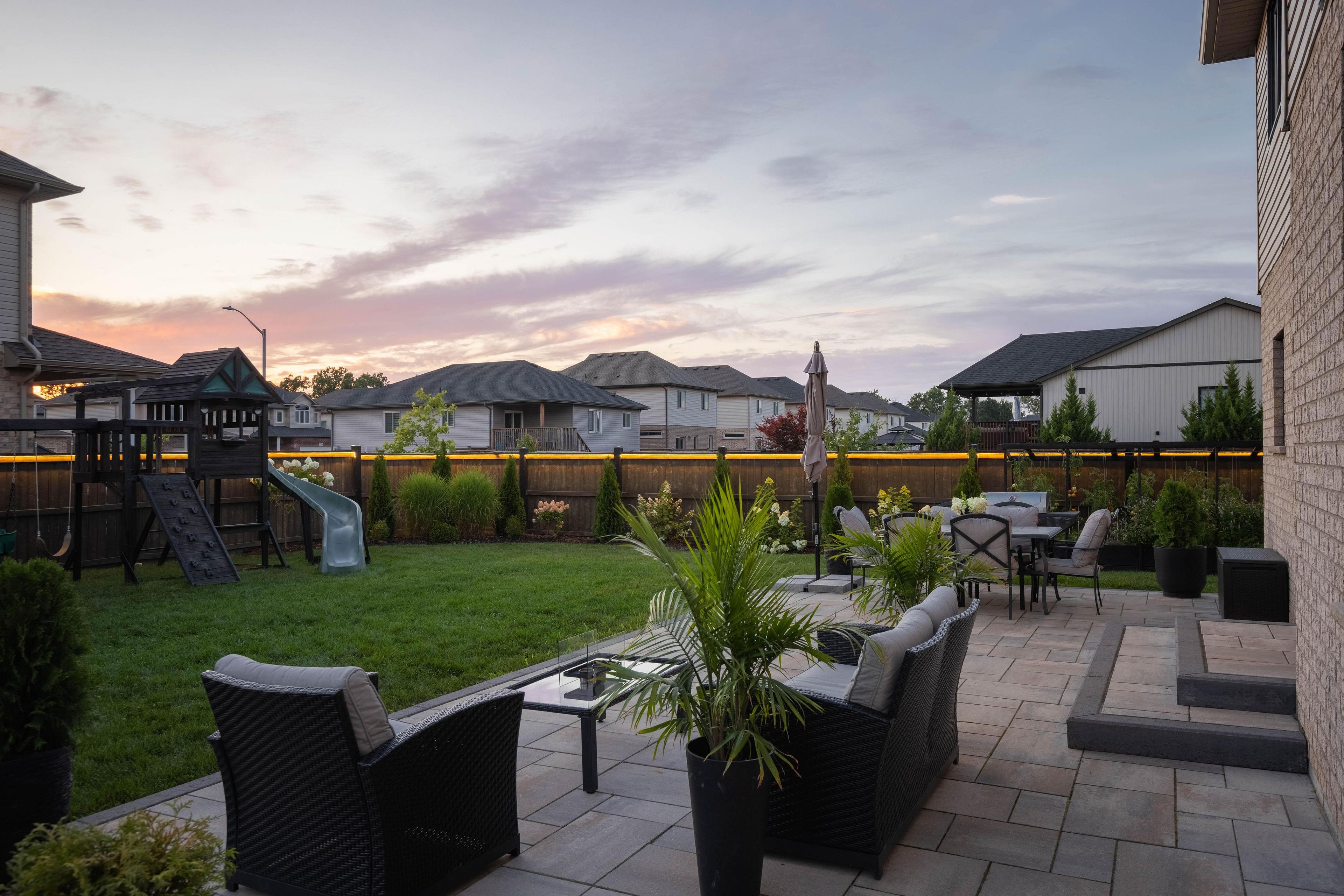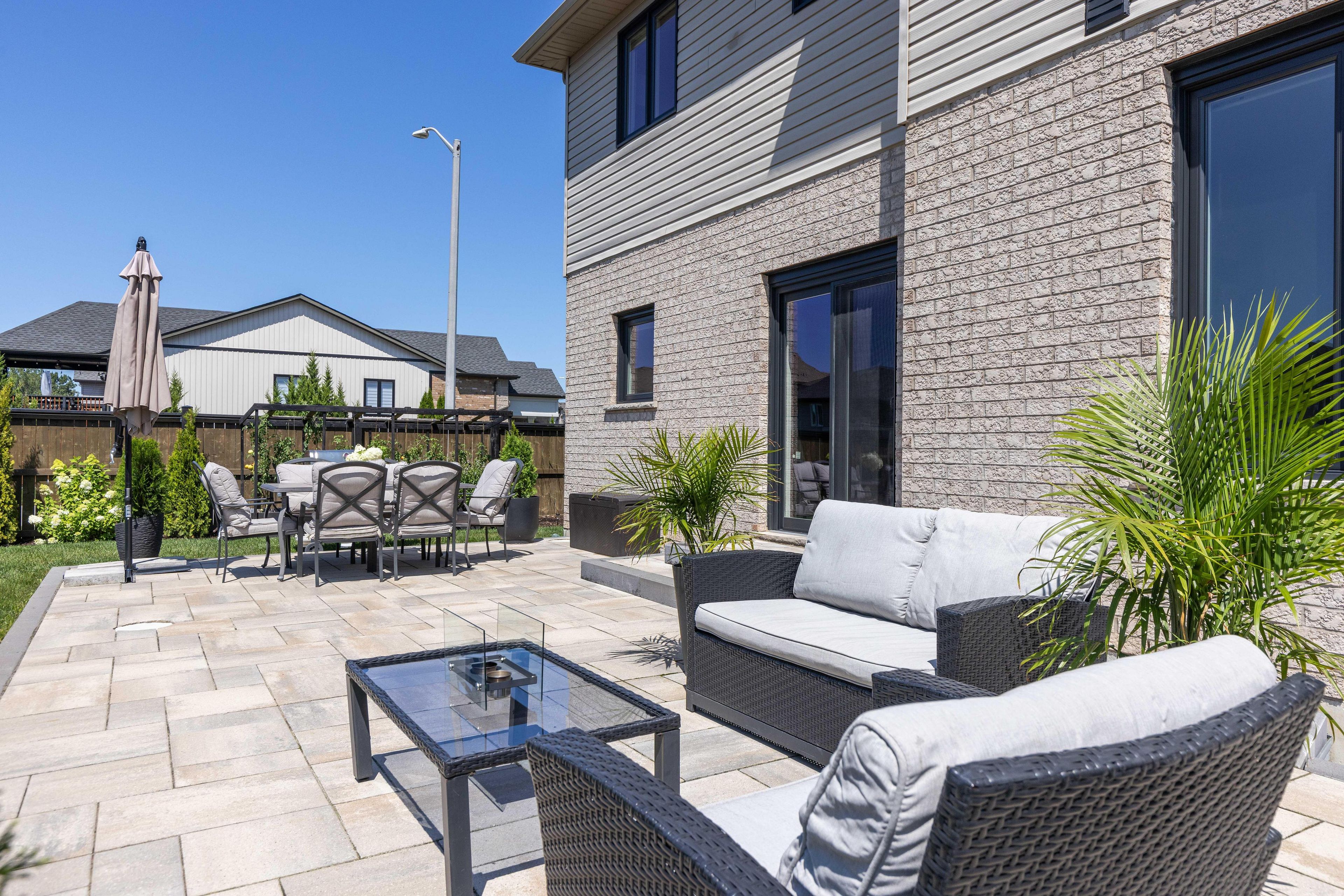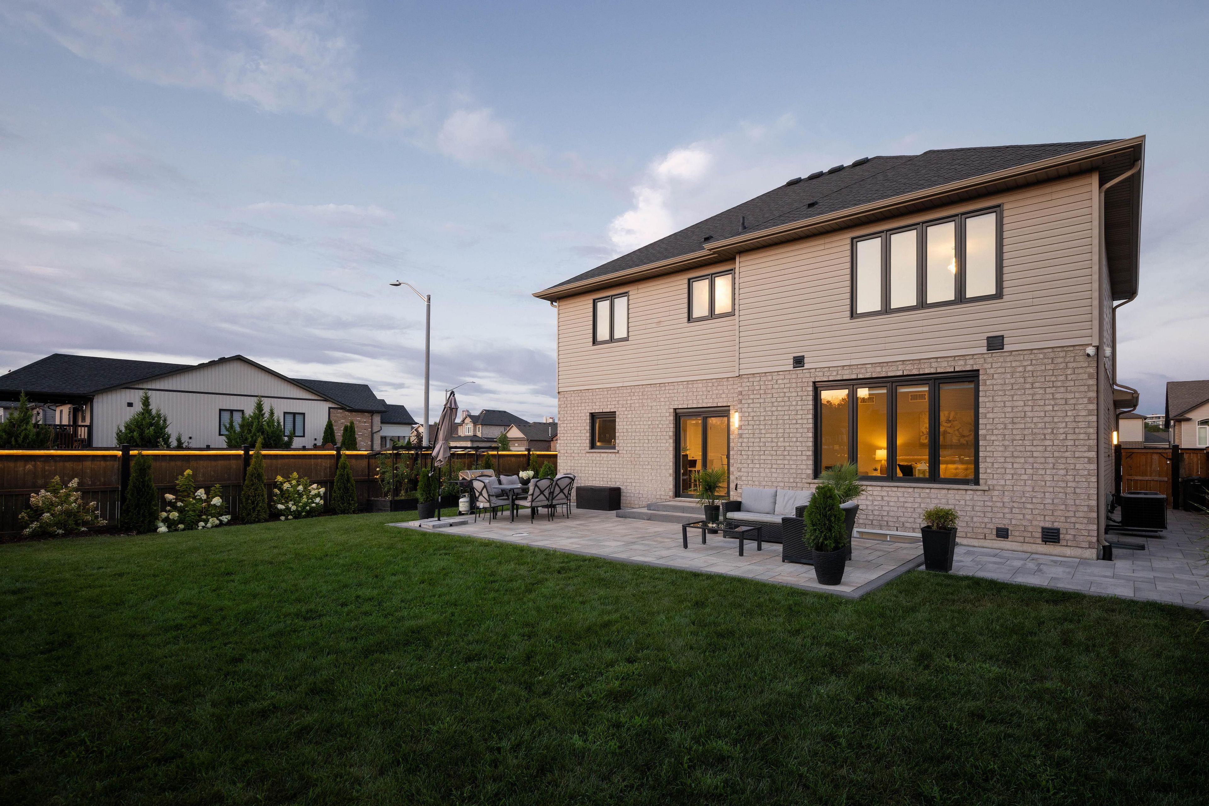 Welcome to your dream home. This magnificent custom-built residence sits on a premium corner lot and truly offers the complete package. Loaded with curb appeal, the sleek brick exterior, custom interlocking stone, professionally landscaped gardens, and spacious covered porch create an inviting first impression. Step through the stately entrance into an expansive foyer filled with natural light. The main floor features a bright open-concept living space with 9-ft ceilings and engineered hardwood flooring. The eat-in kitchen showcases newly installed quartz countertops, complemented by a stunning floor-to-ceiling stone fireplace in the family room. Thoughtfully designed feature walls add character throughout the home, including a dramatic foyer entrance, flanking the fireplace, on the staircase landing, and in the primary bedroom. Additional main-floor highlights include a walk-in pantry, dedicated laundry room, powder room, and a second living room that can easily serve as a home office. Sliding doors lead to a beautifully landscaped backyard with over 700 sq ft of interlocking stone patio-perfect for entertaining. Upstairs, retreat to the impressive primary suite with two walk-in closets and a luxurious ensuite featuring quartz countertops and an oversized shower. Three additional spacious bedrooms and a full bathroom complete the level. Carpet has recently been removed from the stairs and second-floor landing for a fresh, modern feel. The custom-designed basement offers a separate walk-out entrance and over 1,000 sq ft of finished living space, including vinyl plank flooring, a large bedroom, oversized glass shower, walk-in linen closet, cold room, and dedicated laundry. Ideal for an in-law suite or potential income opportunity. Located close to excellent schools, trails, golf, parks, dining, and shopping-this home truly has "forever home" written all over it.