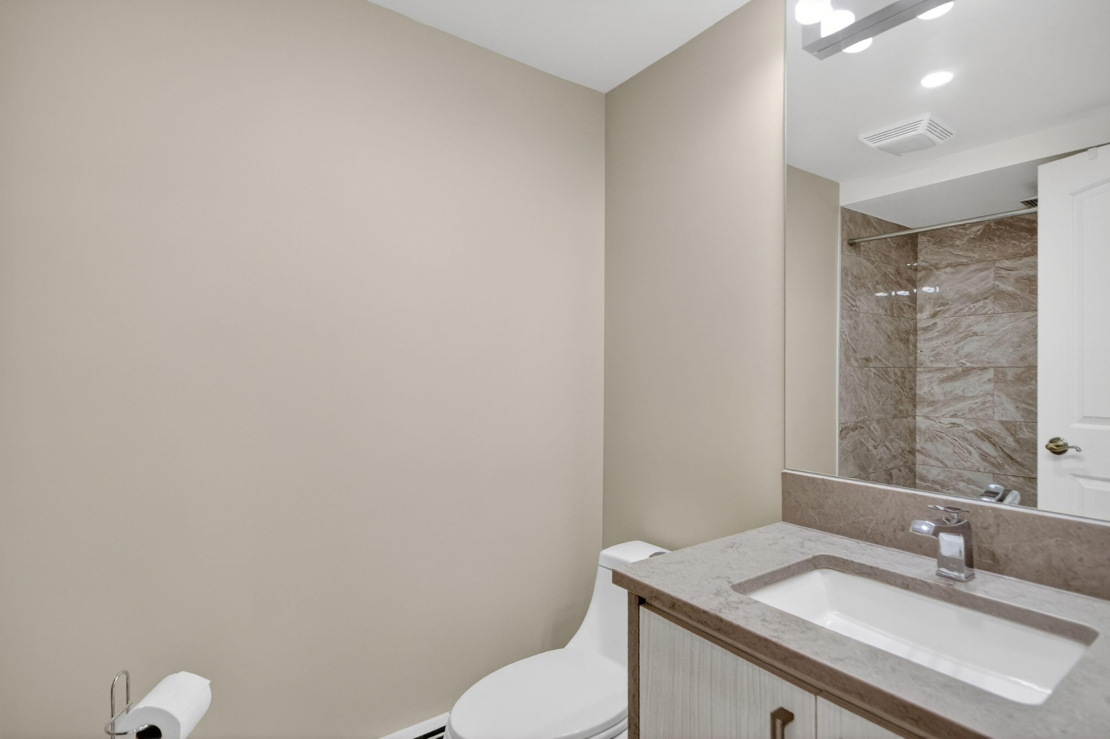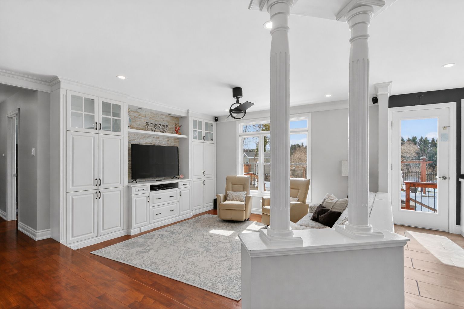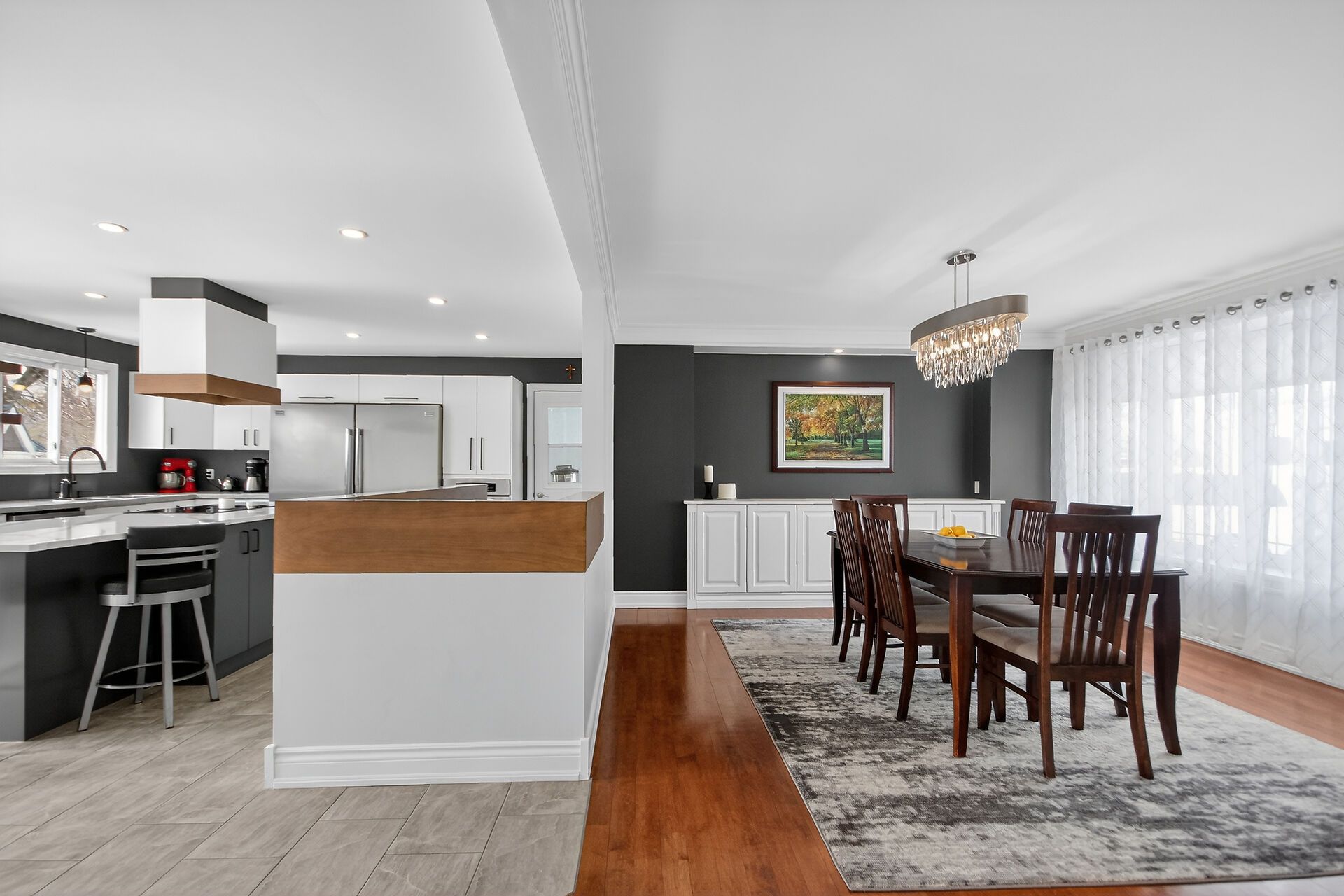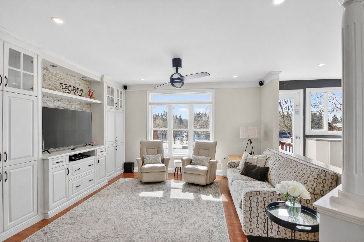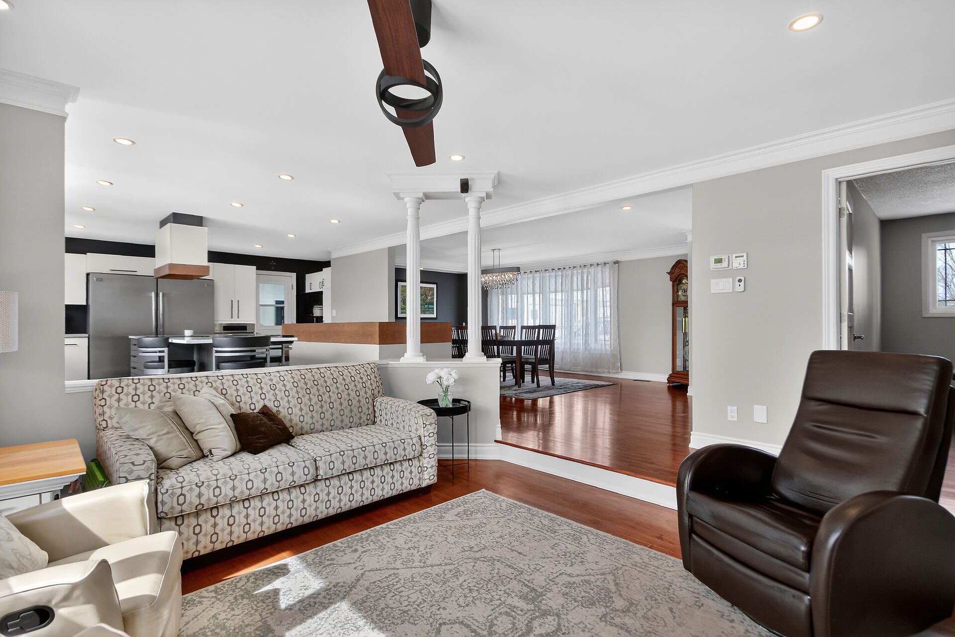 • Spacious main level with bright rooms and modern kitchen featuring a large quartz island.