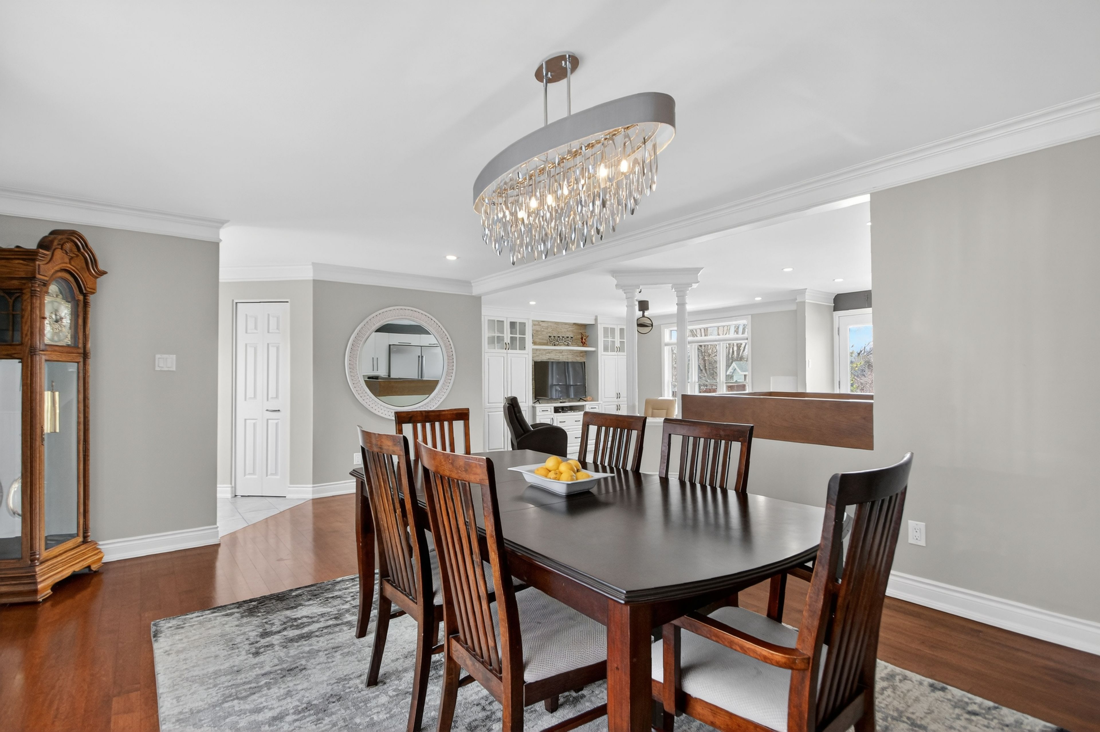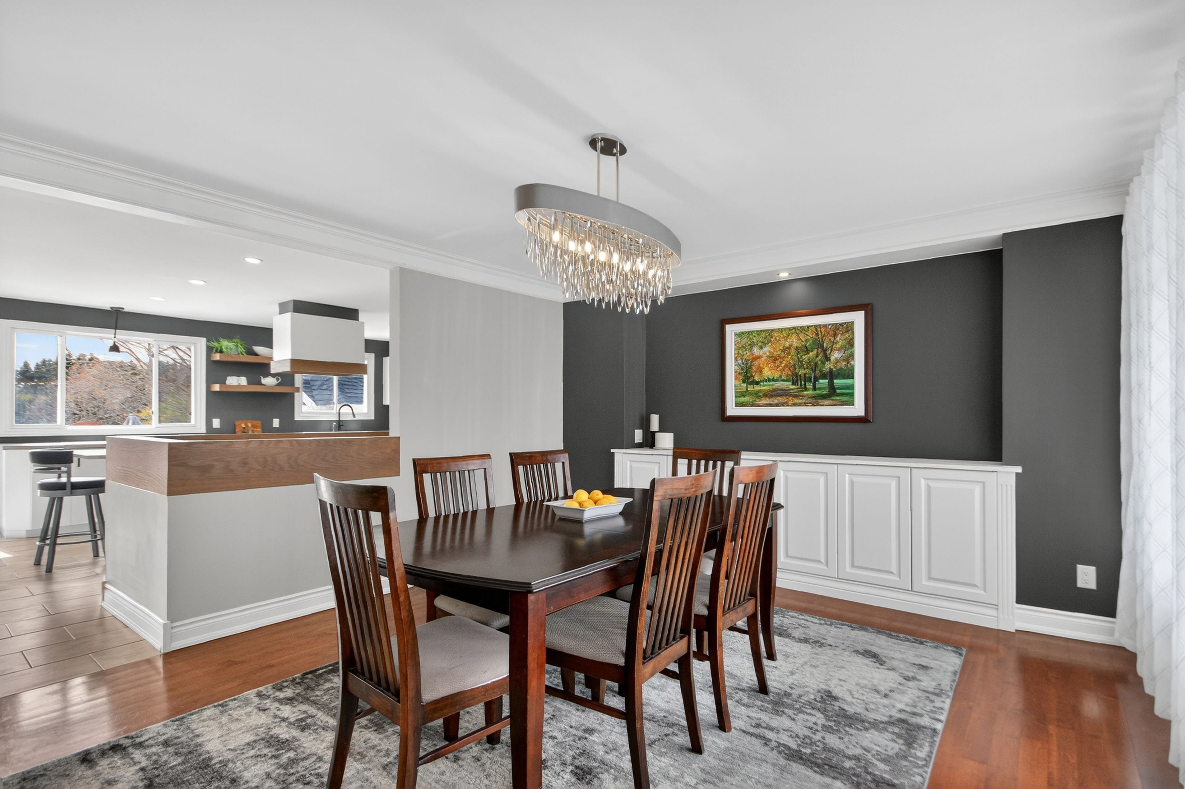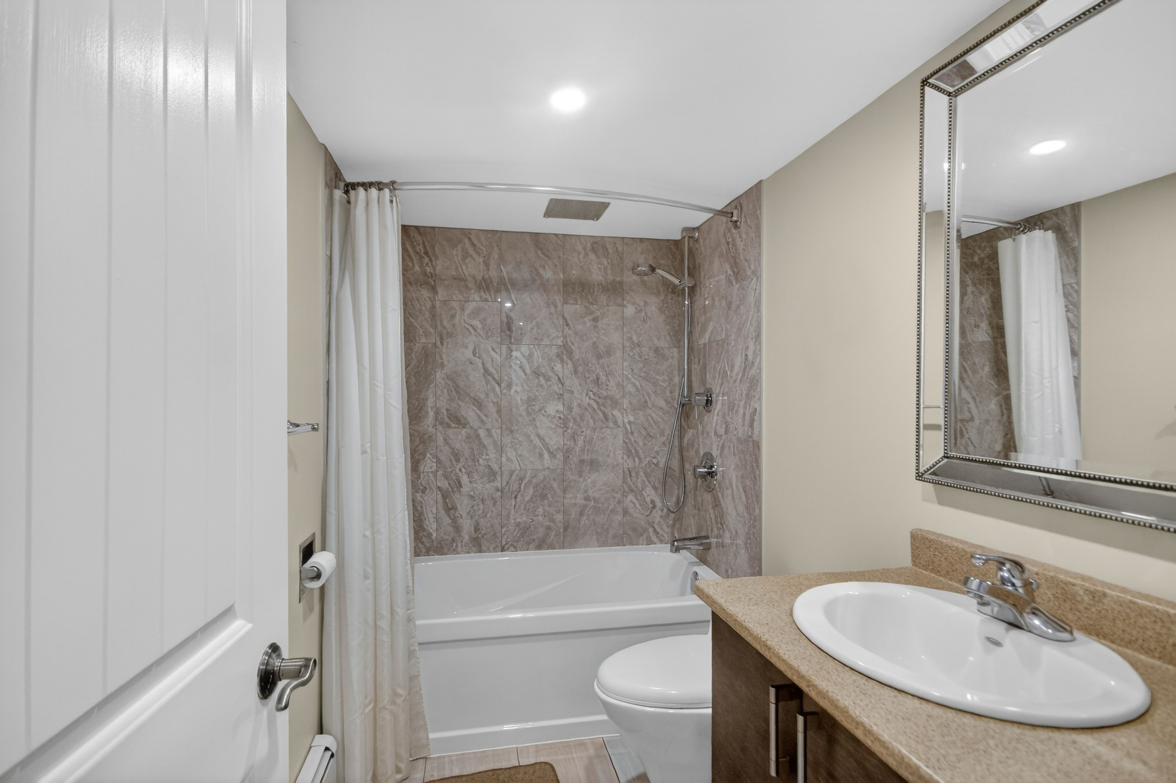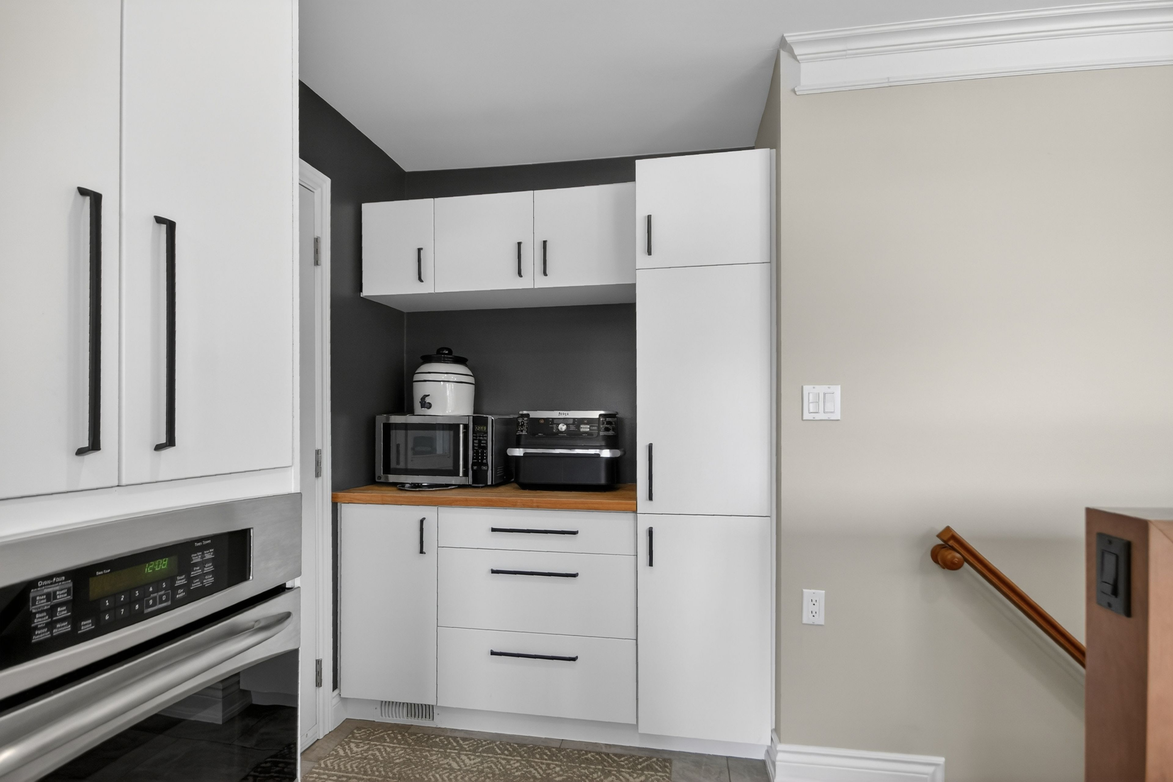 • Spacious main level with bright rooms and modern kitchen featuring a large quartz island.