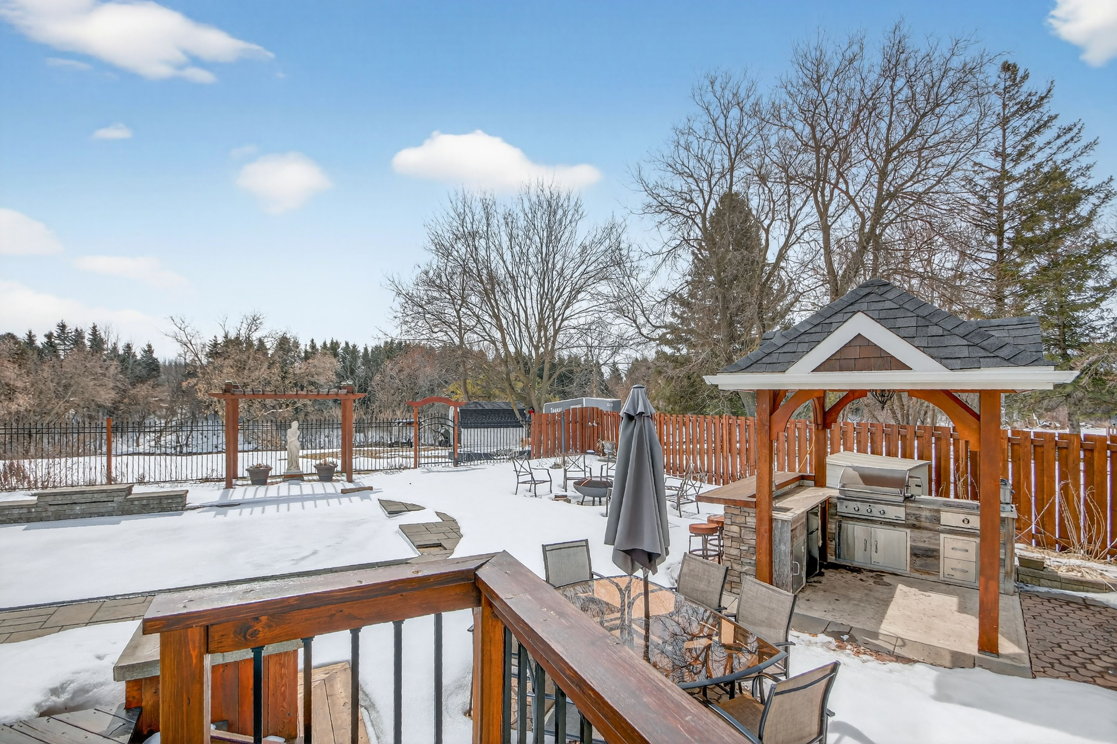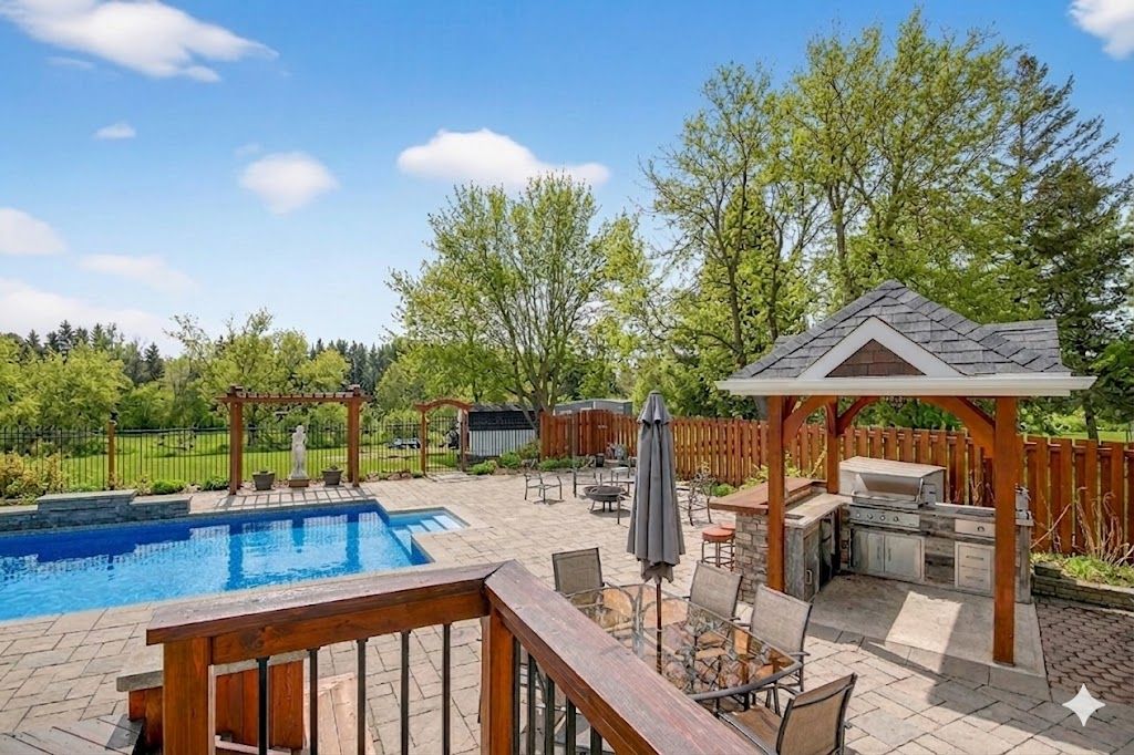 Impeccably renovated waterfront bungalow in the heart of embrun! This exceptional property features an in-ground pool, a covered outdoor kitchen, and a separate in-law suite, offering the perfect blend of comfort, functionality, and country charm. Ideally located within walking distance to grocery stores, the sports dome, the recreation centre, and bike trails. The bright main level offers a sun-filled formal dining room, a warm sunken living room, and a stunning kitchen with a large quartz island, stainless steel appliances, cooktop, abundant cabinetry, and a dedicated coffee bar. Expansive windows overlook the waterfront backyard and provide direct access to the outdoor space. Extensive custom cabinetry is featured throughout the main level, including the dining, living, office, and primary bedroom with a full wall of closets, offering exceptional storage. This level also includes two generously sized bedrooms, a versatile office/den-ideal for a home office or small business-and a 5-piece bathroom. The fully finished lower level boasts a spacious recreation room with a wet bar, a laundry room with wall-to-wall cabinetry and a hang-dry station, a mechanical/storage room, cold storage, and a 4-piece bathroom. The separate entrance in-law suite includes a kitchen, living area, bedroom, and 4-piece bathroom-perfect for multi-generational living or home-based business use. Outside, enjoy a private oasis with an extensive interlock patio, a well-maintained in-ground pool, an outdoor shower, and a garden shed. The covered all-cedar cathedral outdoor kitchen features granite countertops, sink, fridge, searing bar, built-in dcs bbq with rotisserie and gas burner (natural gas), and stainless steel cabinetry. A generously sized heated garage completes this outstanding property.