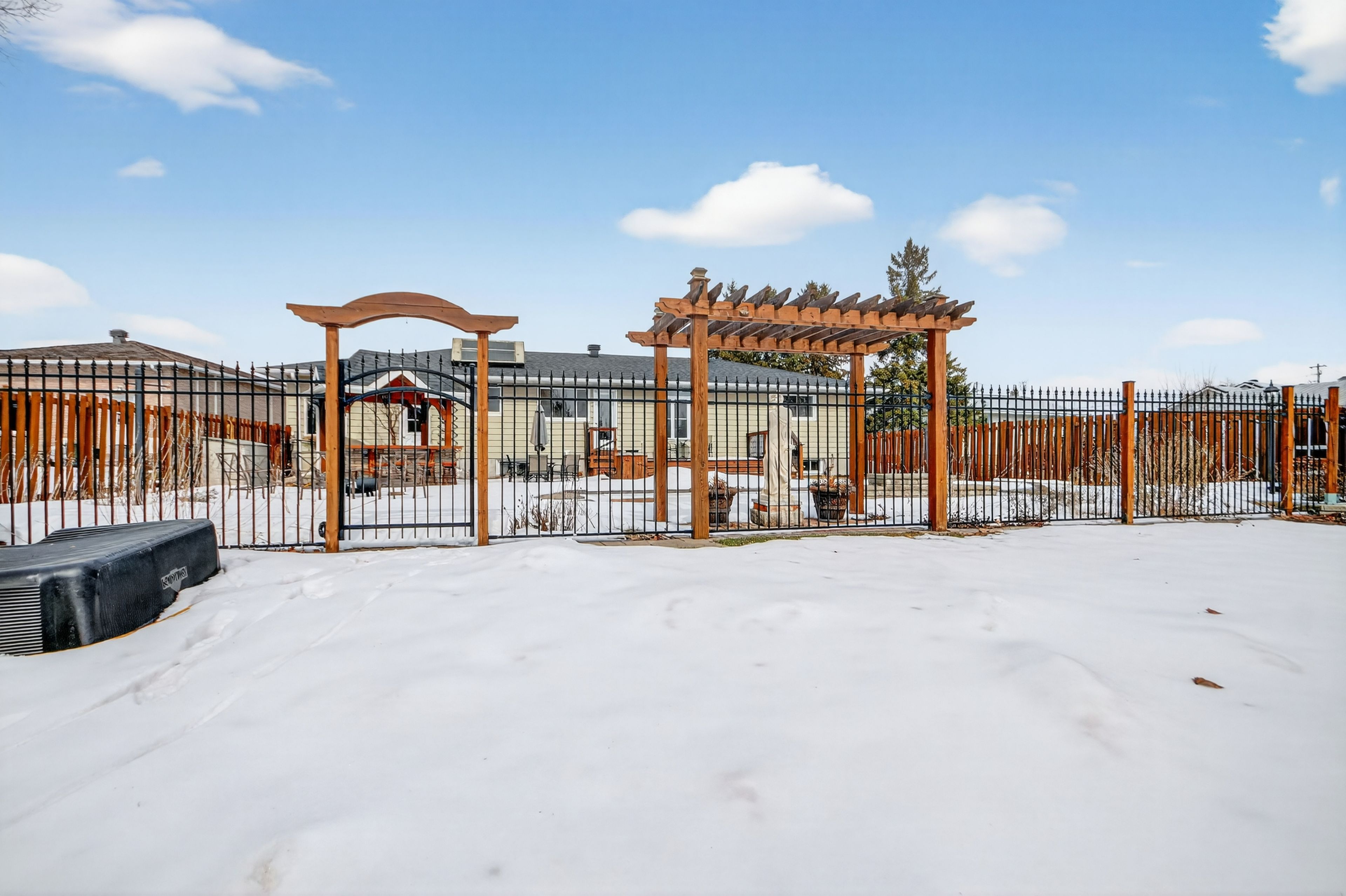 • Outdoor space includes an extensive patio and private pool for relaxation.