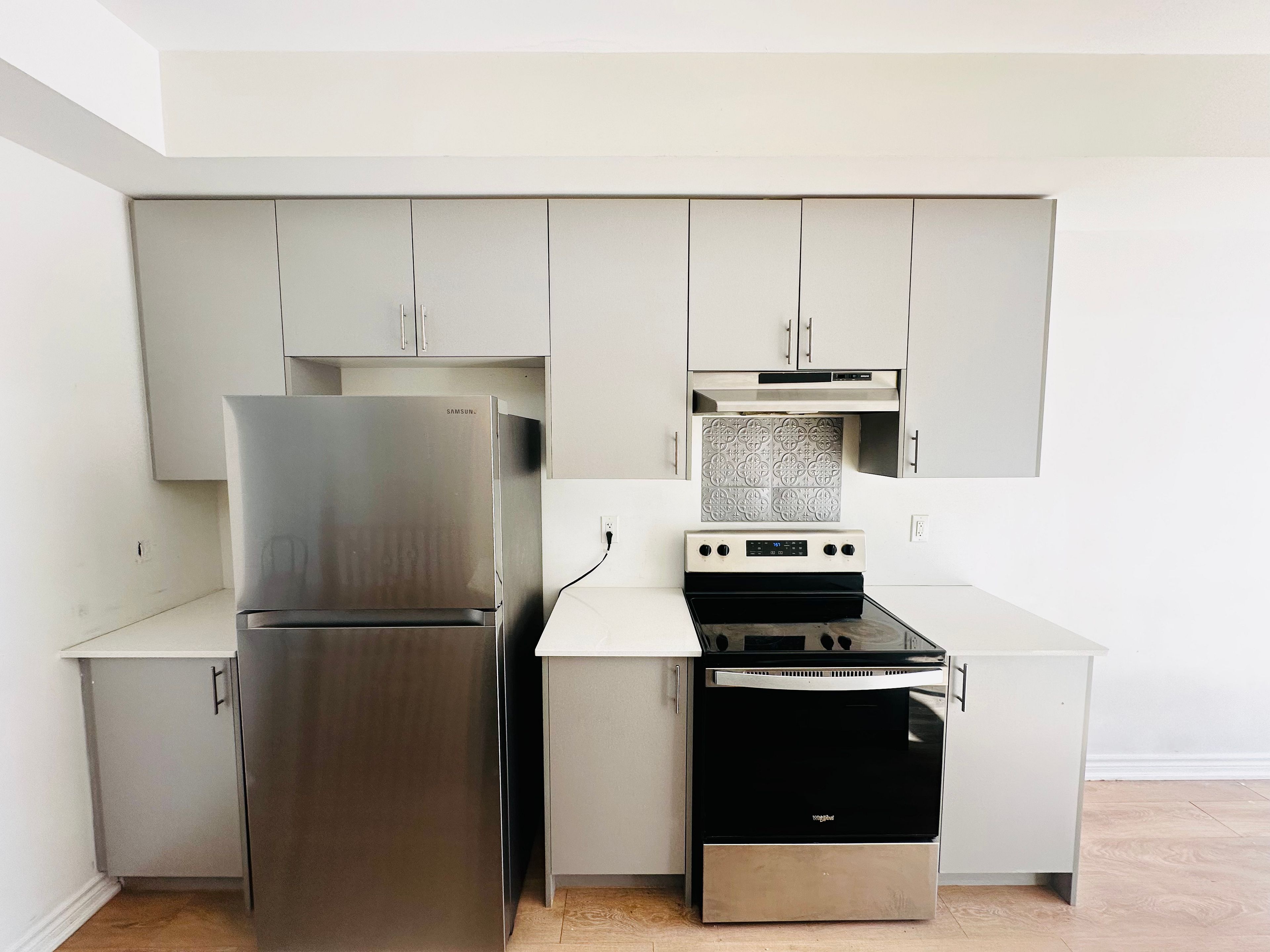 • Upgraded flooring, quartz countertops, and stainless steel appliances throughout.